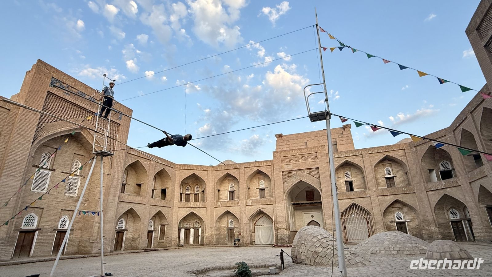 Flug nach Urgentsch – Märchenhaftes Chiwa – Besuch einer Zirkusfamilie – orientalisches Abendessen