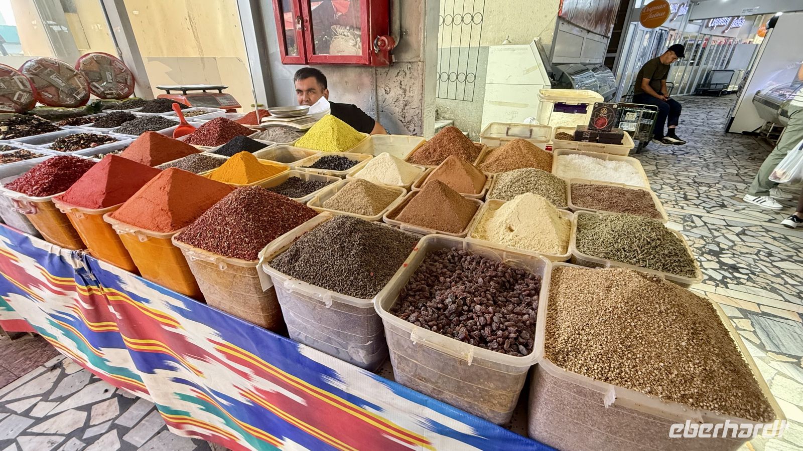 Nach diesen beeindruckenden Eindrücken legten wir eine Mittagspause ein und genossen noch einmal landestypische Gerichte. Gestärkt spazierten wir anschließend über den Siab-Basar, den größten Markt der Stadt. Zwischen duftenden Gewürzen, getrockneten Früchten, Nüssen, Honig und kunstvollen Souvenirs fand sicher jeder etwas, um den Geschmack Usbekistans mit nach Hause zu nehmen.