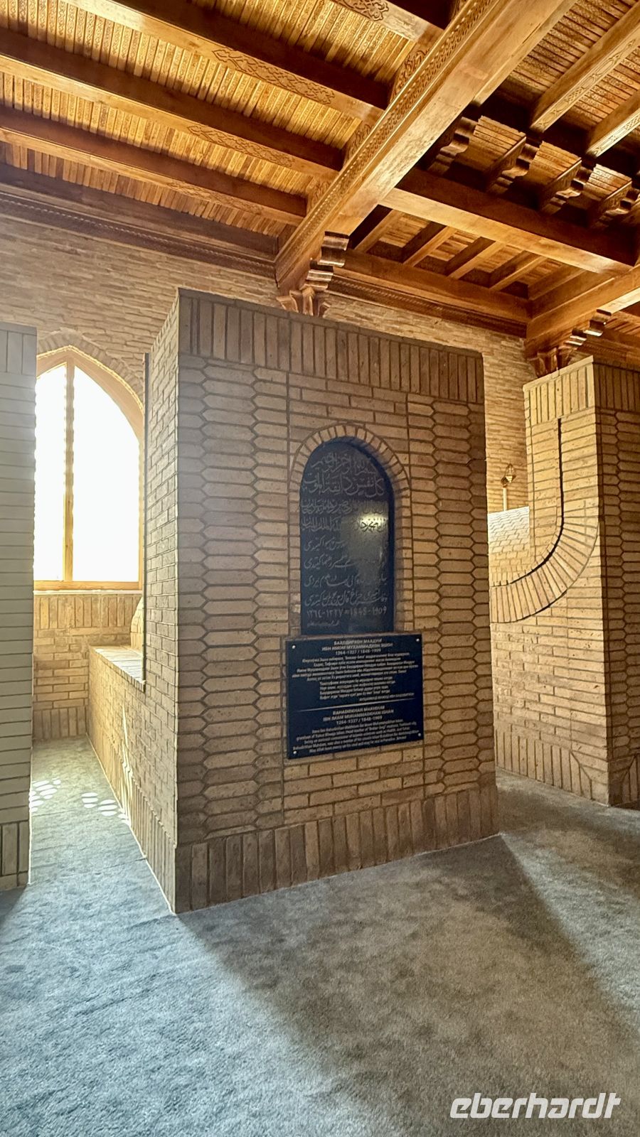 Wir verließen am Morgen die Stadt Buchara, um einige der bedeutendsten Sehenswürdigkeiten in der Umgebung zu besuchen. Unser erster Halt war das Mausoleum des Bahouddin Naqshbandi, einem der bekanntesten Sufi-Heiligen Zentralasiens und Gründer des Naqshbandiyya-Ordens, einer der größten Sufi-Bruderschaften der islamischen Welt. Er lebte im 14. Jahrhundert und predigte Bescheidenheit, innere Reinheit und die enge Verbindung zu Gott im Alltag. Die Anlage liegt etwa zehn Kilometer außerhalb von Buchara und ist bis heute ein wichtiger Wallfahrtsort für Muslime aus Usbekistan und weit darüber hinaus. Das Mausoleum beeindruckt mit seinen weißen Kuppeln, kunstvollen Mosaiken und der friedvollen Atmosphäre, die den gesamten Komplex umgibt. In den Innenhöfen sieht man Pilger, die betend um die Grabstätte schreiten oder Rosenblätter als Zeichen der Verehrung niederlegen.