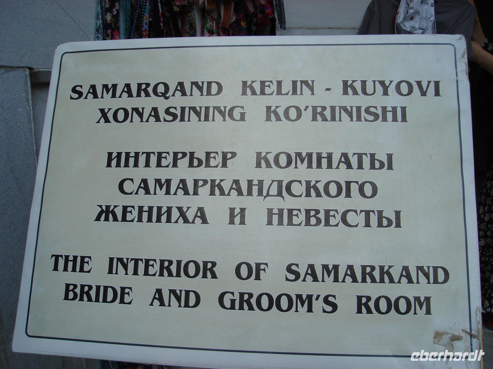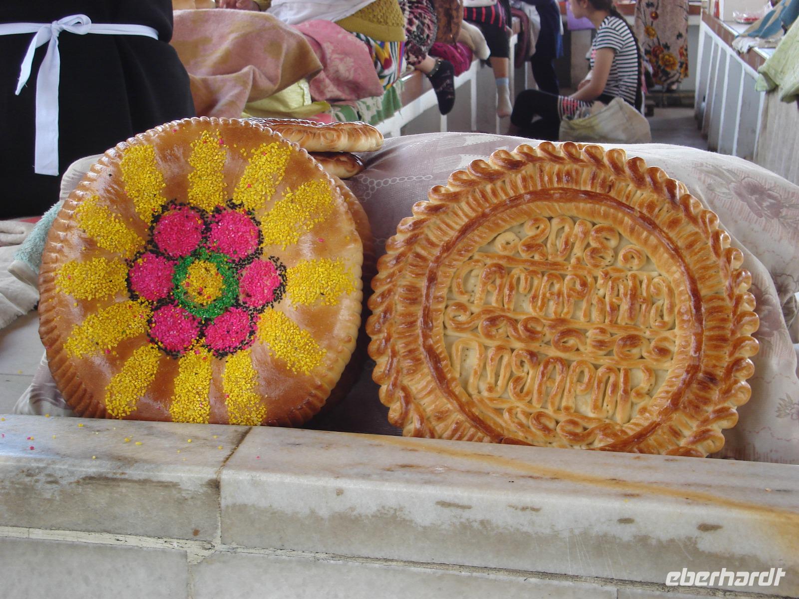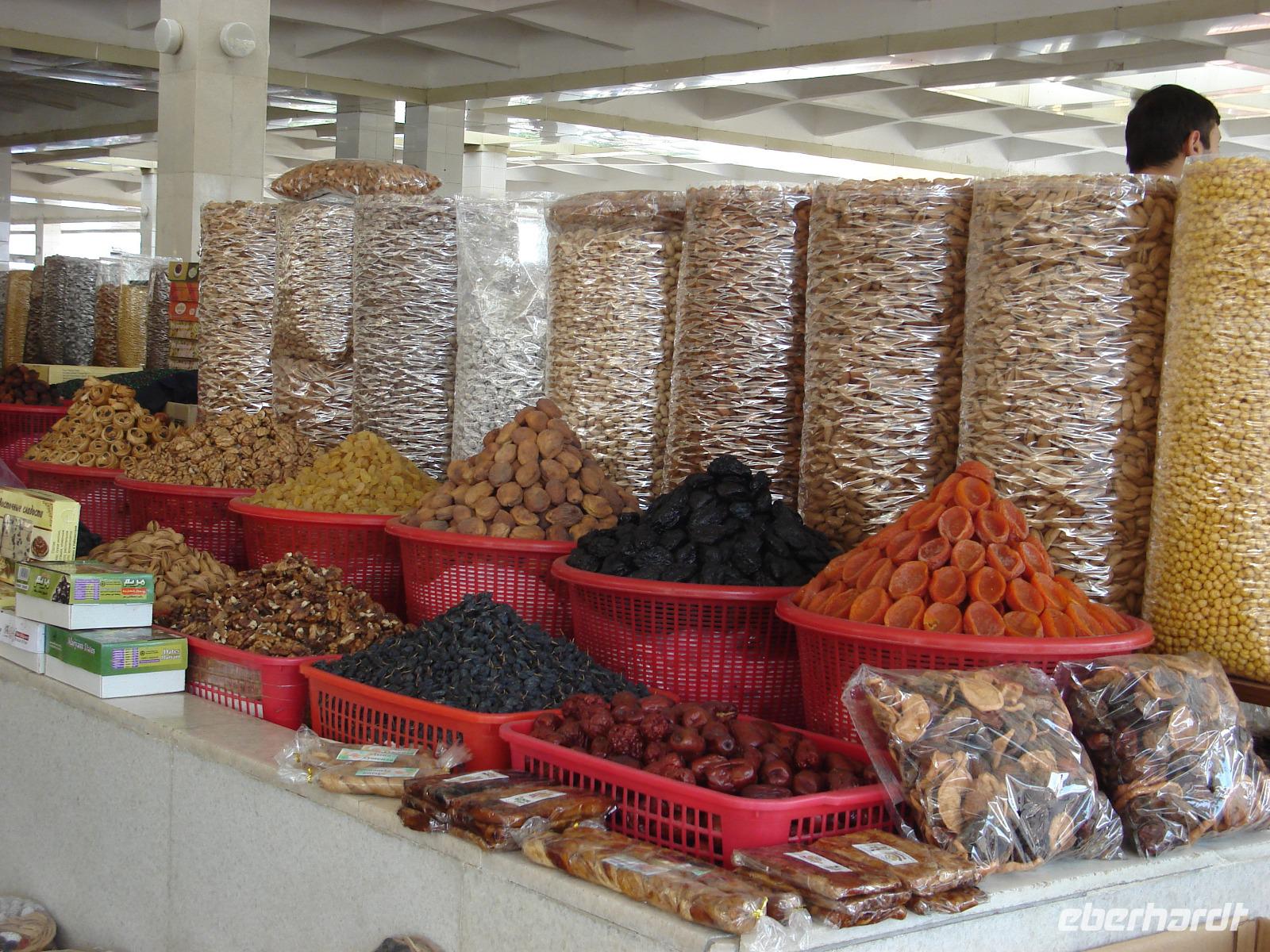 Natürlich zeigt uns Zika die historischen Gebäude, die uns besonders interessieren. Es sind vor allem die Zeugnisse aus orientalischer Zeit: das Kafali-Shash-Mausoleum, die Kukeldasch-Medrese und die berühmte Koran-Bibliothek. Und in einer traditionellen Bäckerei verkosten wir zwischendurch Brot. Es bleibt auch noch Zeit für einen Bummel durch die Markthalle. Eine Fahrt mit der einzigen U-Bahn Mittelasiens muss natürlich sein. Dort sehen wir ganz originelle Stationen. Aber in der Metro ist das Fotografieren verboten. Da kann man nichts machen. Wir prägen uns die Bilder ein.