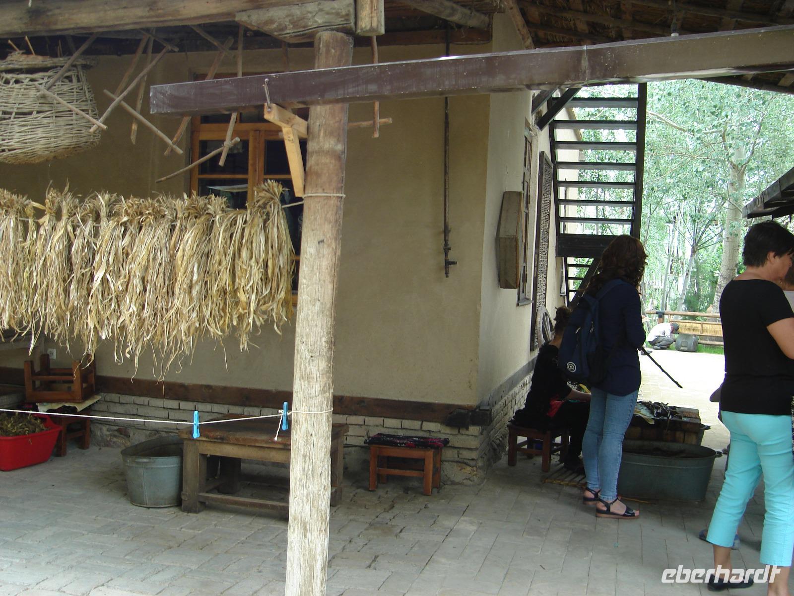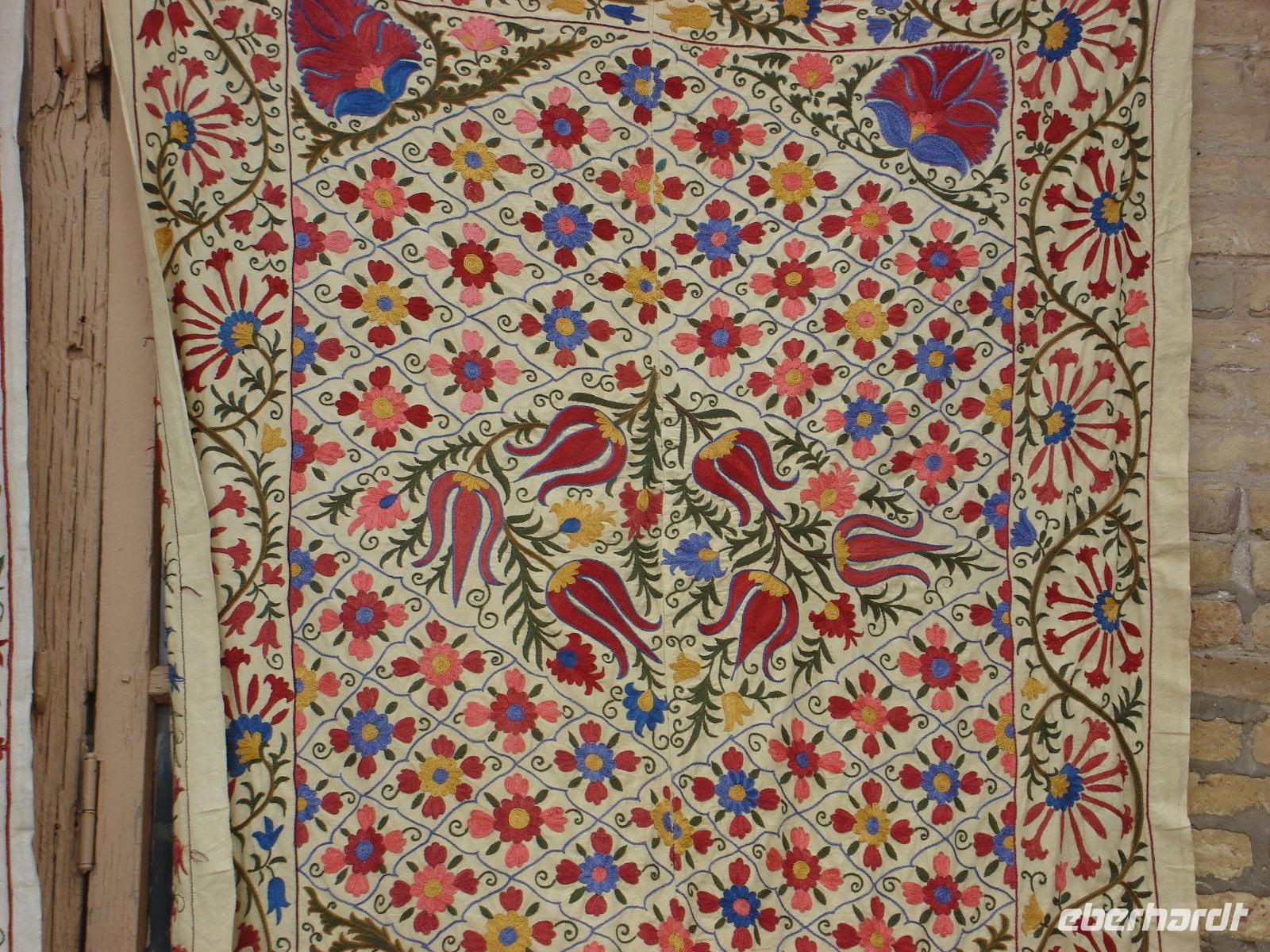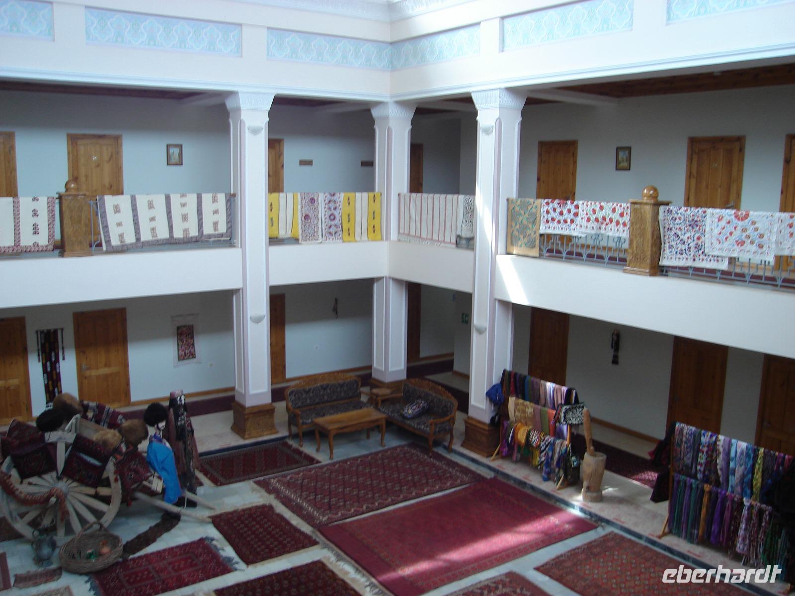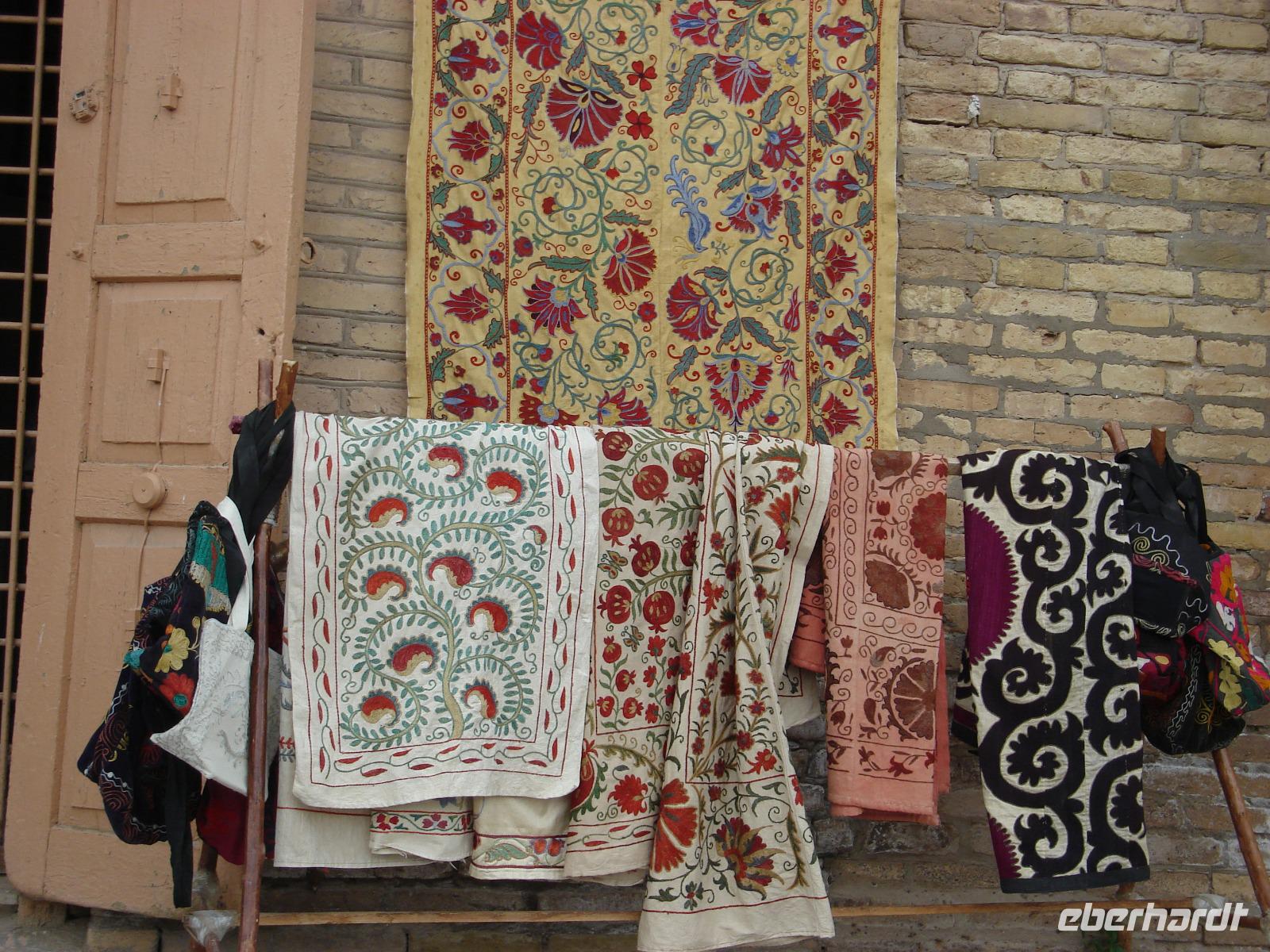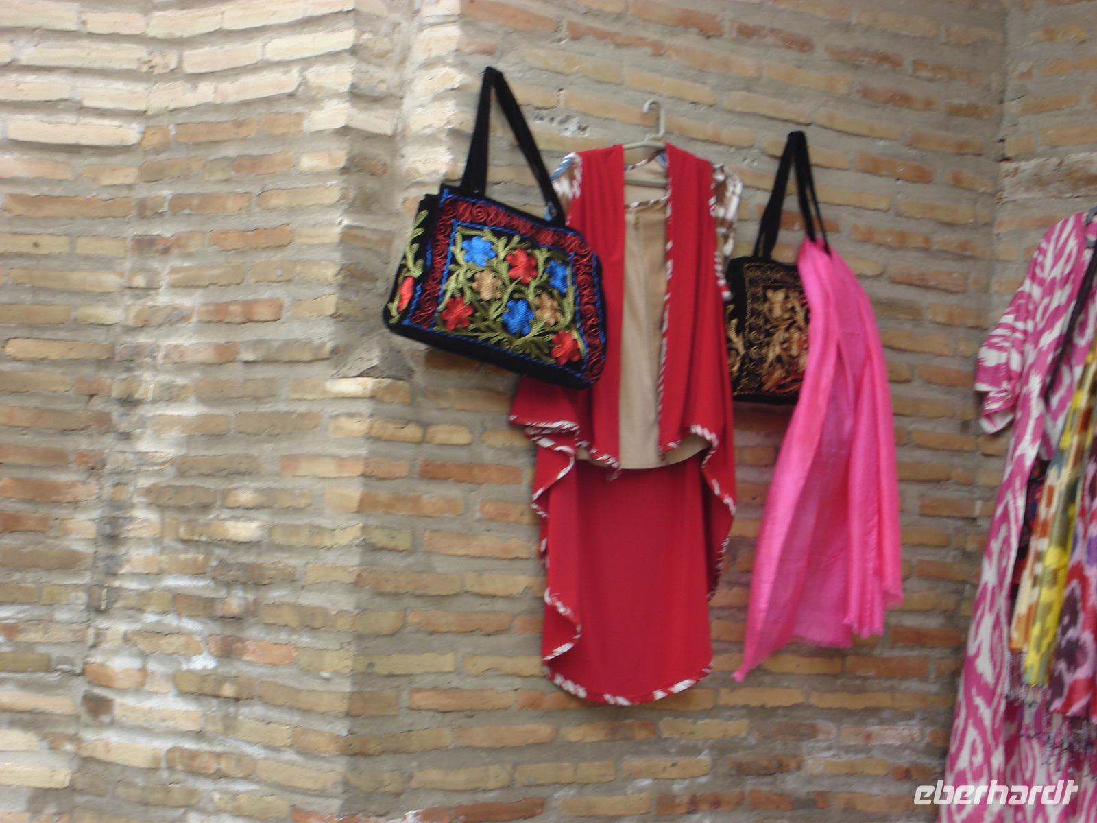 Dann steht noch eine Seidenstoff-Papierfabrik am Stadtrand von Samarkand auf dem Programm. In der kleinen Fabrik können wir sehen, wie aus den Blättern der Maulbeerbäume am Ende schöne Erzeugnisse aus Seide werden. Neben Stoffen, kann man natürlich auch Papier, Taschen oder Kalender herstellen, die man auch kaufen kann, was wir eifrig tun.