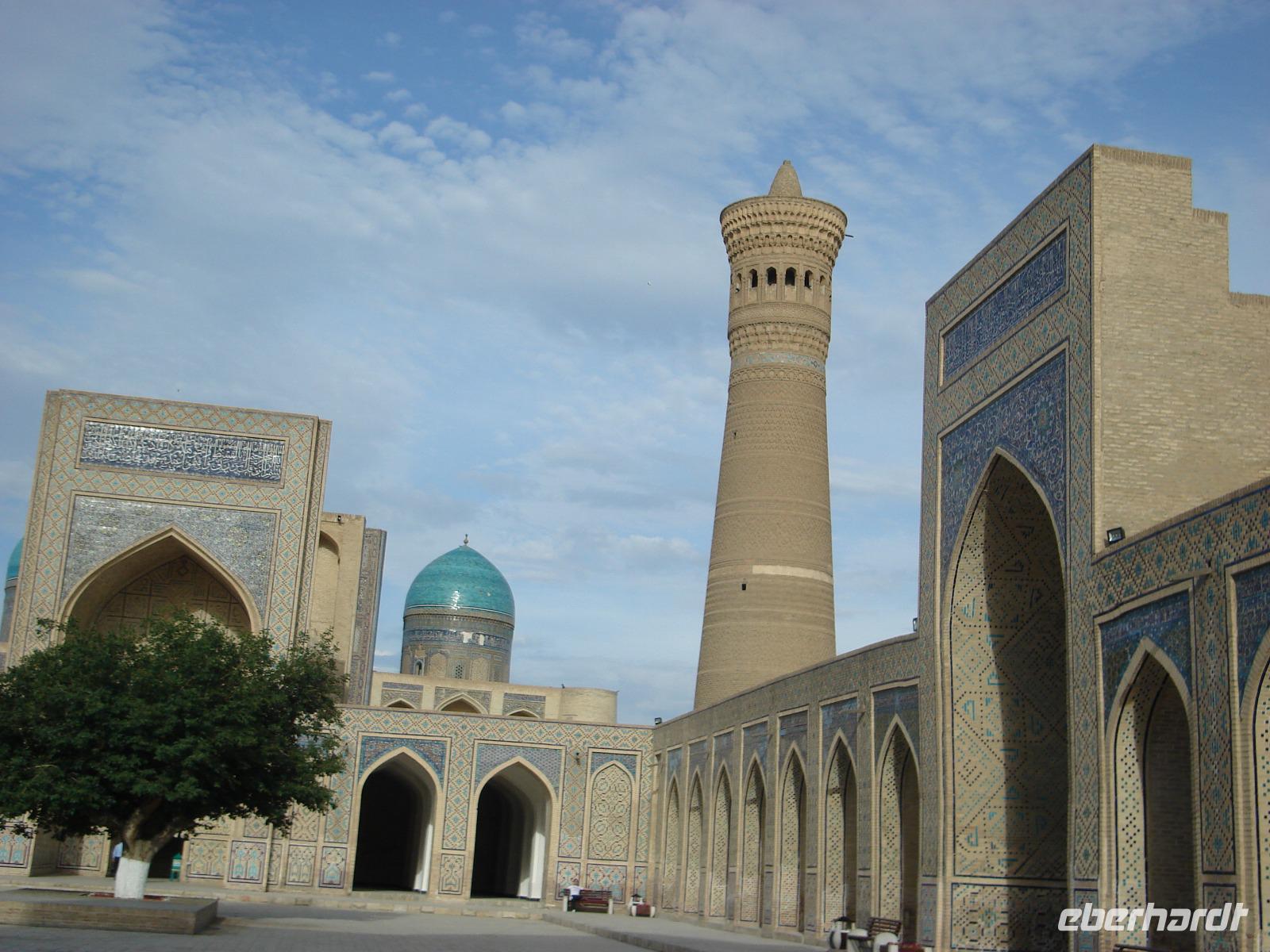 Der Tag beginnt mit einer ausführlichen Stadtbesichtigung von Buchara. Wir sehen u.a. das Mausoleum der Samaniden, die Ark-Zitadelle und auch die Kaljan-Moschee mit ihrem 46 Meter hohen Kaljan-Minarett. Weiterhin die Mir-i-Arab-Medrese. Durch die Anwesenheit zahlreicher berühmter Gelehrter war das heilige Buchara, das den Beinamen die Edle trägt, schon sehr früh ein berühmtes Zentrum von Wissenschaft und Kultur.