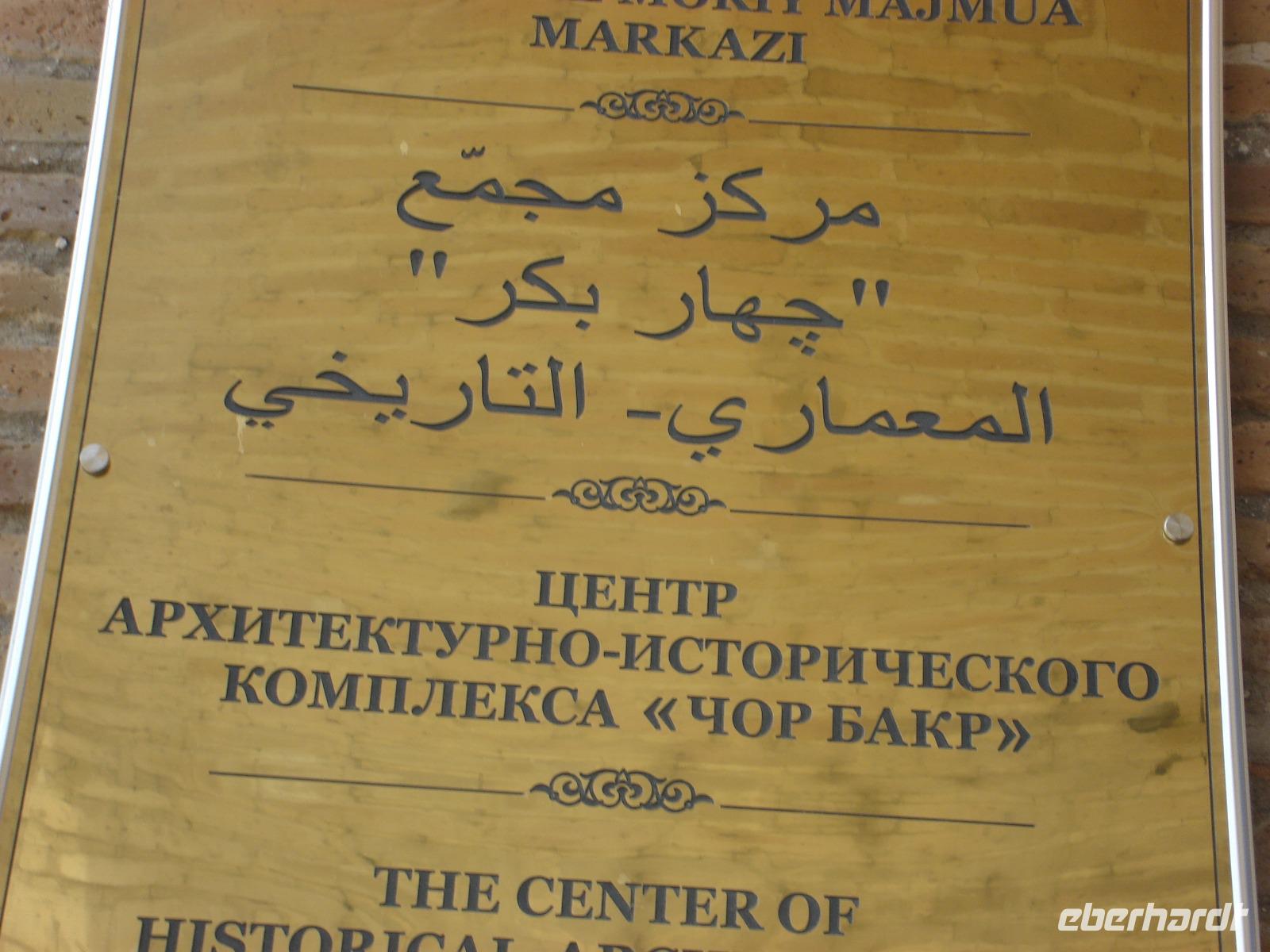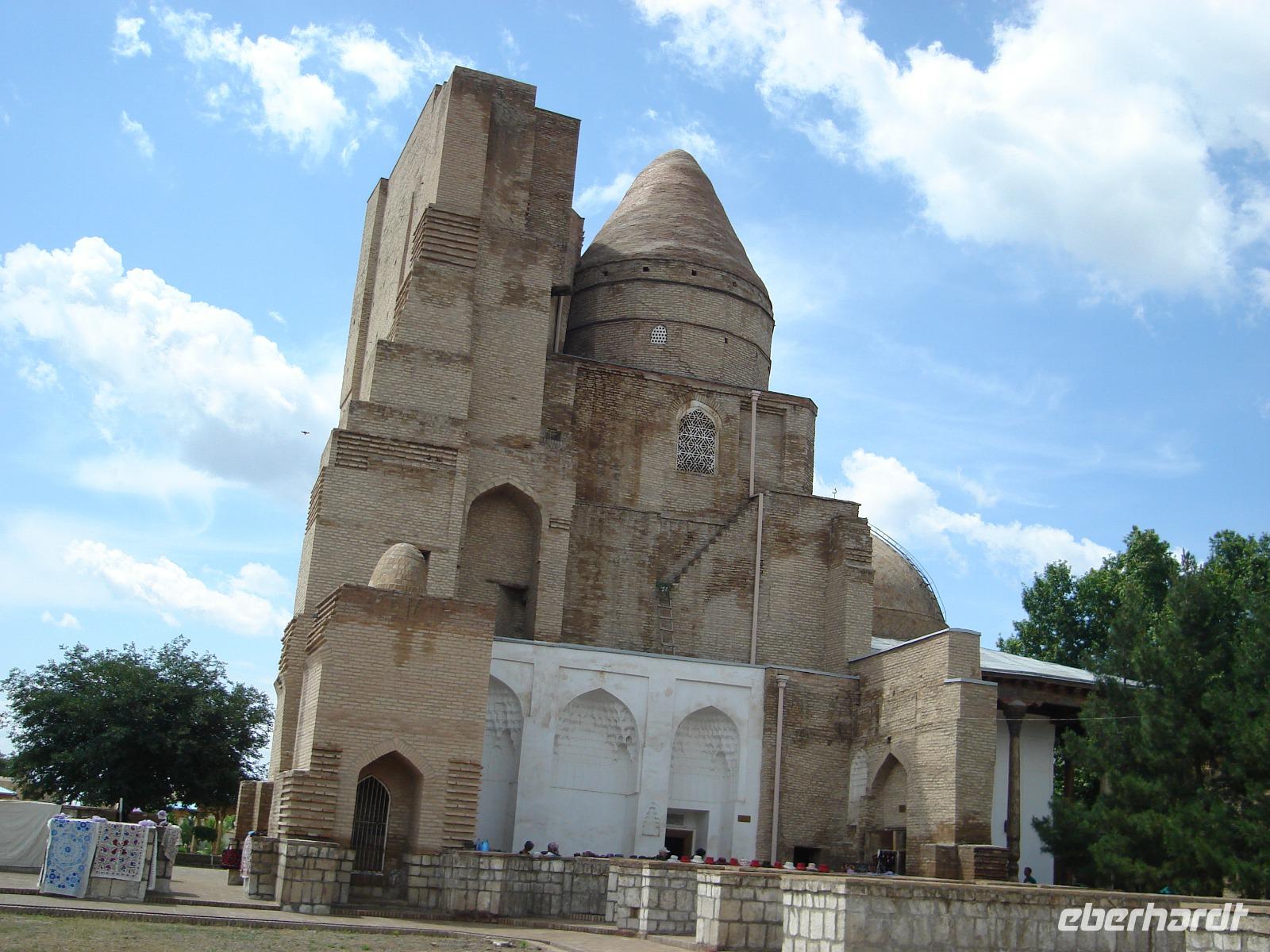 Unser Ziel sind aber auch heute eine Reihe einzigartiger Kulturschätze. Wir besuchen das Chor Bakr Mausoleum und den Palast Sitorai Mokhi Khosa, die Residenz des letzten Herrschers von Buchara. Und wir fahren auch zu der heiligen Anlage von Bahouddin Naqshbandi, die zu einem der heiligen Plätze der Moslems zählt. Hier werden angeblich Wünsche wahr! Wir werden sehen, ob es auch bei uns hilft.