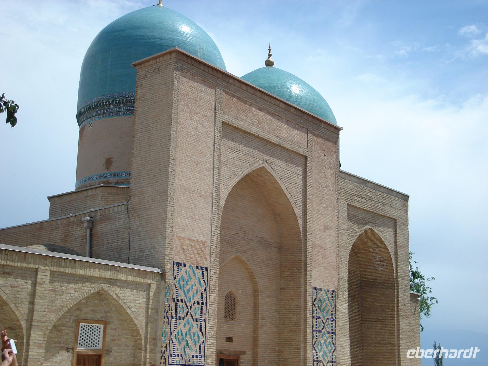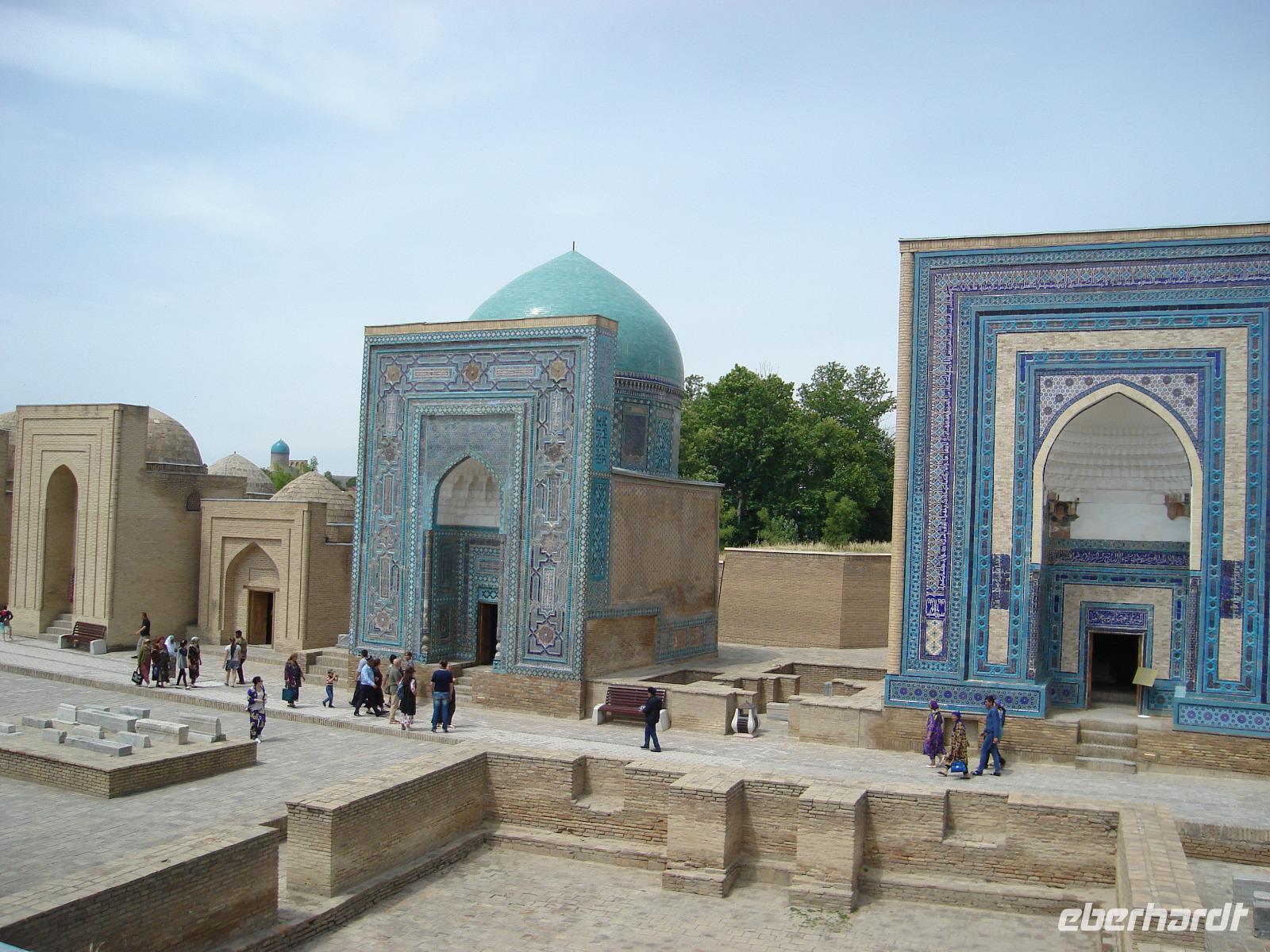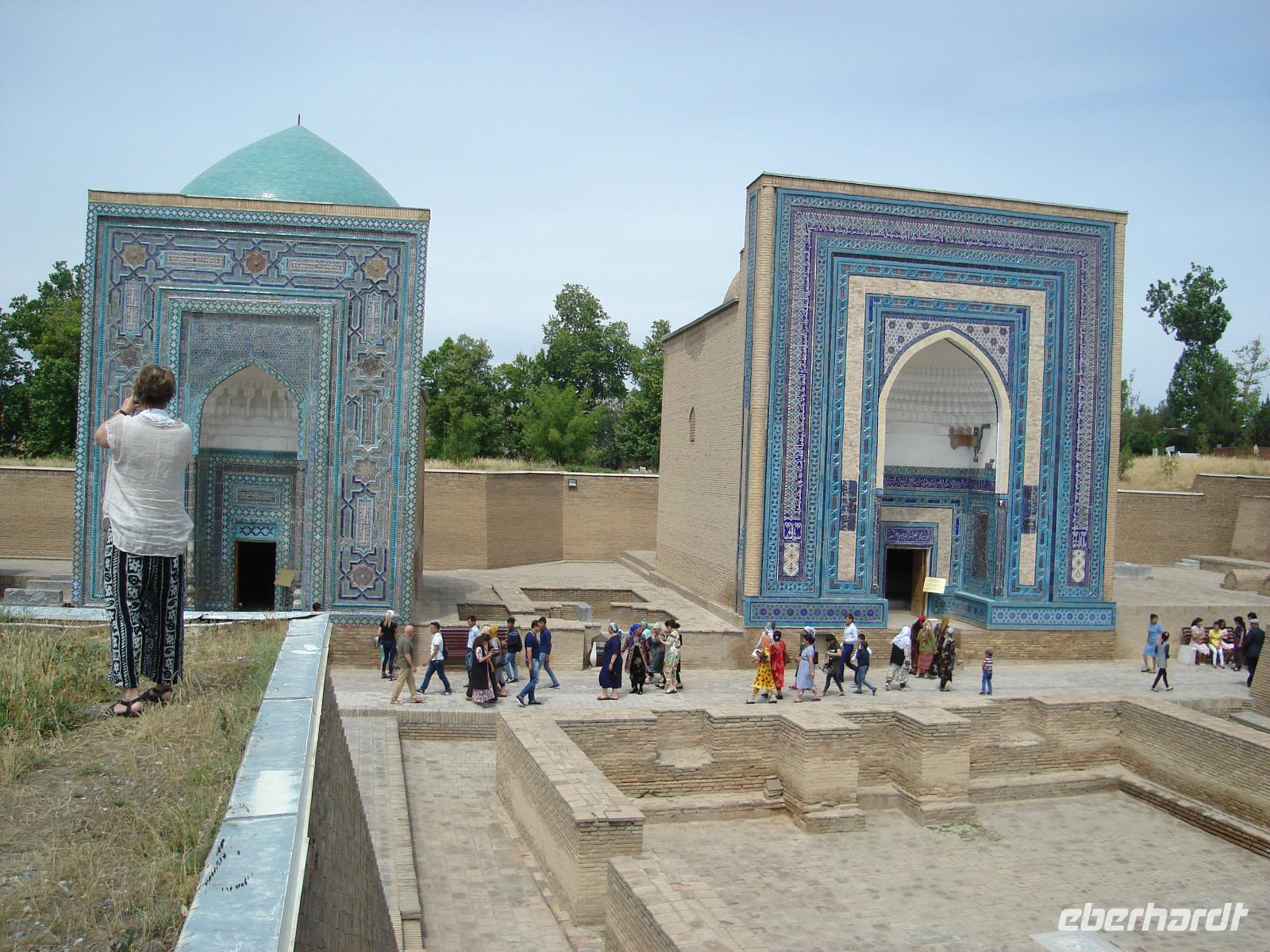 Nach dem Frühstück sehen wir die Anlage Schahi-Sinda. Das ist eine Gräberstraße und eine der bekanntesten Nekropolen in Zentralasien.