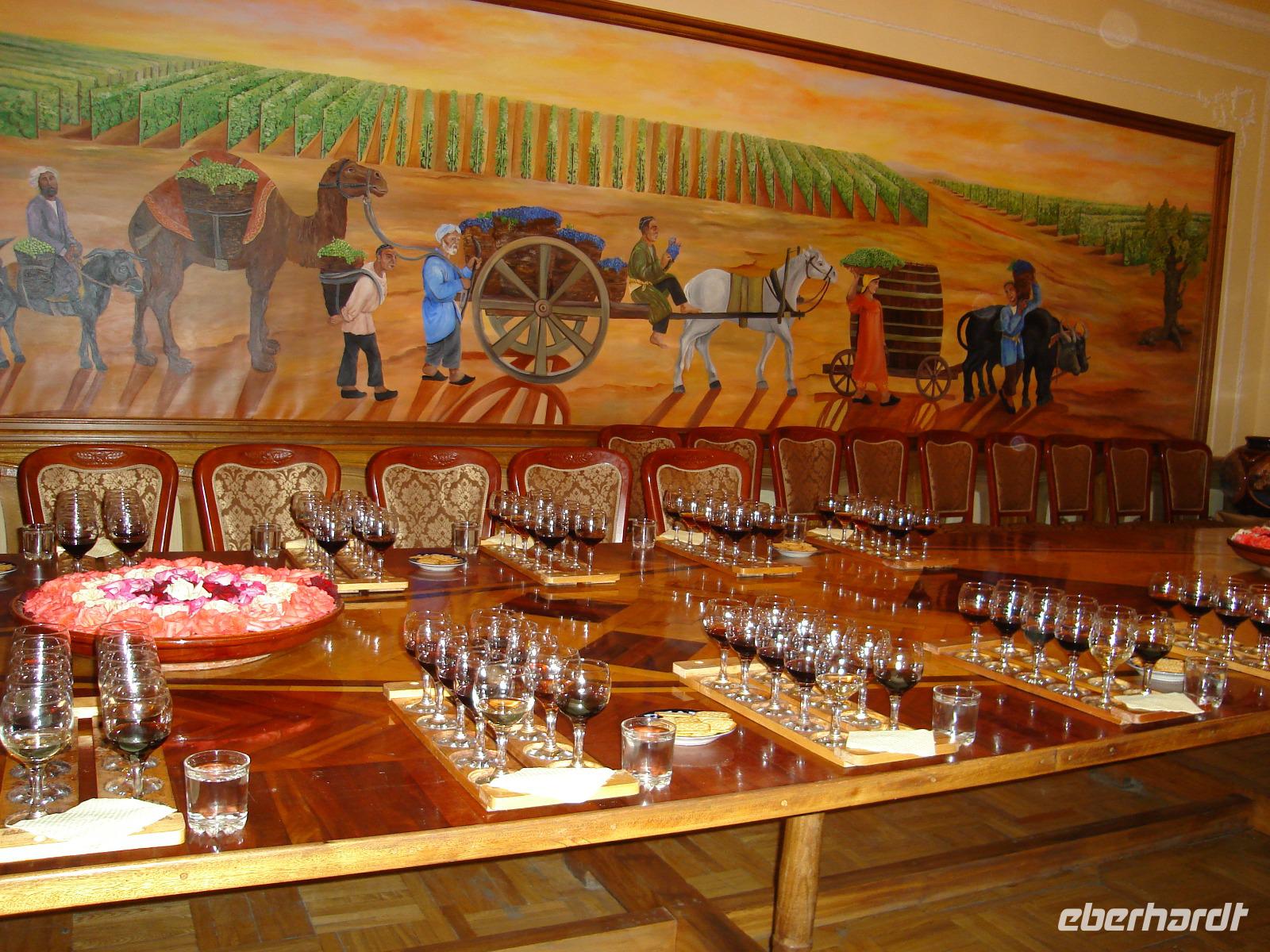 Aber der Tag ist noch nicht zu Ende, denn wir besuchen jetzt ein Weinhaus von Samarkand und verkosten dort verschiedene zentralasiatische Weine und Spirituosen, alles in wirklich sehr guter Qualität. Auch hier kann man die Produkte kaufen. Und anschließend geht es in ein Restaurant mit traditioneller Musik. Das war wieder ein wunderbarer Tag voller Erlebnisse, Sehenswürdigkeiten, guter Speisen und Getränke. Die Stimmung ist großartig!