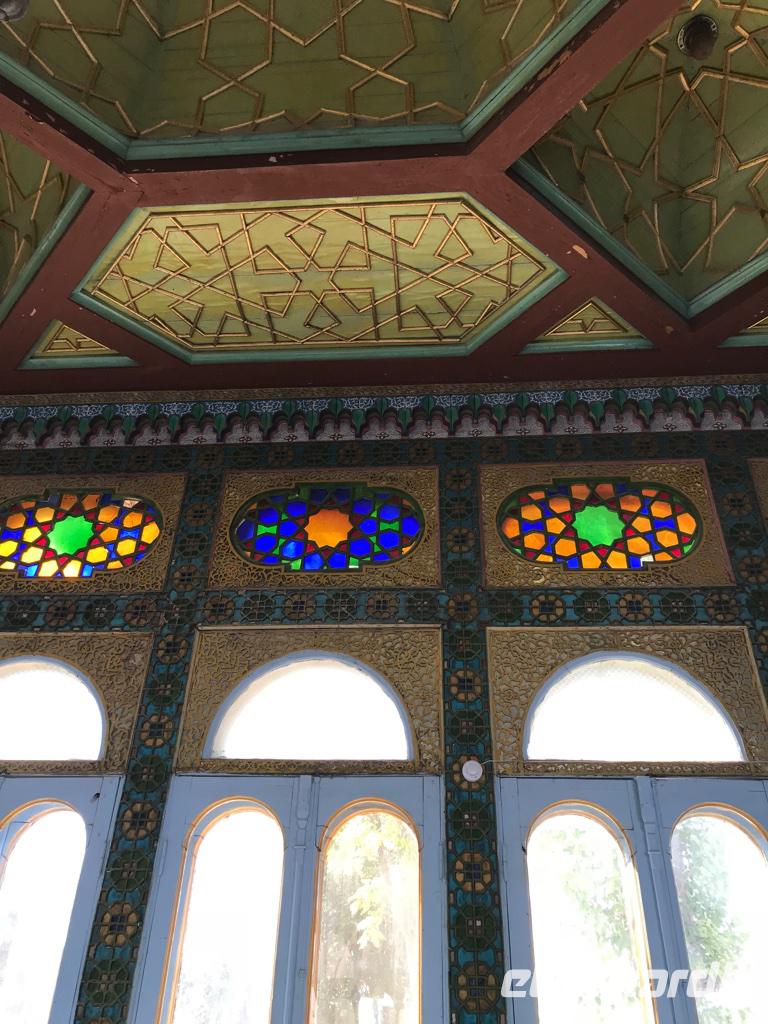 Am Nachmittag dann fuhren wir in zum Shahi Zinda Ensemble, das von Ulugbek im Auftrag von seinem Sohn Abdulaziz in den Jahren 1434-35 erbaut worden ist. Es ist eine Gräberstraße und eine der bekanntesten Nekropolen in Zentralasien. 40 Stufen sind es bis zur ersten Plattform, gerade so viel wie der Ramadan Tage hat. Schon bald hieß es nach Samarkand zurückzukehren. Bevor wir uns zum Bahnhof begaben, nahmen wir noch einen Kaffee zur Entspannung in einem kleinen Café. Dann hieß es Abschied nehmen von Samarkand und von unserem Busfahrer, der einige Tage mit uns verbracht hat. Mit dem Zug Afrosiab fuhren wir der Hauptstadt entgegen. Ein bequemer Schnellzug mit den technischen Möglichkeiten unserer Zeit, ein kleiner Snack vom freundlichen Personal ist auch inbegriffen, vor allem pünktlich und sauber ist der Zug, wo finden wir das schon zu Hause. Angekommen in Taschkent gingen wir zum Abendessen in das Restaurant Piligrim und checkten noch kurz in unserem Taschkenter Hotel ein, wenn auch nur für eine Stunde. Zumindest konnten wir uns kleidungsmäßig auf den Herbst zu Hause einstellen.