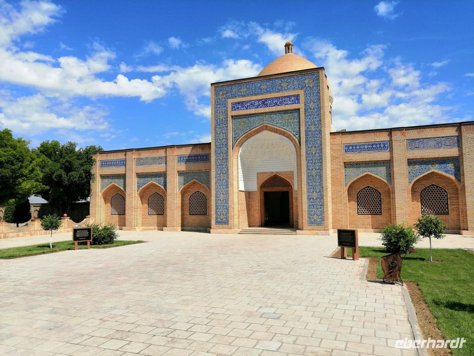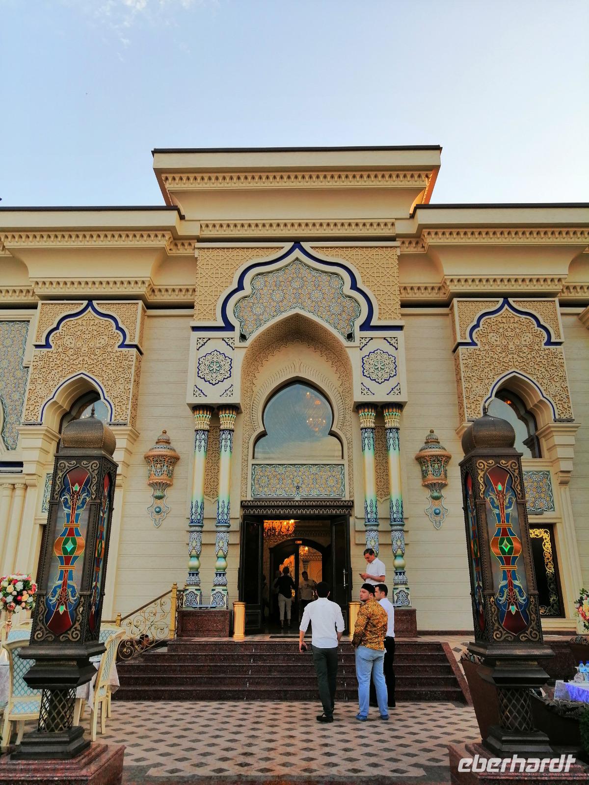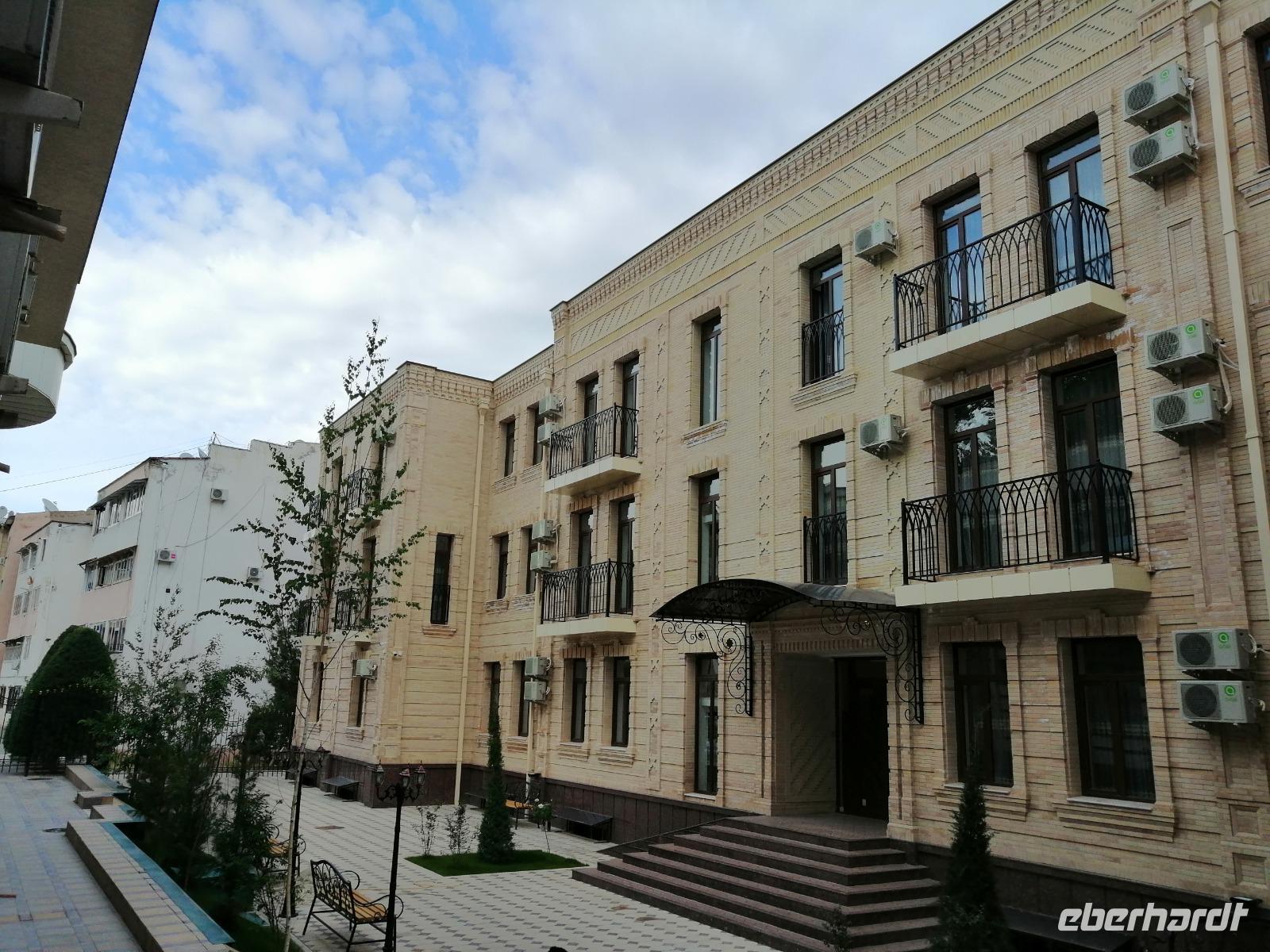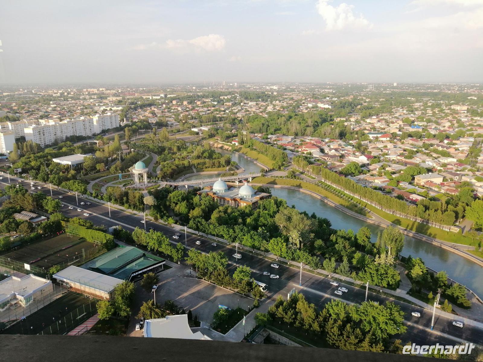 Die Hauptstadt von Usbekistan hat uns am frühen Morgen mit dem sonnigen Wetter empfangen. Am Flughafen begrüßte uns Ilhom, unser sehr erfahrener örtlicher Reiseleiter, der bereits seit 1992 sein Land ausländischen Touristen zeigt. Wir fuhren gemeinsam in einem großen Bus zum Hotel City Palace im Zentrum von Taschkent, wo auf uns noch ein reichhaltiges Frühstück wartete. Direkt im Hotel gab es ein Wechselservice der Transtbank, wo wir das usbekische Geld „Sum" bekommen haben. Nach einer guten Erholungspause im Hotel, begann gegen 14 Uhr unsere Stadtrundfahrt. Zuerst fuhren wir zum Hast-Imam-Komplex, einem des größten muslimischen Zentrums in Taschkent. Der Weg dorthin führte durch die engen Gassen der alten "Altstadt" von Taschkent, wo uns Ilhom über die lokale Bauweise der vielen Lehmhäuser erzählte. Der Hast-Imam-Komplex besteht aus vier Gebäuden: Barak-Khan-Medrese, Hasrati-Imam-Moschee, Muji-Mubarak-Medrese und Tillya-Scheich-Moschee. Zuerst haben wir uns die Barak-Khan-Medrese angeschaut: im Hof der Medrese befanden sich verschiedenen Handwerker und Händler, die ihre Waren anboten. Danach ging es zur Muji-Mubarak-Medrese, wo sich der berühmte Osman-Koran befindet. Ilhom erzählte uns über den Schwiegersohn des Propheten Mohammed, der erstmalig eine gültige Version des Korans zusammengestellt hat. Zum Schluss besichtigten wir die Hasrati-Imam-Moschee: die größte Moschee in Taschkent, die auch als Freitagsmoschee für die Gläubiger geöffnet ist. Wir schauten uns den Innenhof und die Gebetshalle an. Nach einer sehr gemütlichen Tee-Pause im AL Aziz Café, besichtigten wir den Fernsehturm von Taschkent. Nach einer sorgfältigen Sicherheitskontrolle, bewunderten wir die Hauptstadt Usbekistans in einer Höhe von 94 m. Der Fernsehturm von Taschkent ist die höchste Einrichtung mit einer Aussichtsplattform in Zentralasien und ist 375 m hoch. Eine junge nette Frau erzählte uns über die technischen Eigenschaften des Fernsehturms und die Sehenswürdigkeiten der Stadt, die man von oben wunderbar bewundern konnte. Den ersten Tag in Usbekistan beendeten wir in einem landestypischen Restaurant „Sim Sim", wo uns sehr leckere usbekische Speisen serviert wurden. Ein musikalischer Gruß mit Live-Musik von Nachbartisch verschönerte unseren Abend zusätzlich! Außerdem konnten wir die vielen Feier im Restaurant (Geburtstag einer Frau mit ihren erwachsenen Kindern und Schwiegerkindern, Betriebsfeier einer zahnärztlichen Klinik usw.) mit vielen gigantischen Blumensträuchern beobachten und ins Gespräch mit Einheimischen treten. Schon spät abends waren wir müde aber sehr glücklich im Hotel.