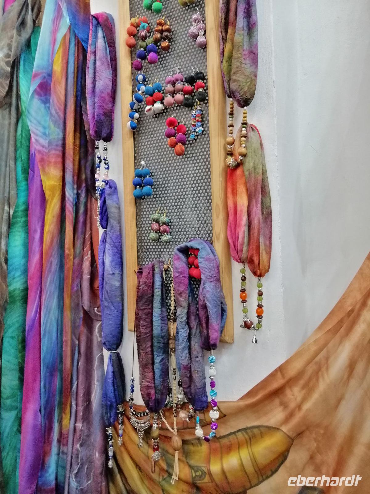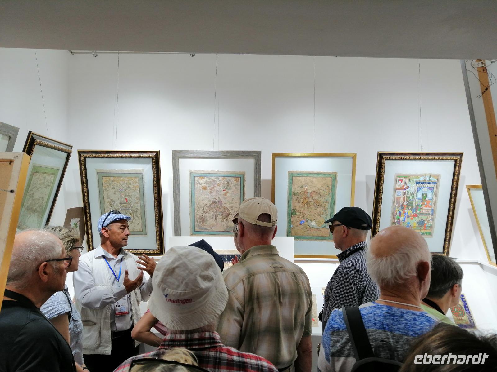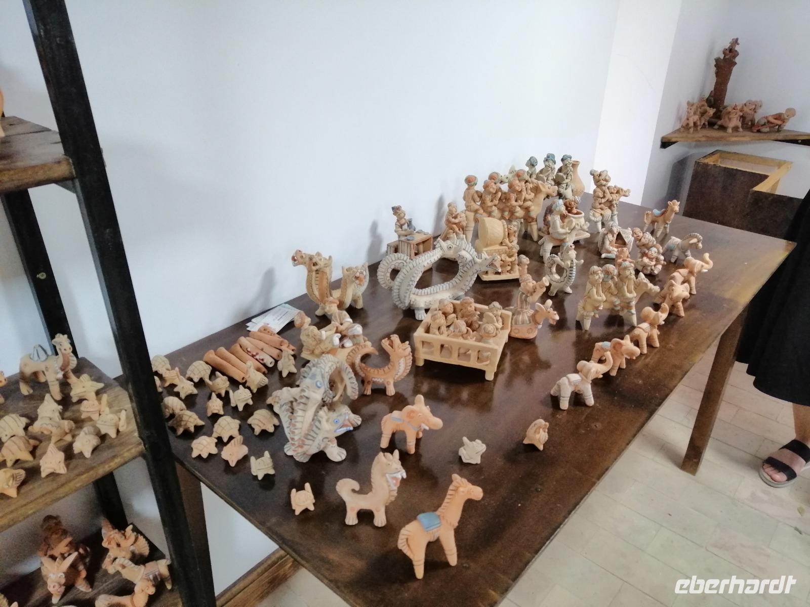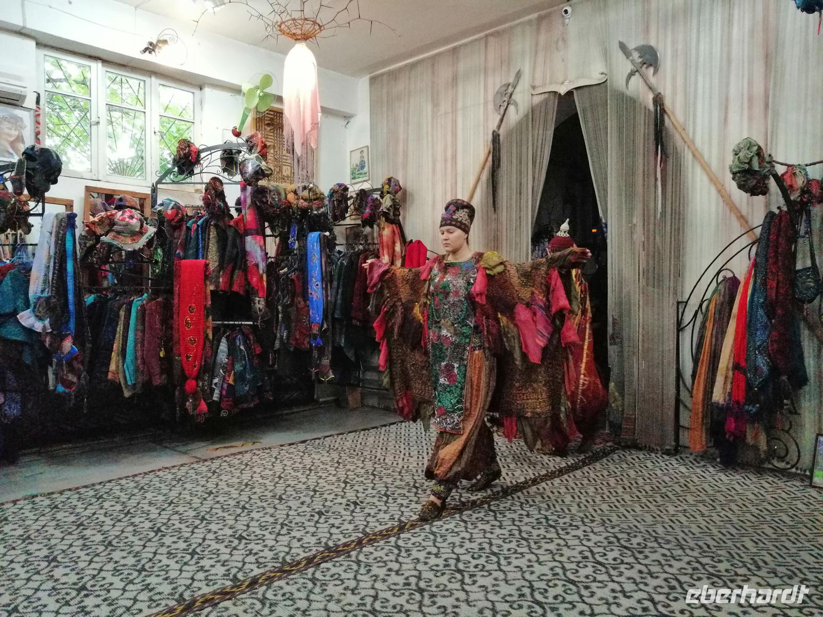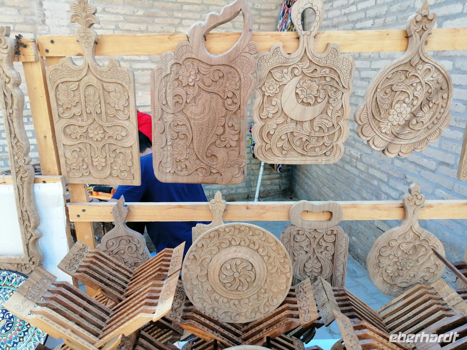 Heute nahmen wir uns vor Buchara, die Stadt der Gelehrten zu erkunden. Unser Stadtrundgang begann am Divan Begi Platz, am Stadtteich. Ilhom erzählte uns über die Maulbeerbäume, die hier in Usbekistan seit Jahrhunderten vor allem für die Produktion von Seide eine große Rolle spielen. Danach besichtigten wir die Khanaka Divan-Begi Medresse, in der sich das Keramikmuseum befand. Dort bewunderten wir nicht nur Keramikfunde, sondern auch die Kunst der Kalligraphie. Anschließend gingen wir durch eine überdachte Markthalle Karavan Sary Nugay aus dem 16. Jahrhundert, wo Schmuckhändler ihre Waren anboten. Danach besichtigten wir die Moschee Magoki Atori, die sich in einer Vertiefung mitten in der Altstadt befindet. Gleich nebenan schauten wir uns die Ausgrabungsstätte an, die als Memorial Kulturerbe ausgeschildert ist. Weiter ging es durch die weitere Makrthalle Taki-Telpak-Furushon: eine Werkstätte der Mützenmacher. Unterwegs hielten wir an einem Seidenteppichverkäufer an, wo Ilhom uns über die Seidenteppiche berichtet hatte. Gleich gegenüber befand sich ein Hamam (Dampfbad) für Männer. Wenig später besuchten wir schon eine Kunstwerkstatt von Davron Toshev: einem berühmten Maler von Buchara, der uns persönlich in seiner Werkstatt empfangen und mit grünem Tee bewirtet hat. Ilhom erzählte uns über die Besonderheiten seiner Malerei: beispielsweise Elefantenbilder, bestehend aus vielen anderen Tieren. Danach ging es in eine Markthalle, in der Frauenschmuck angeboten wurde. Ilhom stellte uns verschiedene Schmuckteile der Nomadenfrauen und Stadtfrauen direkt am Verkaufsstand eines Schmuckhändlers vor. Ein bisschen erschöpft durch die Wärme und viele neue spannende Informationen, erholten wir uns auf der Dachterrasse des Restaurants Chashmai-Mirob mit herrlichem Blick zum Pol Kaljan Komplex. Während des Mittagsessens erzählte uns Ilhom über die Geschichte des Komplexes. Wir fühlten uns sehr wohl im Schatten der Dachterrasse, wo sogar die Luft zusätzlich mit kühlem Wasserdampf besprüht wurde. Nachmittag besichtigten wir den Kaljan-Komplex, mit dem Wahrzeichen von Buchara: dem Kaljan-Minarett. Das Kaljan-Minarett ist 46 m hoch und ist das höchste Minarett in Zentralasien. Neben dem Minarett befindet sich die Kaljan-Moschee aus dem 16. Jahrhundert, in die bis 10.000 betende Gläubiger passen. Außerdem gehört auch die Miri Arab Medrese zum Koljan Komplex, in der auch heute noch Islamwissenschaften unterrichtet werden. Buchara war schon sehr früh ein bekanntes Zentrum von Wissenschaft und Kultur: denn hier lebten zahlreiche berühmte Gelehrte. Anschließend gingen wir über einen sehr großen Platz, Registan genannt zur Ark-Zitadelle. Die Zitadelle befindet sich auf einem künstlich aufgeschütteten Hügel und besteht aus verschiedenen Elementen: der Freitagsmoschee, dem Thronhof, dem Pferdehof, dem Gebäude des Premierministers und Museen. Einige Objekte besichtigten wir genauer. Abschließend besuchten wir die Bolo-Hauz Moschee. Houz bedeutet auf Usbekisch Teich: vor der Moschee befindet sich auch ein Teich, der älter als die Moschee (Bj. 1712) selbst sein soll.