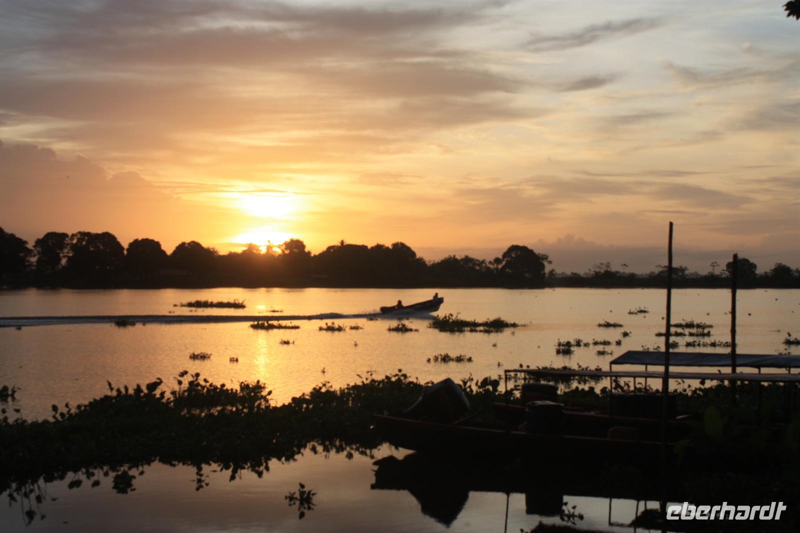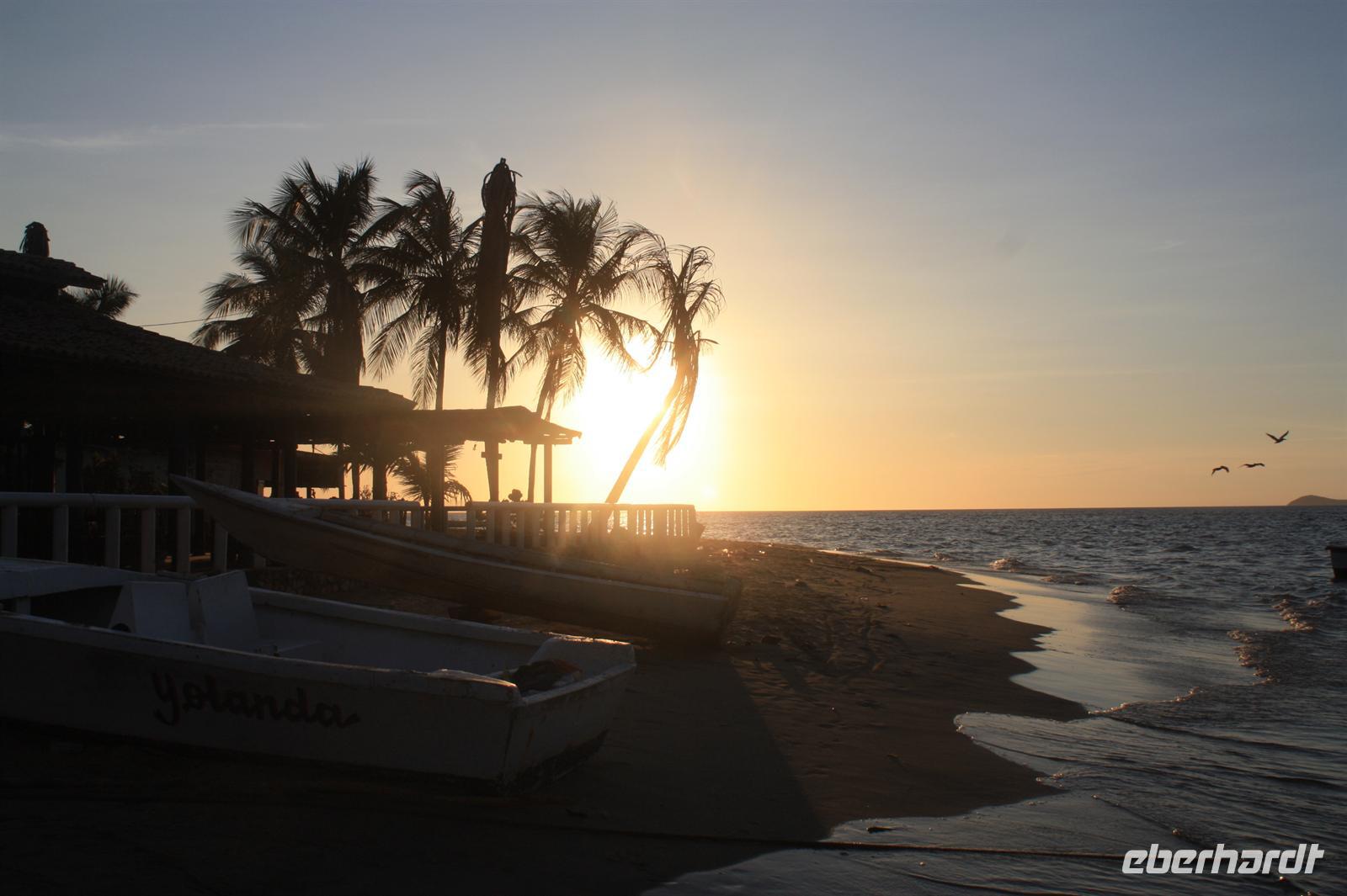 Es heißt schon wieder Abschied nehmen! Den ersten Teil der Reise, die Andenregion, ließen wir am Ostersonntag mit den ersten Reiseeindrücken im Gepäck hinter uns. Nur klingelte der Wecker erneut viel zu zeitig noch bevor die Nacht überhaupt begann. Ein Flughafentag stand uns bevor. Via Caracas flogen wir von El Vigia nach Puerto Ordaz, das wirtschaftliche Zentrum Venezuelas' Stahlindustrie. Hier stiegen wir um in einen örtlichen Bus und fuhren zur Übernachtung nach Ciudad Bolivar, die alte Hauptstadt Venezuelas. Auf dem Orinoco unternahmen wir zur Abenddämmerung noch eine Bootsfahrt. Die Hoffnung Süßwasserdelphine zu sehen wurde jedoch nicht erfüllt. Umso schöner war der Sonnenuntergang über L'Angostura.