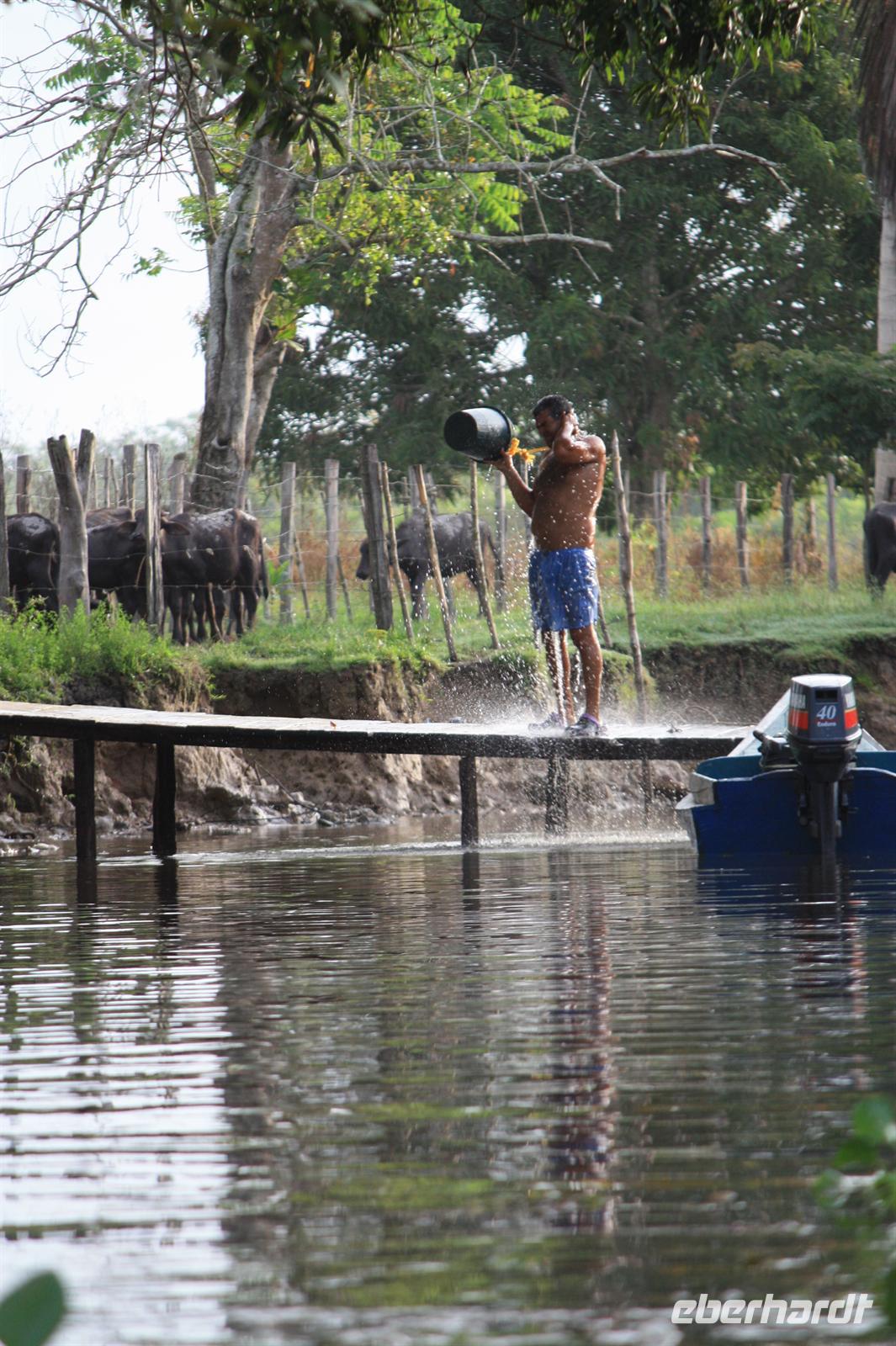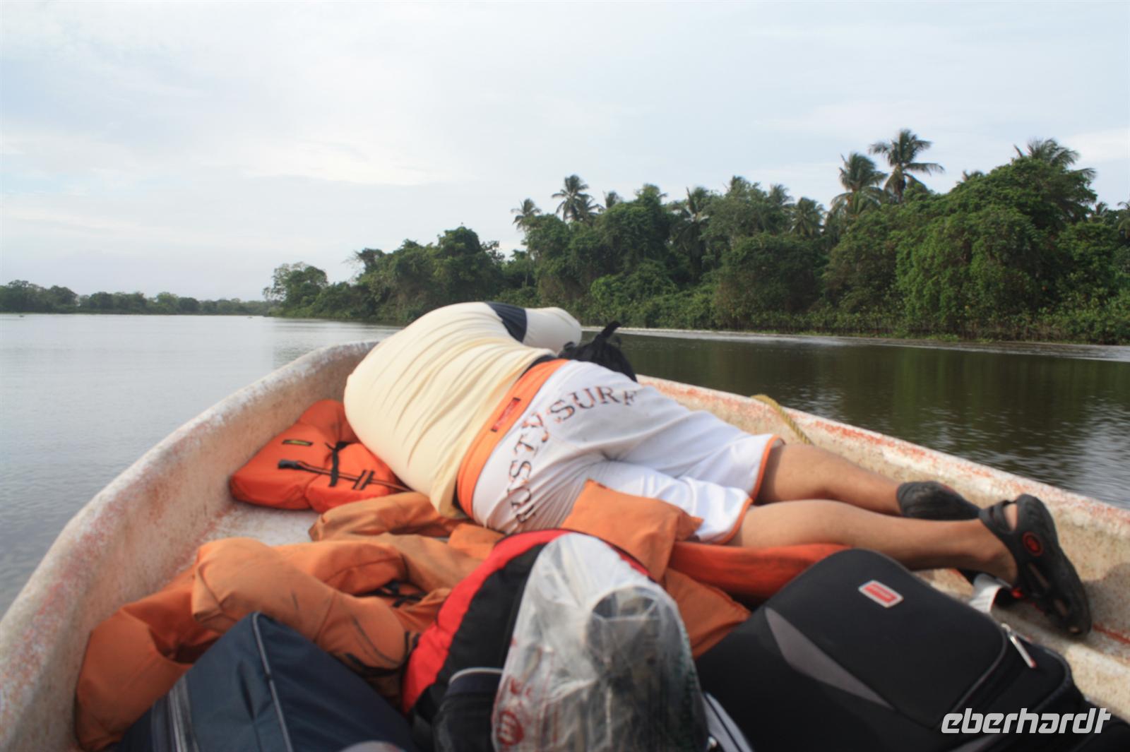 Wir fuhren als am 12.04.2012 morgens ohne örtlichen Reiseleiter zum Delta. Glücklicherweise kannte ich das Land, die Strecke, das Delta und so fuhren wir mit einigen Stopps nach Bocca de Uraco, unser Tor zum Delta. Mit einer Breite von 370 km Maximalausdehnung und einer Fläche von ca. 19.000 km² ist es Heimat der Warao Indianer. Die artenreiche Deltalandschaft wird vor allen Dingen stark durch die Kenntnis über die Erdölvorkommen beeinträchtigt. Wir allerdings erlebten ein Delta voller Stimmung. Abends, in unseren einfachen aber sauberen Unterkünften lauschten wir dem Ruf der Natur nachdem uns die einheimische Familie mit frischem Fisch und liebevollem Essen verwöhnten.
