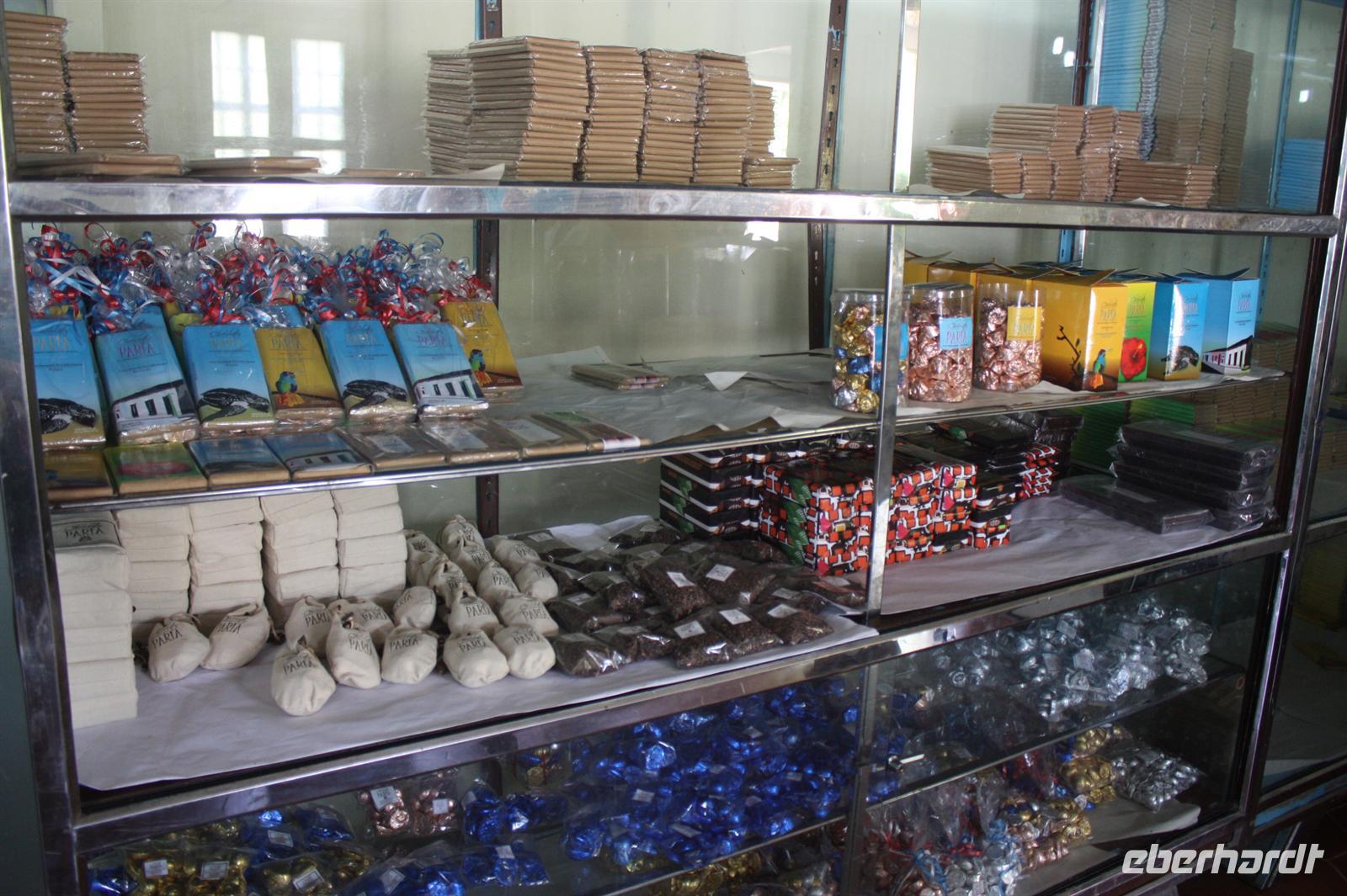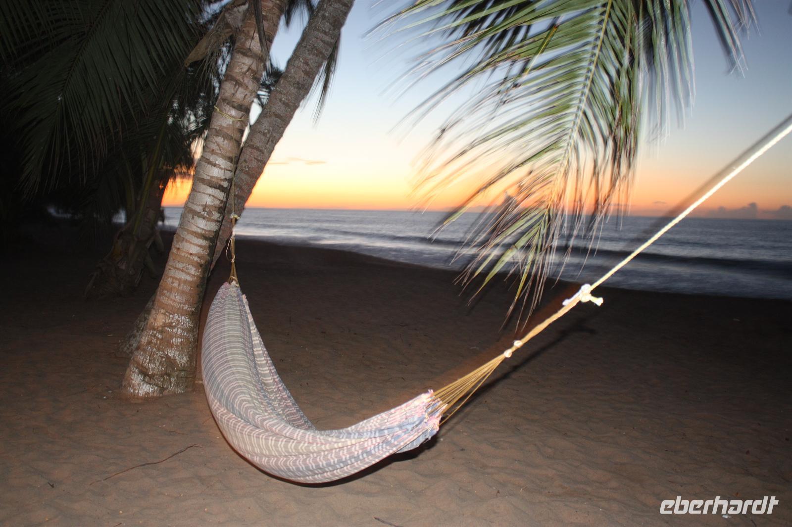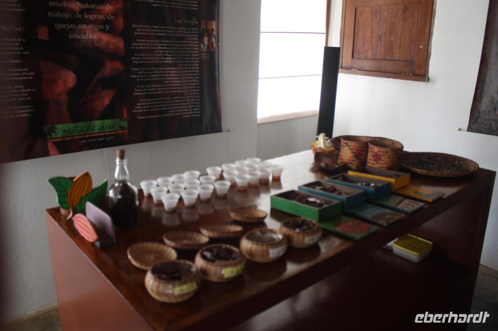 Wann hat man schon einmal den Strand direkt vor der Haustür, karibische Palmen und Meeresrauschen?! Somit gönnten wir uns ein spätes Frühstück unter freiem Himmel und faulenzten in der Hängematte. Erst Mittags wagten wir den abenteuerlichen Einstieg im kühlen Nass in unser Boot. Wie sollte es auch anders sein: es begann zu Regnen, wieder einmal in Strömen. Ziel war zunächst der beliebte Strand Playa Medina. Kartoffelsalat mit Hühnchen und Melone aßen wir zu Mittag ehe wir noch ein weiteres Stück Wegstrecke im Boot zurück legten bis Playa Caracolito. Unser Busfahrer wartet auf uns und zur Überraschung hielten wir noch an einer Kakaoplantage "Caribe". Nicht nur die Schokolade ist vorzüglich - Nein! Den Eltern der aktuellen Miss Venezuela gehört die Plantage. "Kann denn Kakao Sünde sein?" ...