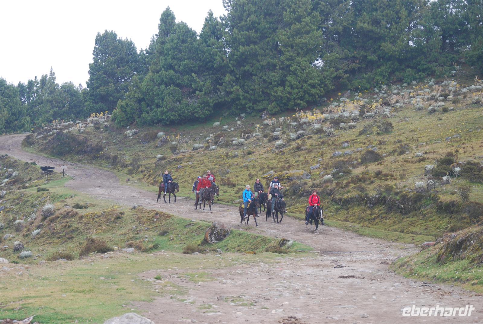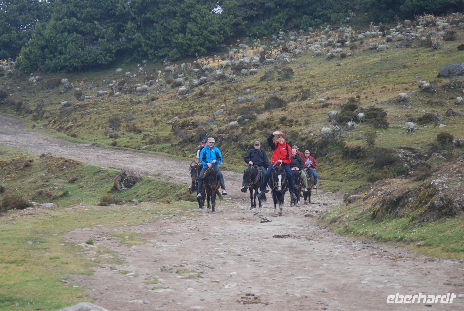 Anschließend stärken wir uns beim Mittagessen für einen etwas abenteuerlichen Ausritt mit kleinen Andenpferden zur Laguna Negra. Über Stock und Stein führen uns die Pferde bergauf und -ab bis zur Lagune. Die weniger Abenteuerlustigen spazieren den gleichen Weg entlang auf den eigenen Füßen bis zu einem Aussichtspunkt auf die Lagune und haben genug Zeit, die Flora der Umgebung zu bestaunen. Am Abend erreichen wir wieder Mérida.
