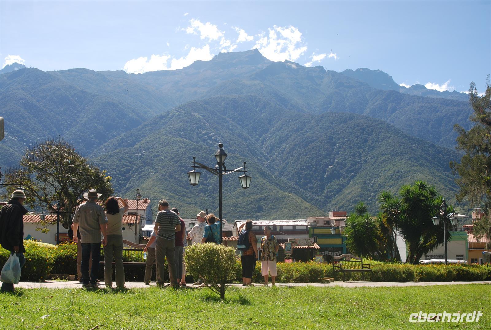 Die Berge, die die Stadt umgeben, zeigen sich heute morgen von ihrer besten Seite. Bei einer kleinen Stadtrundfahrt sehen wir Plaza Milla, Plaza Bolívar und Plaza de las heroínas, wo die höchste Seilbahn der Welt ihren Startpunkt hatte (seit zwei Jahren leider außer Betrieb).