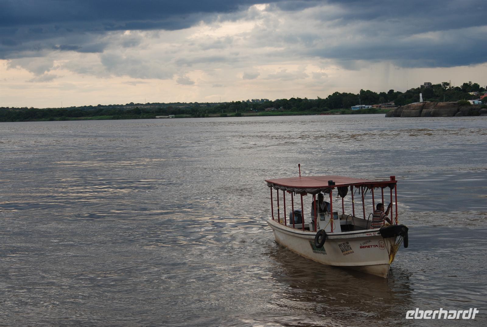 Den heutigen Vormittag entspannen wir im Camp. Einige nutzen die Zeit, um noch einmal in der Lagune baden zu gehen. Nach dem Mittagessen besteigen wir wieder das Flugzeug und fliegen nach Ciudad Bolivar. Auch hier werden wir wieder bei gemütlichen 30 Grad Celsius und 99 Prozent Luftfeuchtigkeit empfangen. Nachdem wir uns im Hotel frisch gemacht haben besteigen wir ein Ausflugsboot und unternehmen eine Bootsfahrt auf dem Orinoco zur ersten Brücke, die über den Fluss in den 70er Jahren gebaut wurde. Wieder an Land fängt es leider an zu regnen, so dass wir nach einem kurzen Stopp am Plaza Bolivar wieder zurück ins Hotel fahren. Bei einem ordentlichen Abendessen im Hotel lassen wir den Tag ausklingen.