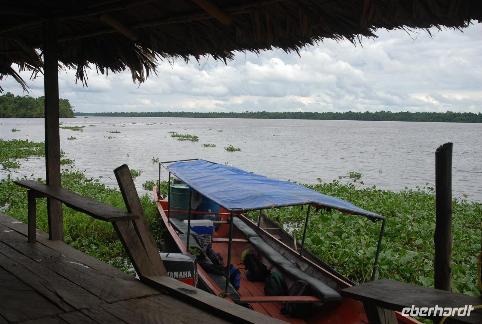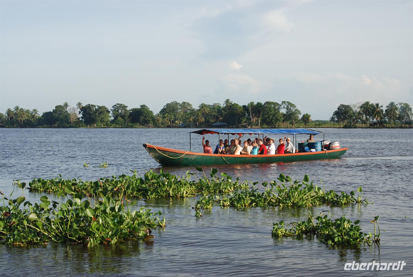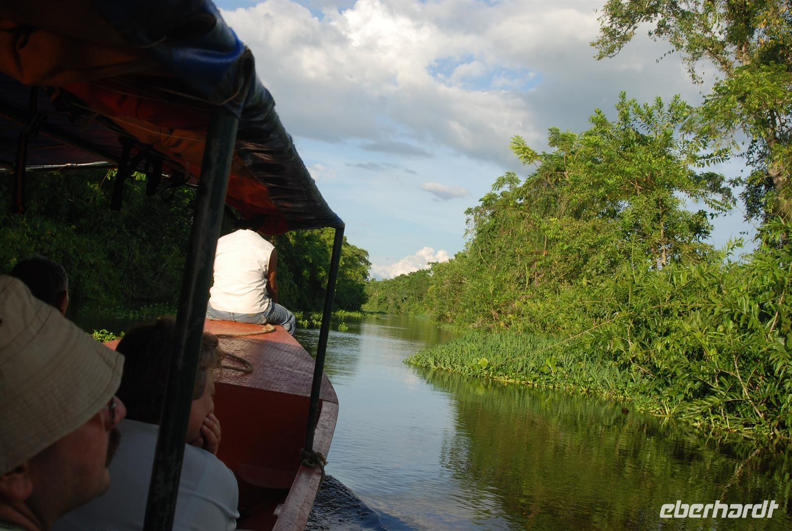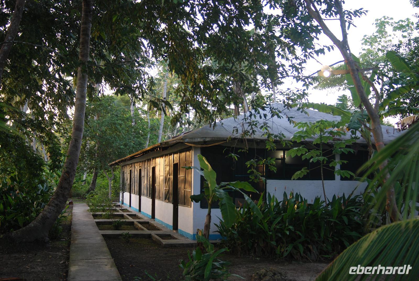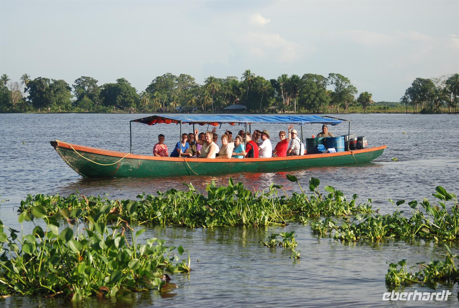Wir verlassen Ciudad Bolivar und reisen in Richtung Orinoco-Delta. Nach einigen Stopps und ca. vier Stunden Fahrt erreichen wir Puerto Boca de Uracoa. Hier steigen wir ins Motorboot mit Sonnendach um, unser Fortbewegungsmittel im Delta für die nächsten Tage. Das Campamento Ubanoco liegt circa eine Stunde vom Hafen entfernt und besteht aus kleinen Häusern mit je fünf Zimmern, die mit Betten und Moskitonetzen sowie einer „Dusche“ (Wasserstrahl aus der Wand) und Waschbecken ausgestattet sind.