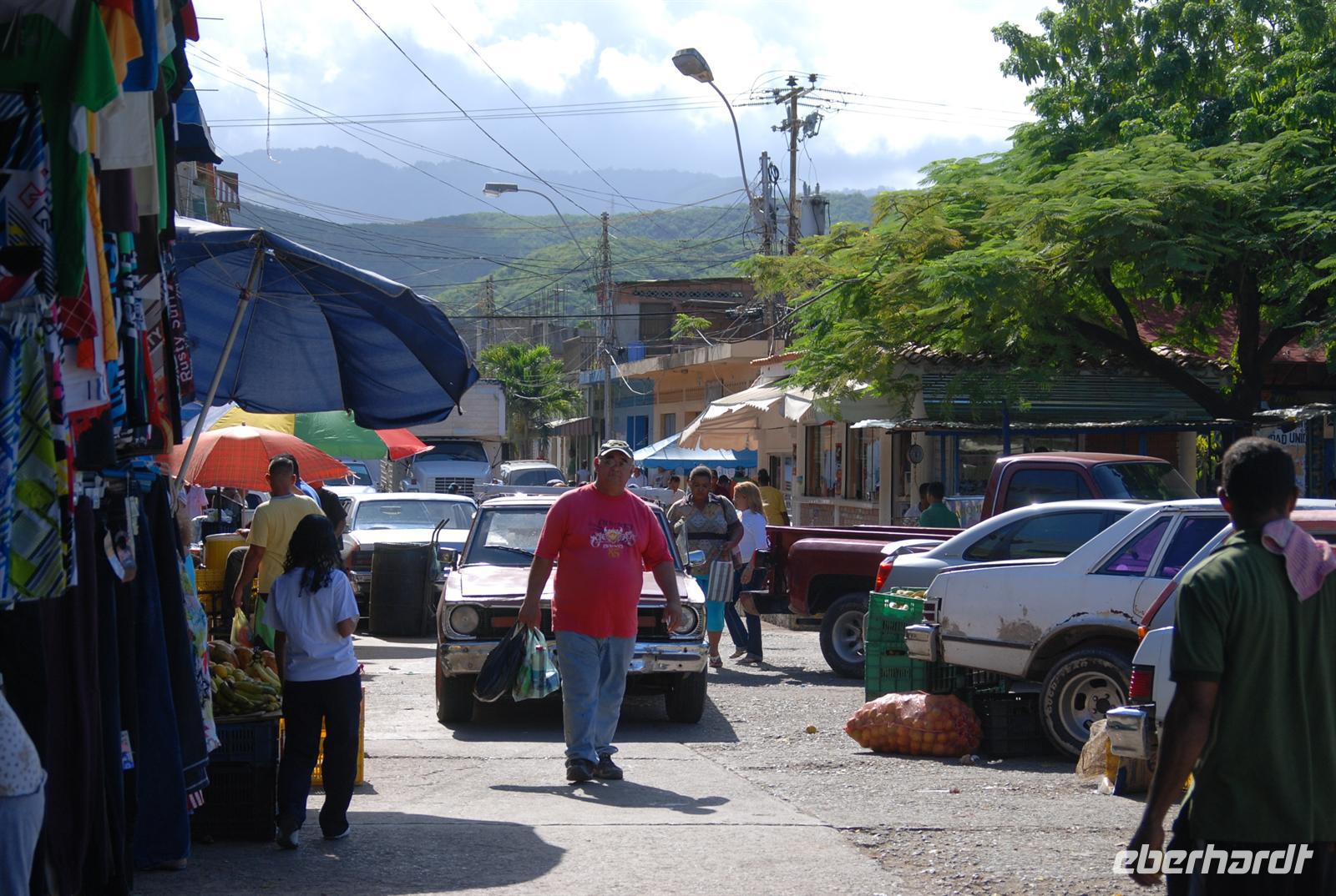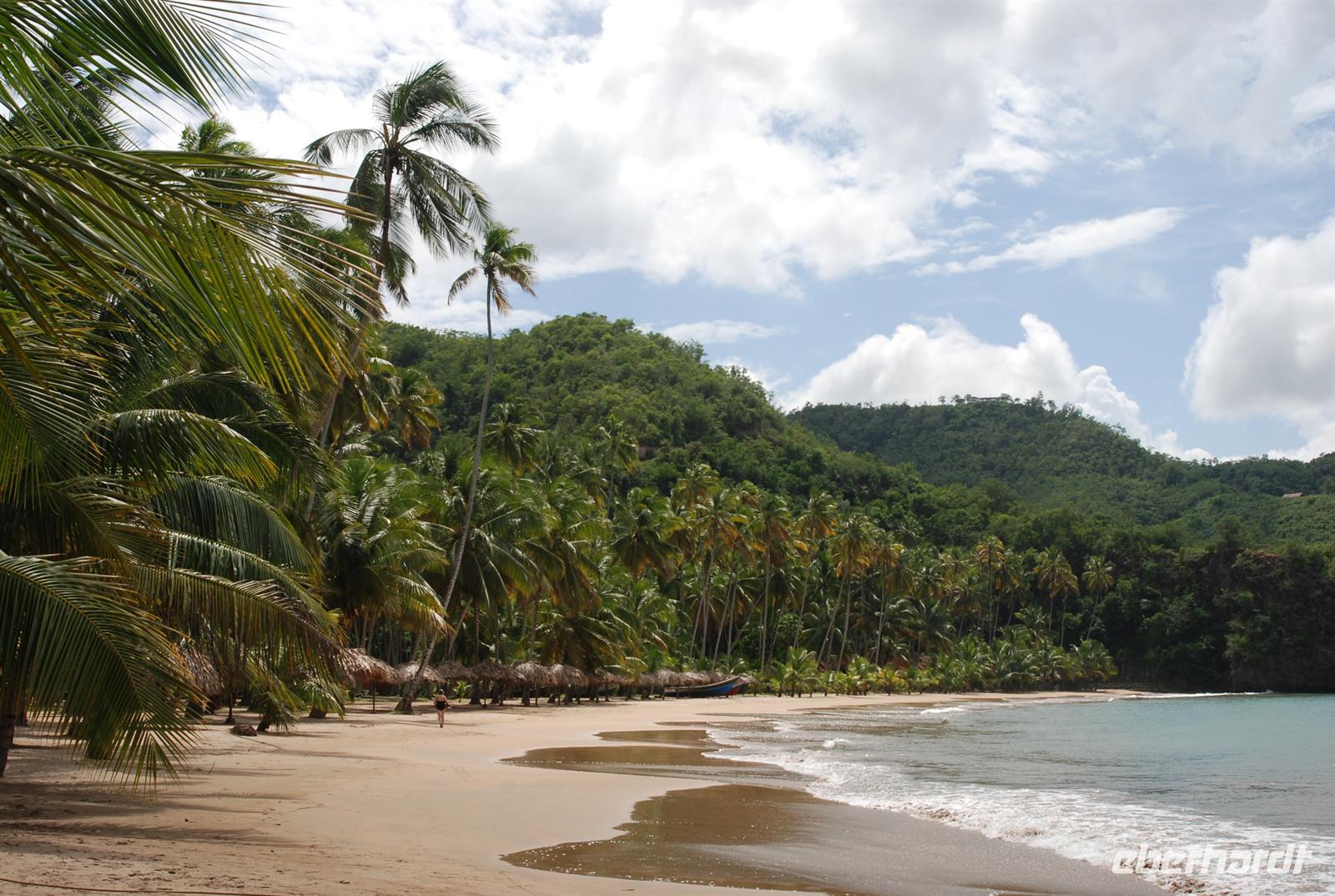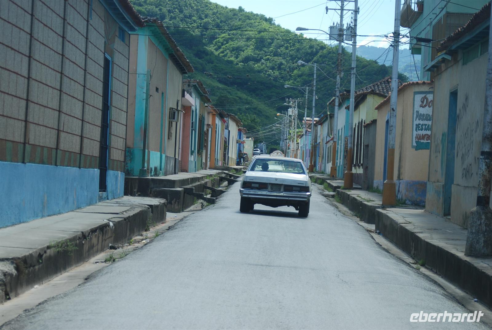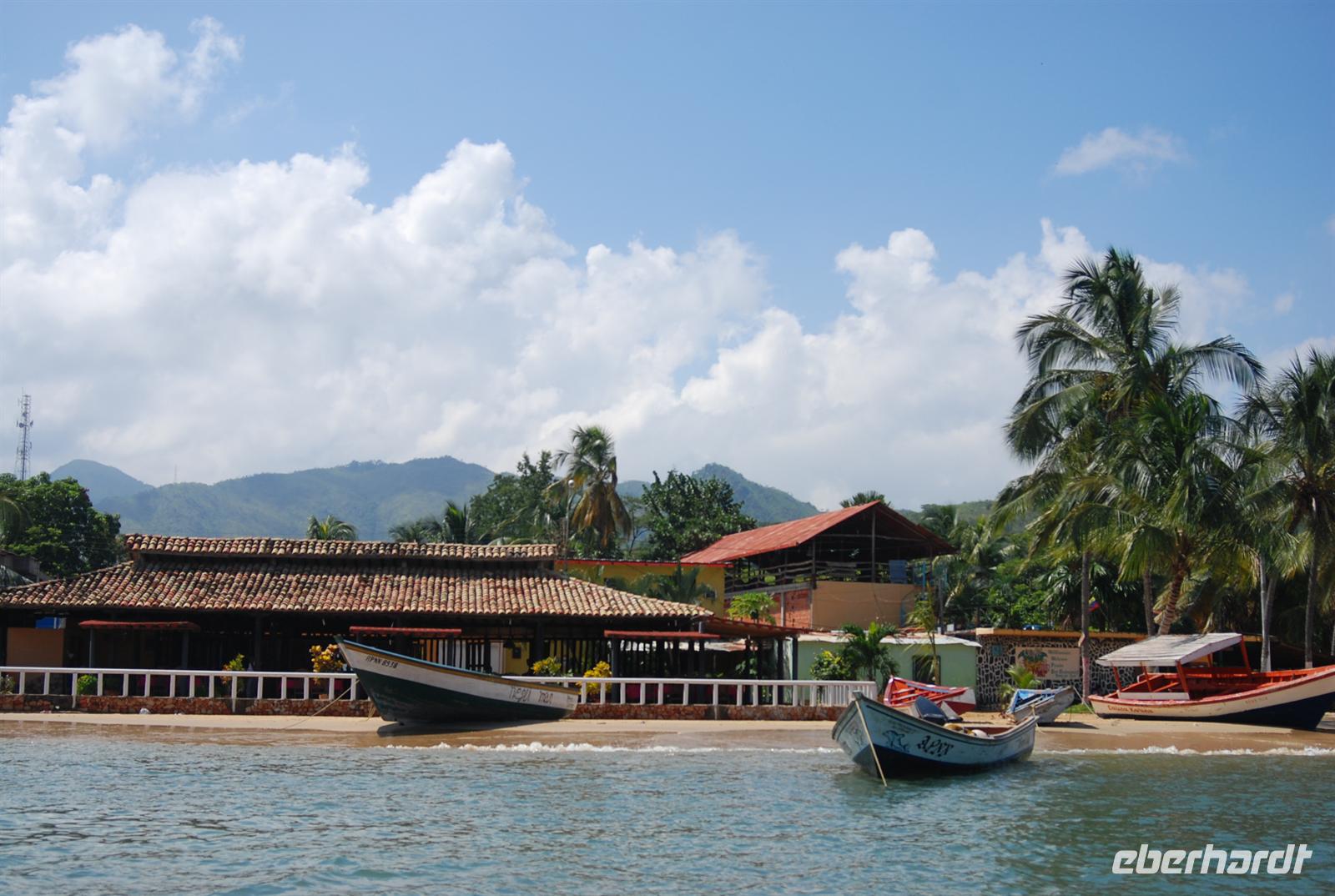 Heute beschließen wir eine kurzfristige Änderung noch vor dem Frühstück. Frau G. meldet sich mit dem Vorschlag gleich das gesamte Gepäck zum Frühstück mitzunehmen… gesagt, getan. :-) Wir kommen in den Genuss eines guten Frühstücks und fahren anschließend von Caripe durch die grünen Berge, vorbei am höchsten Gipfel des Küstengebirges Cerro Negro in Richtung Karibik. Gegen Mittag treffen wir in der kleinen Küstenstadt Rio Caribe ein, wo wir zum Mittagessen verweilen. Der Weg wird nun zunehmend kurvig und schwierig zu fahren. Aber bald erreichen wir nach einem kurzen Fußmarsch den Strand von Querepare.