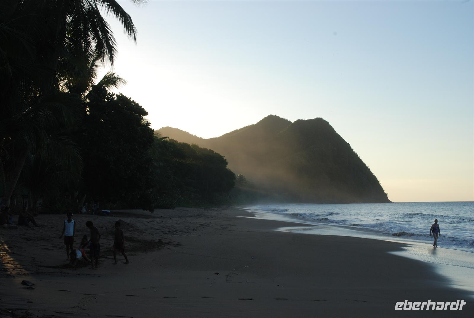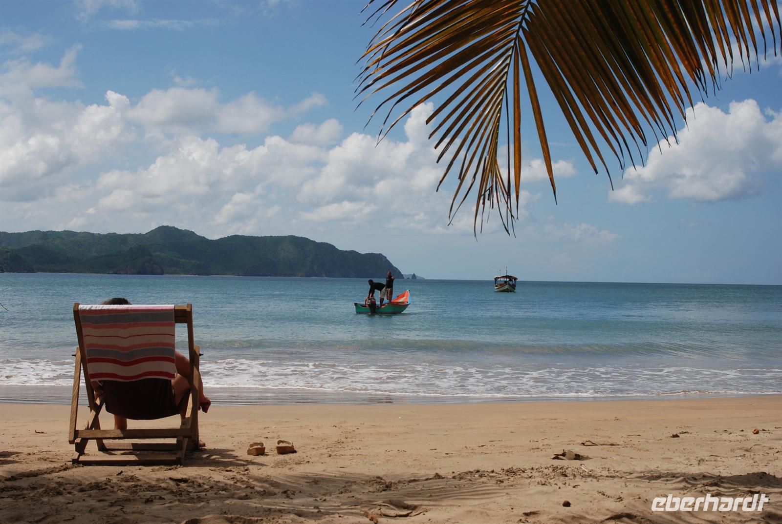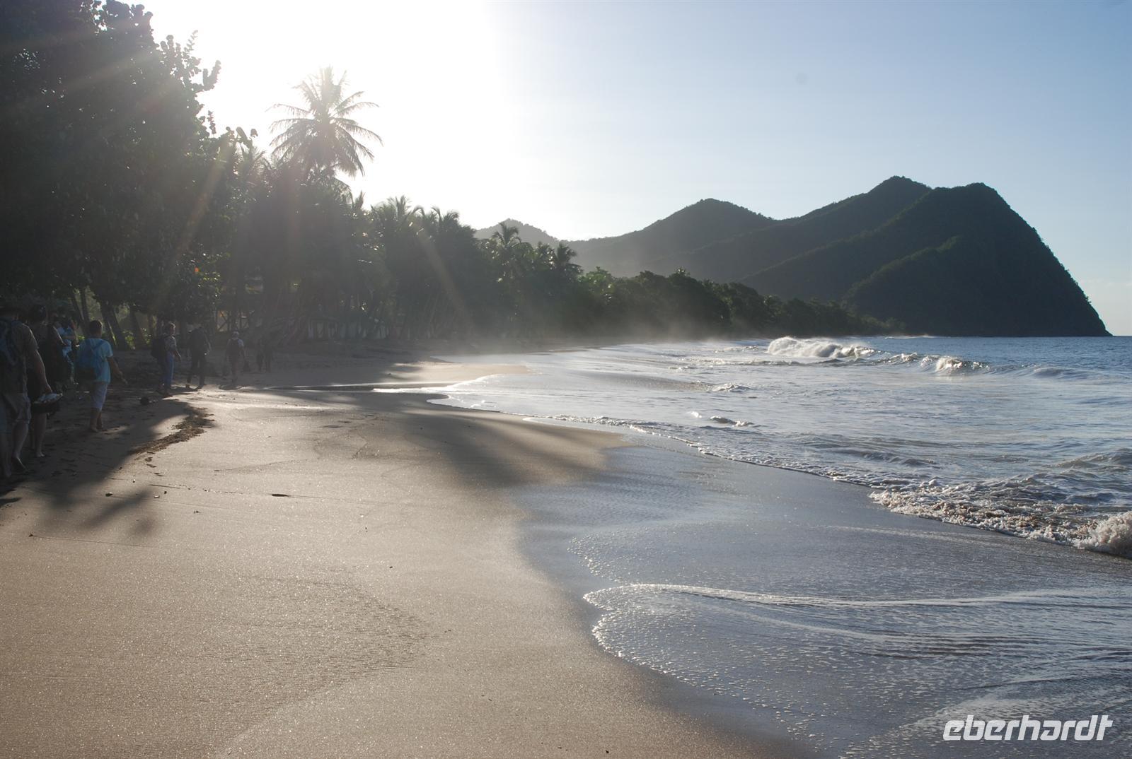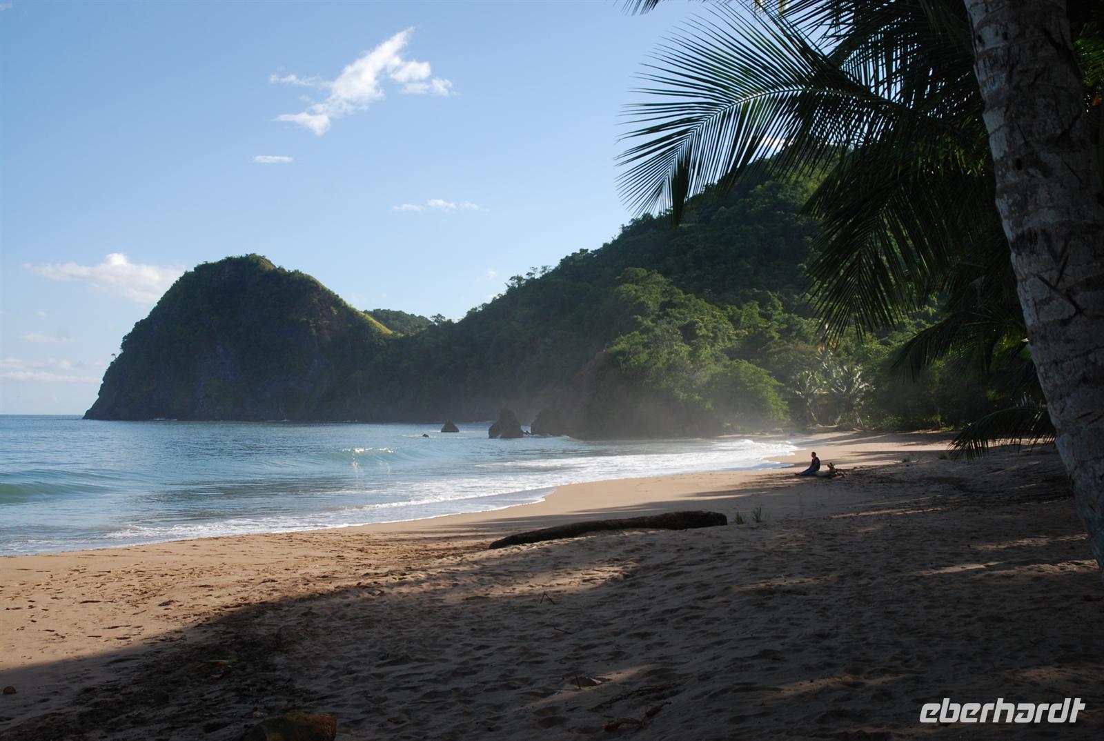 Heute beschließen wir eine kurzfristige Änderung noch vor dem Frühstück. Frau G. meldet sich mit dem Vorschlag gleich das gesamte Gepäck zum Frühstück mitzunehmen… gesagt, getan. :-) Wir kommen in den Genuss eines guten Frühstücks und fahren anschließend von Caripe durch die grünen Berge, vorbei am höchsten Gipfel des Küstengebirges Cerro Negro in Richtung Karibik. Gegen Mittag treffen wir in der kleinen Küstenstadt Rio Caribe ein, wo wir zum Mittagessen verweilen. Der Weg wird nun zunehmend kurvig und schwierig zu fahren. Aber bald erreichen wir nach einem kurzen Fußmarsch den Strand von Querepare.