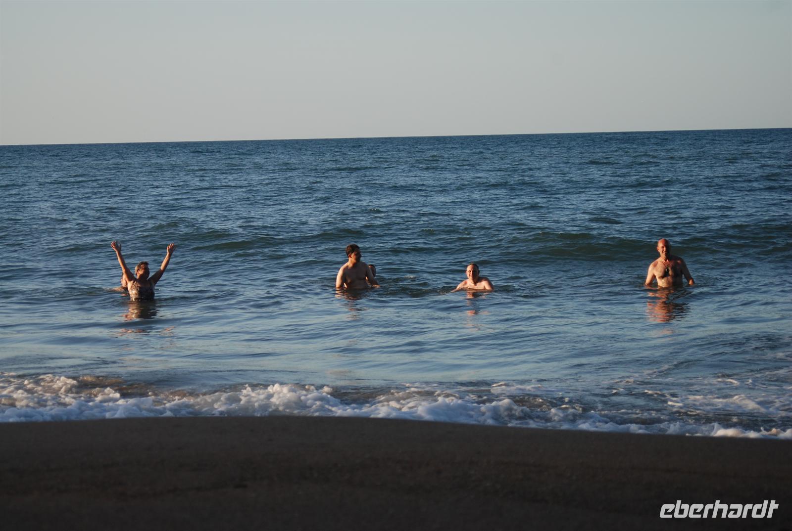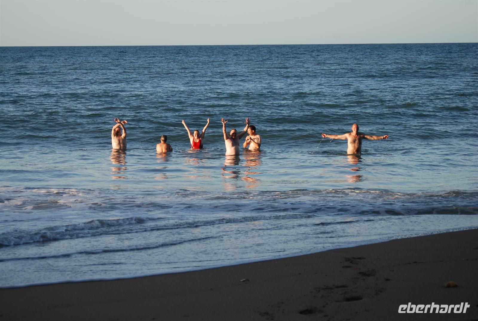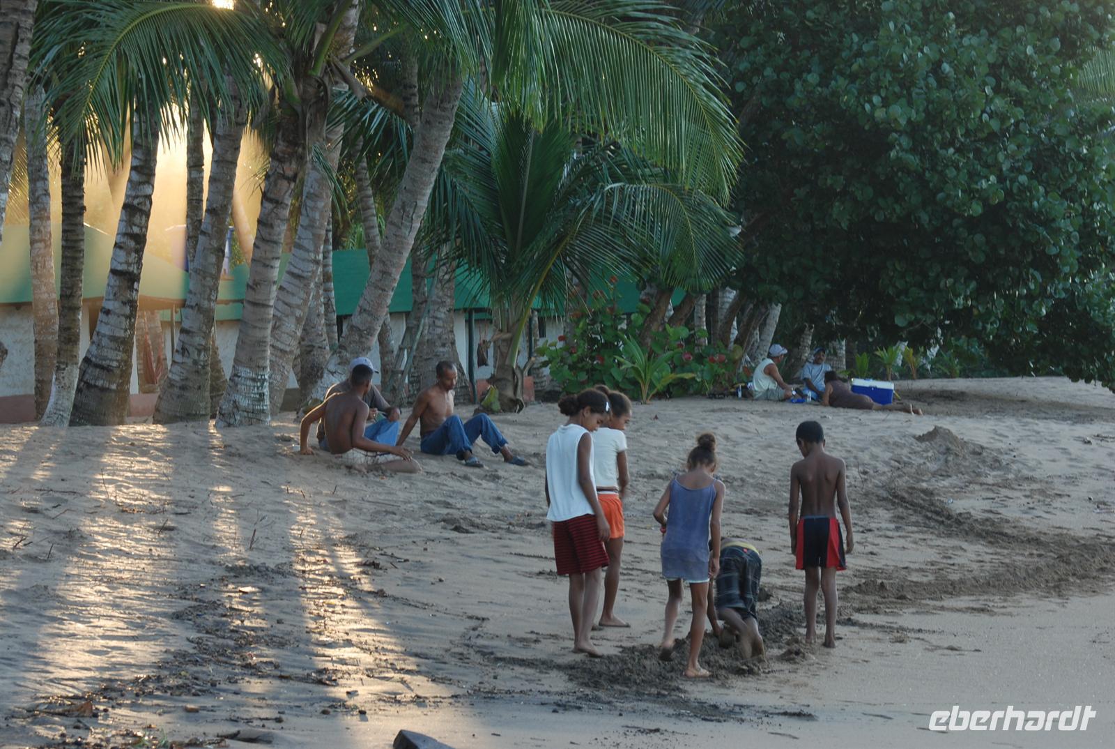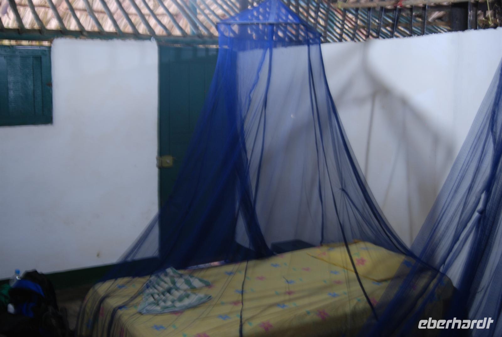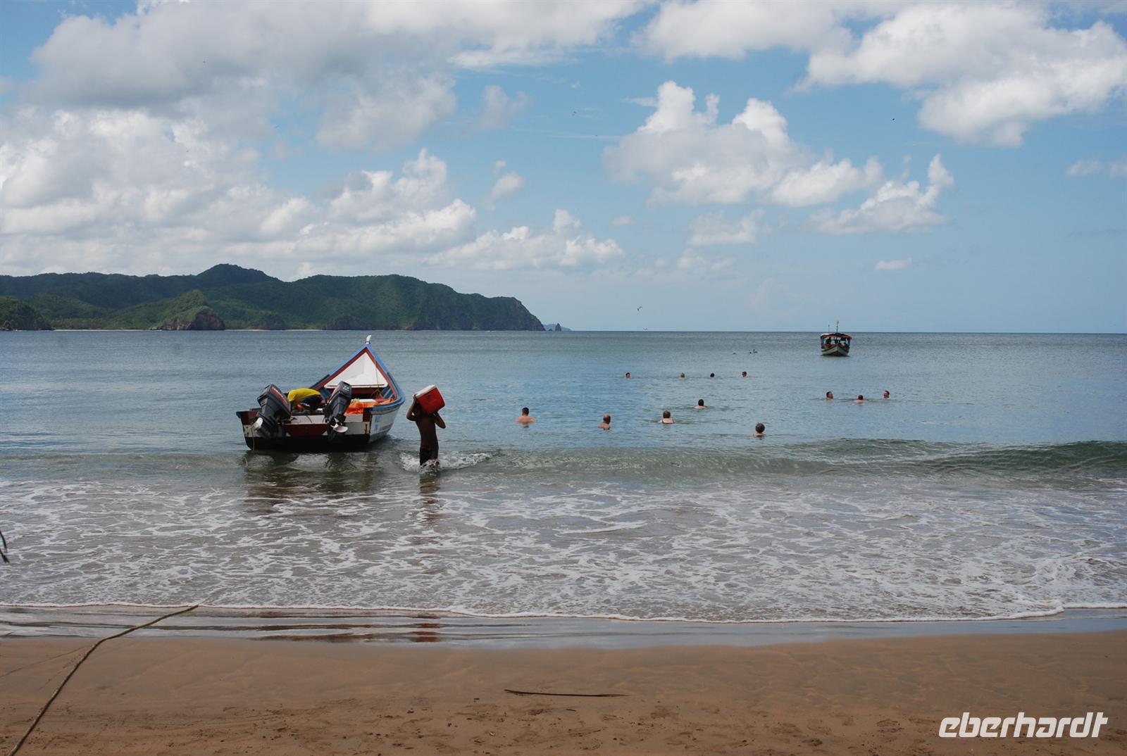 Hier erfrischen wir uns bei einem ersten, aufregenden Bad im karibischen Meer. Die Austattung der Zimmer kennen wir nun schon von unserem Camp im Orinoco-Delta. Alle kleinen und großen Schwierigkeiten (mit dem Schließen der Türen, mit Wasser und Strom) sind mit viel Geduld auch bald behoben. Die Unterkunft ist einfach, Bett mit Moskitonetz und das Wellenrauschen als Hintergrundmusik, aber wir werden damit belohnt, dass der Strand uns allein zur Verfügung steht. Nach dem Abendessen bleibt der Dorf-Elektriker und animiert uns mit seiner Band und der karibischen Musik zum tanzen.