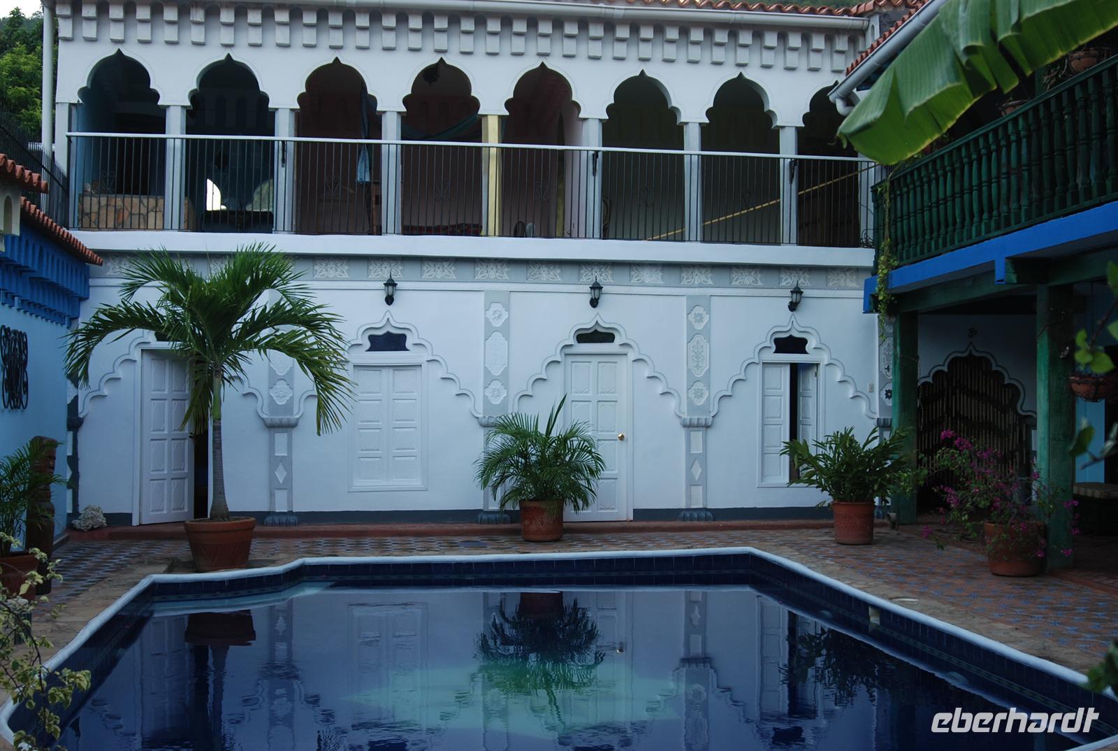 Am Morgen treffen wir uns zu einem zeitigen Bad im karibischen Meer. Anschließend frühstücken wir gemütlich mit Blick zum Meer und stärken uns für den etwas abenteuerlichen Einstieg ins Boot. Der Wind und somit der Wellengang sind sehr stark. Wir geben unser komplettes Gepäck zuerst an Bord und klettern dann nacheinander in Badesachen an Bord des Motorbootes. Nach 40 Minuten Fahrt erreichen wir Playa Medina und haben hier etwas Zeit zum Baden und Spazieren, bevor wir gegen 14 Uhr den Traumstrand verlassen. Unterwegs besuchen wir eine Kakaoplantage mit Museum und werden in die verschiedenen Etappen der Schokoladenherstellung eingeführt. Am Ende erhalten wir eine Kostprobe vom selbst gebrannten Schokoladenlikör. Wir übernachten im Hotel Shalimar, welches im orientalischen Stil gebaut wurde, in Rio Caribe.