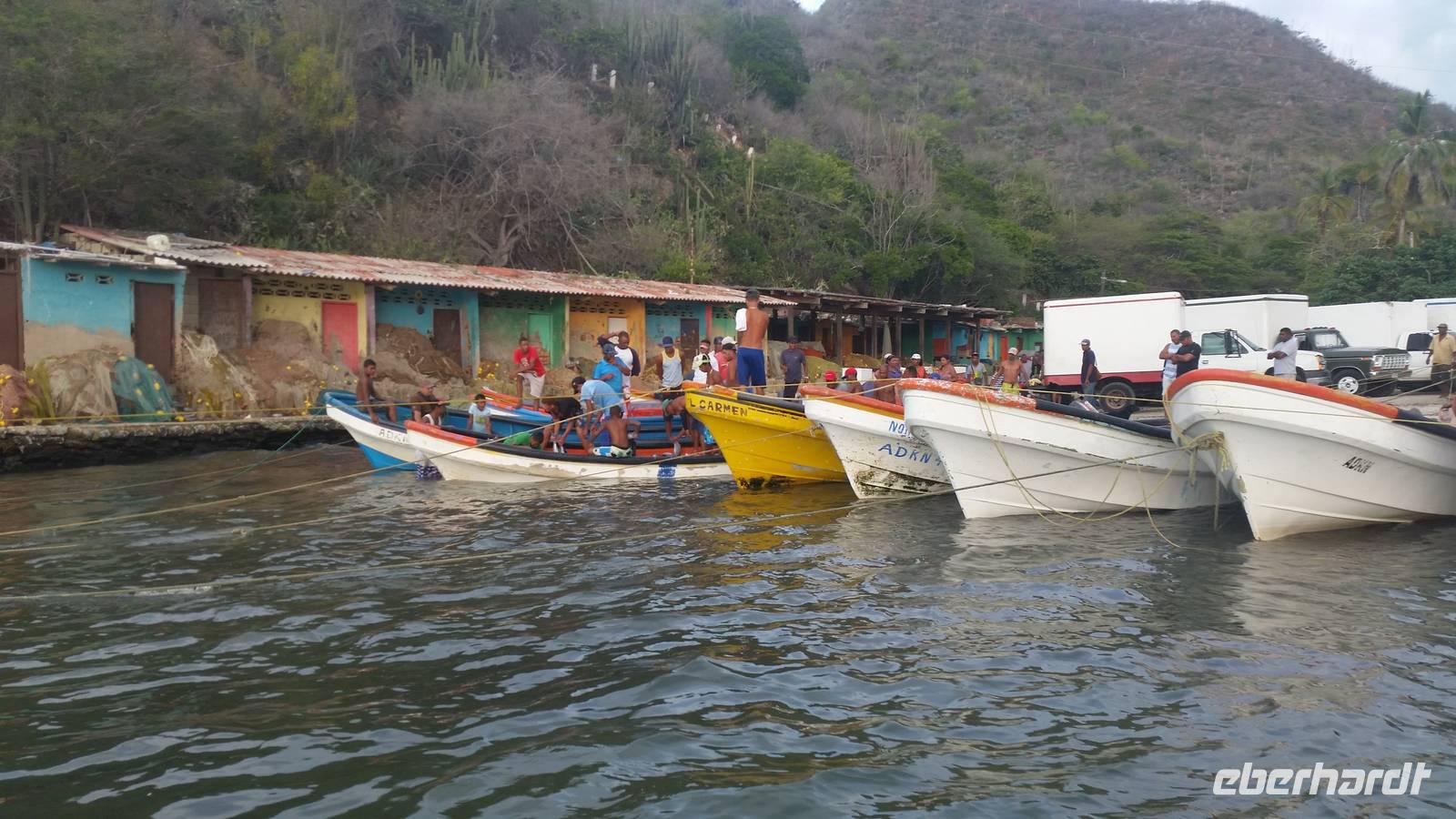 Der Bergpass am Nationalpark Henry Pittier voll mit Kurven war nicht einfach und wir hatten sogar einen kleinen Umfall mit einem roten Jeep. Es war dunkel und der alte Fahrer nahm eine Kurve mehr links als er sollte. Niemand machten nicht viel und am Ende Benjamin organisierte dass wir alles den Wagen hoch bringen und vom Bus weg entfernten. Am Ende waren die Schaden fast nichts aber trotzdem wollte der Fahrer noch nicht weg gehen. Benjamin gab ihm 2.500 Bolivar (ca 8 Euro) und alles war plötlzlich in Ordnung und wir konnten endlich weiter drunten bis Choroni fahren. In diesem urigem Fichscherort Choroni, welcher vom Küstengebirge eingerahmt wird, werden wir die nächste 3 Tage übernachten. Unsere örtliche Reiseleiterin Nae lud uns bei Ihr zum Essen ein. Es gab leckerem Fisch aber kein Bier. Kein Problem. Benji und Nae brachten schnell mit ihrem Motorrad eine Kiste volle Bier. Wieder in unserem Hostal Casa Grande mit Pool lassen einige von uns noch den langem Tag ausklingen.