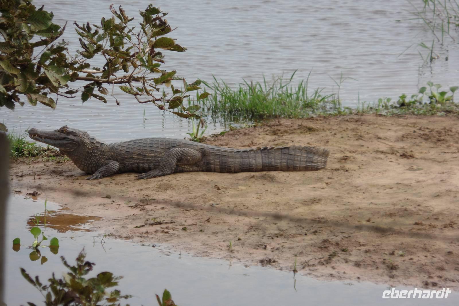 Wir haben gut geschlafen mitte in der Natur und wie auf dem Orinoco, heute der Wecker sind alle mögliche Vögel, die auf dem Bäume, die ganze Nacht in Ruhe waren. Heute ist auch ein weiterer Höhepunkt der Reise mit der Aufenthalt auf dieser Farm in den Llanos. Vormittags unternahmen wir eine Jeep-Safari und sahen unzählige Vögel, Kaimane, Leguane u.a. Die Farm und ihre Umgebung ist Lebensraum von mehr als 350 verschiedenen Vogelarten, Anakondas, Kaimane, Leguane, Affen, Flussdelfine, Wasserschweine, u. v. m. , die wir vormittags wie gesagt per Jeep oder Nachmittags bei einer Safari per Boot beobachten werden. Wir hatten den ganzen Tag Zeit, die besondere Flora und Fauna der Region zu erkunden. Nach der Tierbeobachtung mit Jeep-Safari am Vormittags kehrten wir im Camp zurück zum Mittagsessen und ein kleines Nickerchen.