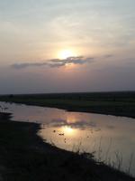 Nach der Nacht müssen wir unser lustiges Beisammensein erst einmal in lustiger Runde auswerten. Nach dem Frühstück probieren wir die Gummistiefel aus dem Camp und schon geht es los zu unserer Tagesexkursion mit dem Boot. Zunächst fahren wir in einen Seitenarm um Tiere zu sehen. Leider erfolglos. Also geht es wieder auf den Hauptstrom und schon haben wir mehr Glück. Wir sehen zahlreiche Vögel, die sich auch brav fotografieren lassen. Natürlich kommen wir auch an einigen Siedlungen inklusive Schulen vorbei. Da heute aber Samstag ist, haben diese genauso geschlossen wie bei uns in Deutschland. Die Menschen winken uns freundlich zu und wir beobachten Kinder, die im Wasser zusammen spielen. Dank der Ebbe kein Problem. An einer Siedlung halten wir auch, um unseren Guide für den Dschungelspaziergang abzuholen. Leider ist er noch nicht da. So nutzen einige Gäste aus meiner Gruppe die Gelegenheit, Souvenirs zu kaufen, die die Kinder der Siedlung anbieten. Da unser Guide immer noch nicht da ist, entschließen wir uns, weiterzufahren und halten einige Minuten später an einer weiteren Siedlung, wo wir auch aussteigen und ein wenig herum laufen können. Die Bewohner beobachten uns genauso wie wir sie. Dann endlich kommt unser Guide angefahren und weiter geht es. Nach einiger Zeit halten wir und steigen erneut aus dem Boot - für eine Dschungelwanderung. Durch sumpfiges Gebiet kämpfen wir uns voran und er erzählt uns von den Bäumen und deren Anwendungen. Nachdem unsere Anne kurz verschwunden war;-), ging es weiter voran. Der Guide zeigt uns, wie er aus Ästen eine Steige baut, die auch menschliches Gewicht trägt. Damit klettert er dann einen Baum hinauf. Zurück auf unserem schönen Boot bringen wir den Guide zurück zu seiner Lodge und wir fahren weiter zur Dschungelraststätte, wo wir unsere Mittagsrast einlegen. Von der Lodge haben wir leckeren Kartoffel-Hünchnensalat mit, inklusive Cola und Wasser. Danach geht es nochmal in einen weiteren Seitenarm hinein, der viel von Grünpflanzen bedeckt ist. Leider ist der Beobachtungserfolg nicht so groß wie am Vormittag aber dafür können wir nun Piranhas angeln. Unser Guide fängt sogar einen und zeigt uns die Zähne dieses kleinen Tierchens. Zurück Richtung Camp beobachten wir noch einen wunderschönen Sonnenuntergang und sehen die roten Ibise. Gegen 18:00 Uhr schließlich erreichen wir wieder unser Camp. Die beiden Bootsjungen bieten uns an, nach dem Abendessen mit uns noch einmal hinaus zu fahren um nach Caimanen Ausschau zu halten. Dankbar nehmen wir das Angebot an. Leider jedoch ohne großen Erfolg - dennoch hat es uns viel Spaß gemacht.