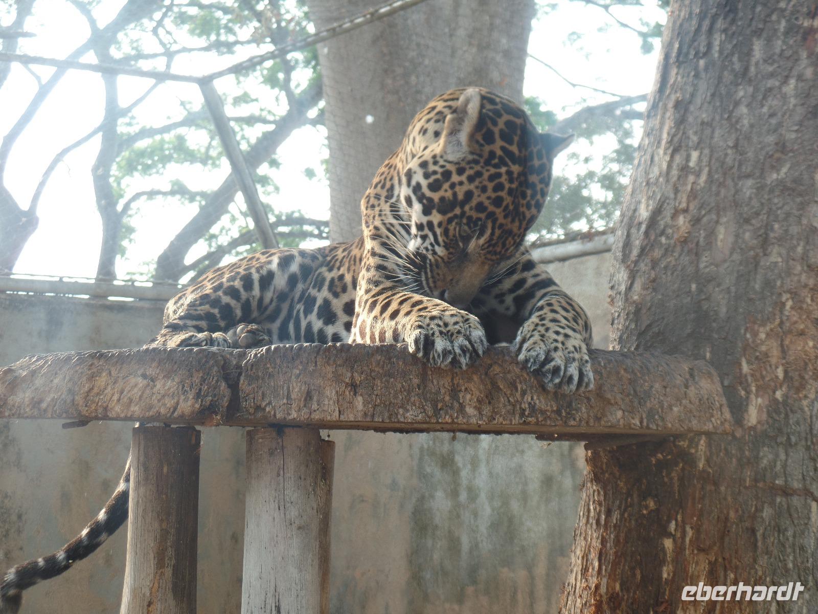 Wir verlassen die Farm "El Cedral" und fahren erneut in Richtung Barinas. Unser heutiges Ziel ist die Posada Dona Barbara. Rund eine Stunde vor Barinas biegen wir links ab um unsere Unterkunft zu erreichen. Leider haben wir unsere Rechnung ohne die Venezulaner gemacht. Diese haben nämlich beschlossen, heute in La Luz zu streiken. Darüber informiert uns eine Polizeiwoche. Das bedeutet für uns, umzukehren und einen Umweg mit über eine Stunde Zeitverlust in Kauf zu nehmen. Am zeitigen Nachmittag schließlich erreichen wir die Posada und stärken uns erstmal beim Mittagessen. Als alle Zimmer bezogen sind, erkunden wir das Gelände der Posada. Neben einem Whirlpool gibt es hier auch einen See mit Tapieren und Wasserschweinen, den man mit Tretbooten erkunden kann. Hinter der Posada befinden sich einige Gehege, in denen Reiher, Affen, ein Jaguar, Kaimane und drei Anacondas leben. Extra für uns holt der Inhaber eine Ente und verfüttert diese an eine der Boas. So erleben wir hautnah mit, wie sich der Kiefer einer Würgeschlange so öffnen kann, dass es solch ein großes Lebewesen verschlingen kann....irgendwie unheimlich. Wer nun immer noch nicht genug von der Tierwelt hat, begibt sich mit unserem Nelson und dem Chef der Farm auf eine Jeep- und Bootstour auf dem Gelände der Farm. Meine Gäste kommen sehr begeistert von diesem Ausflug zurück und berichten, dass dies einer der besten Ausflüge auf der Reise gewesen sei.