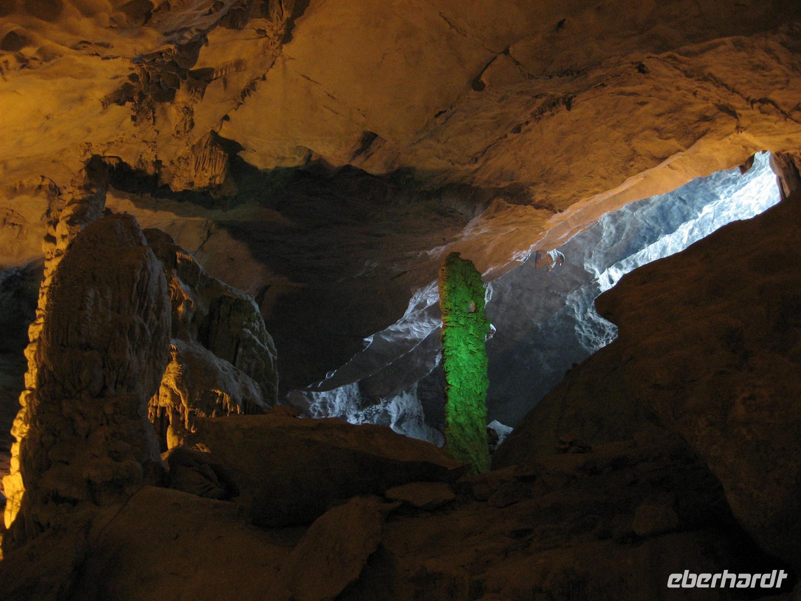 Nach einem leichten Frühstück am Morgen besuchen wir eine der Karsthöhlen in der Ha Long Bucht. Bei der Hang Song Sut Höhle handelt es sich um eine der größten Höhlen. Zahlreiche Stalaktiten und Stalakmiten sind zu sehen, bei einigen kann man z. B.