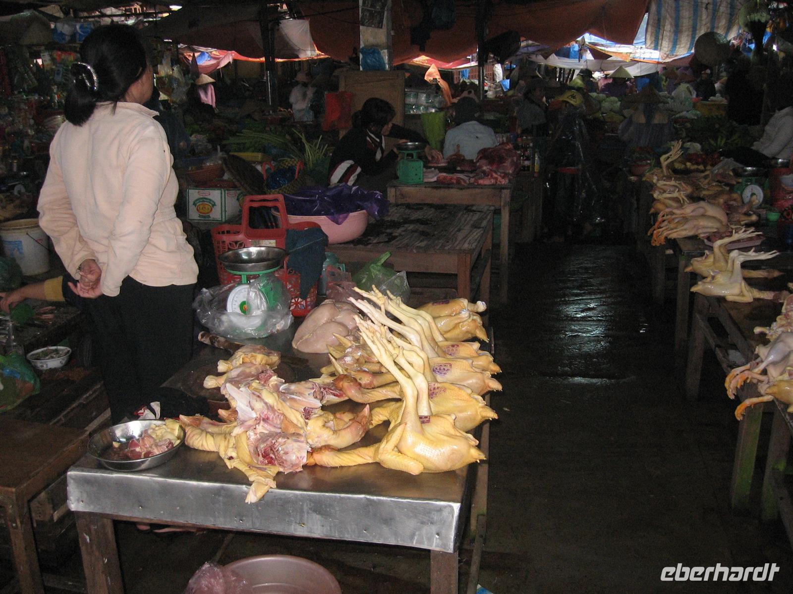 Zum Abschluss des Tages machen wir noch einen Rundgang über den Hauptmarkt der Stadt, den Dam-Markt. Zum Abendessen bleiben wir heute im Hotel, sind aber mit dem uns gebotenen Essen nicht so glücklich. Man versucht europäisch zu kochen, kann es aber nicht. Wir hätten lieber vietnamesisch zu Abend gegessen.