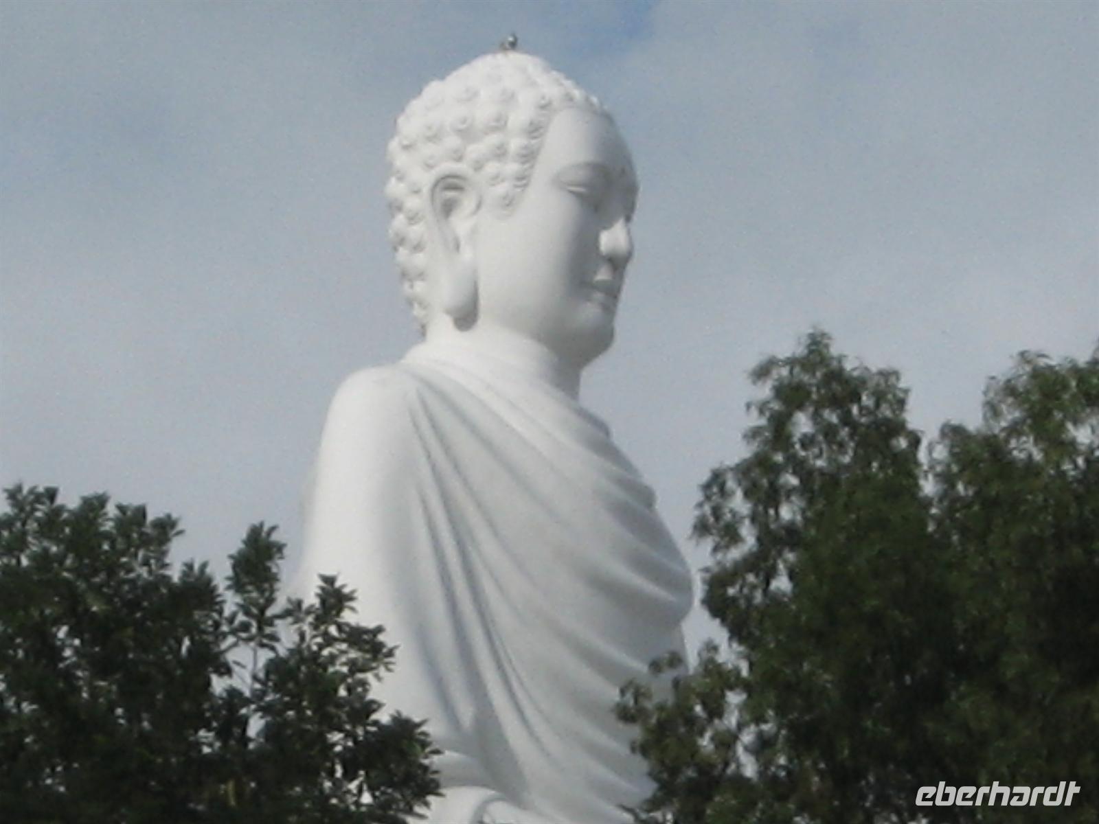 Wir sind pünktlich am Flughafen von Da Nang, er ist uns ja schon gut bekannt. Fast pünktlich starten wir nach Nha Trang mit einer Propeller-Maschine, welche ganz neu ist. Gegen Mittag kommen wir auf dem 60 km außerhalb der Stadt gelegen Flughafen an. Wir fahren zuerst ins Hotel, unsere Zimmer sind schon bereit. Wer möchte kann mit zum Mittagessen kommen. Danach beginnen wir unsere Besichtigungen. Die Long Son Pagode ist durch ihre weiße Buddha Statue sehr bekannt. Diese wurde 1963 als Symbol der Buddhisten gegen das damals herrschende Diem-Regime errichtet. Eine der Heldenfiguren war der Mönch Thich Quang Duc, welcher mit einer Selbstverbrennung gegen die Diskriminierung der Buddhisten protestierte.