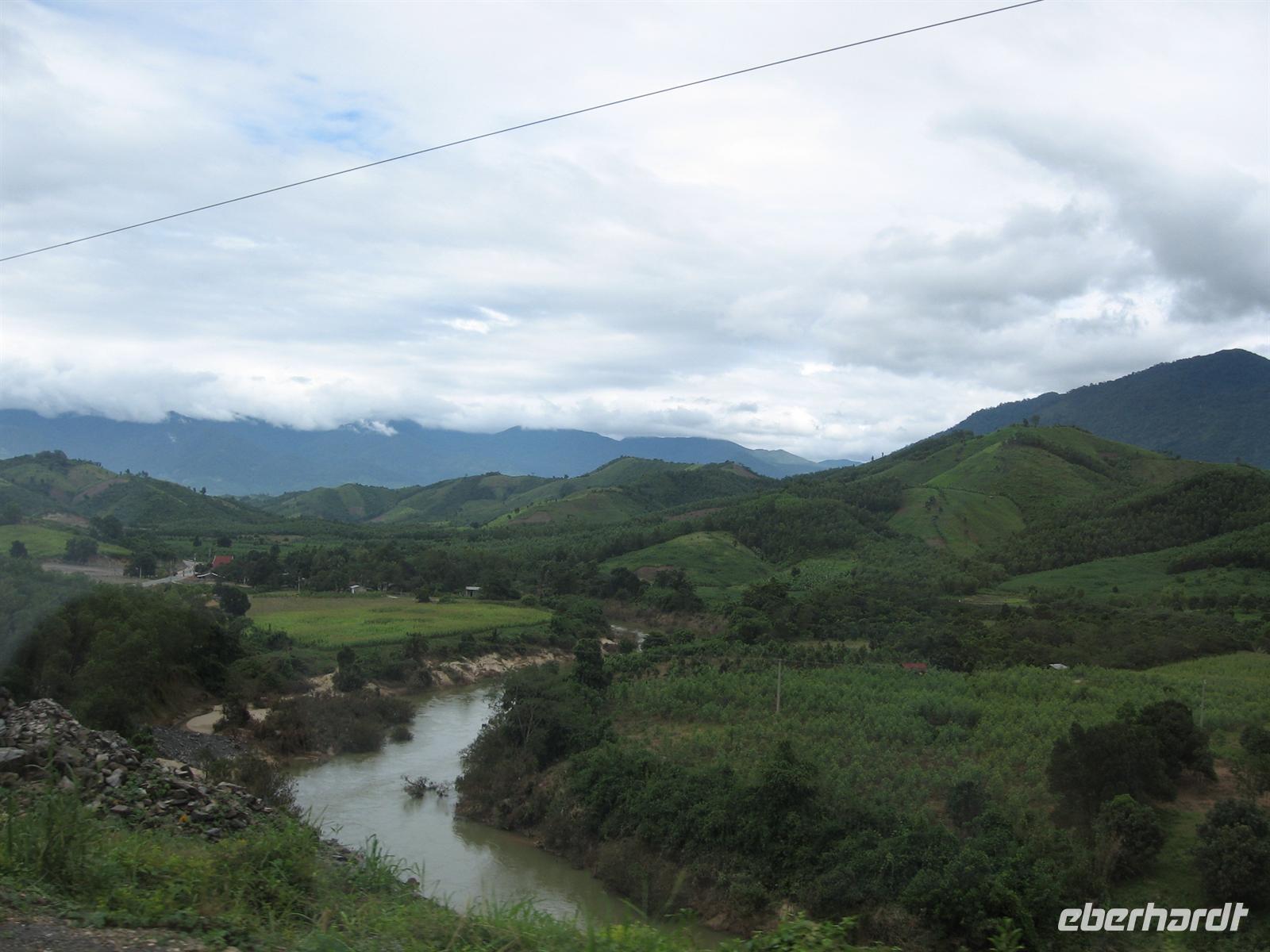 Heute fahren wir ins Gebirge nach Da Lat. Der Ort ist so etwas wie der Garten von Vietnam. In seiner Umgebung gibt es unzählige Plantagen wo Gemüse und Obst angebaut wird, wo Blumen gezüchtet werden. Beides wird in ganz Vietnam gehandelt und über den Flughafen von Saigon auch exportiert. Aber noch sind wir nicht da, 140 Kilometer haben wir zurück zu legen. Wir fahren eine neue Straße entlang, die sich in großen Teilen als wenig neu erweist und an der auch noch gebaut wird. „Genosse Teer war noch nicht da“ sagte unser Reiseleiter Ot. Um uns herum wird die Landschaft bergiger und grüner. Später kommen fantastische Ausblick auf Täler und Berge dazu. Unterwegs machen wir einmal Halt in einem kleinen Dorf. Wie immer sind es die Kinder, welche am wenigsten Scheu vor den Fremden haben. Sie strahlen, trotz ihres einfachen und vielleicht manchmal auch kargen Lebens, Freude aus. Je mehr wir uns Da Lat nähern, je mehr Kaffeeplantagen sehen wir entlang der Straßen. Wir machen wieder einen Stopp, sehen uns die Kaffeesträucher an und genießen gleich auf der anderen Straßenseite einen Kaffee in einem typischen kleinen Restaurant. Der Kaffee ist ausgezeichnet und die Wirtin bietet ihn auch zum kaufen an, die Mischung stellt sie selbst zusammen. Der Preis ist sehr attraktiv, 110000 VND für ein Kilogramm.