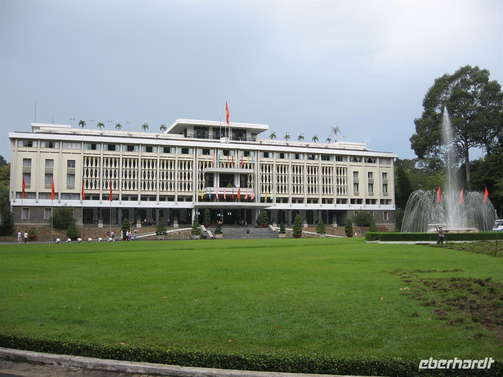 Nach der Besichtigung fahren wir zurück in das Herz der acht Millionen Metropole. Zuerst machen wir eine kleine Mittagspause, welche sich durch das nicht vorhandene System der Bedienung allerdings etwas hinzieht. Ihr Motto ist, wer zuletzt kommt bekommt zuerst etwas zu essen. Ganz in der Nähe haben wir dann den ehemaligen Präsidentenpalast besucht. Gebaut in einer sehr ansprechenden Architektur Mitte der sechziger Jahre, diente er bis April 1975 dem Präsidenten der Republik Vietnam als Sitz.