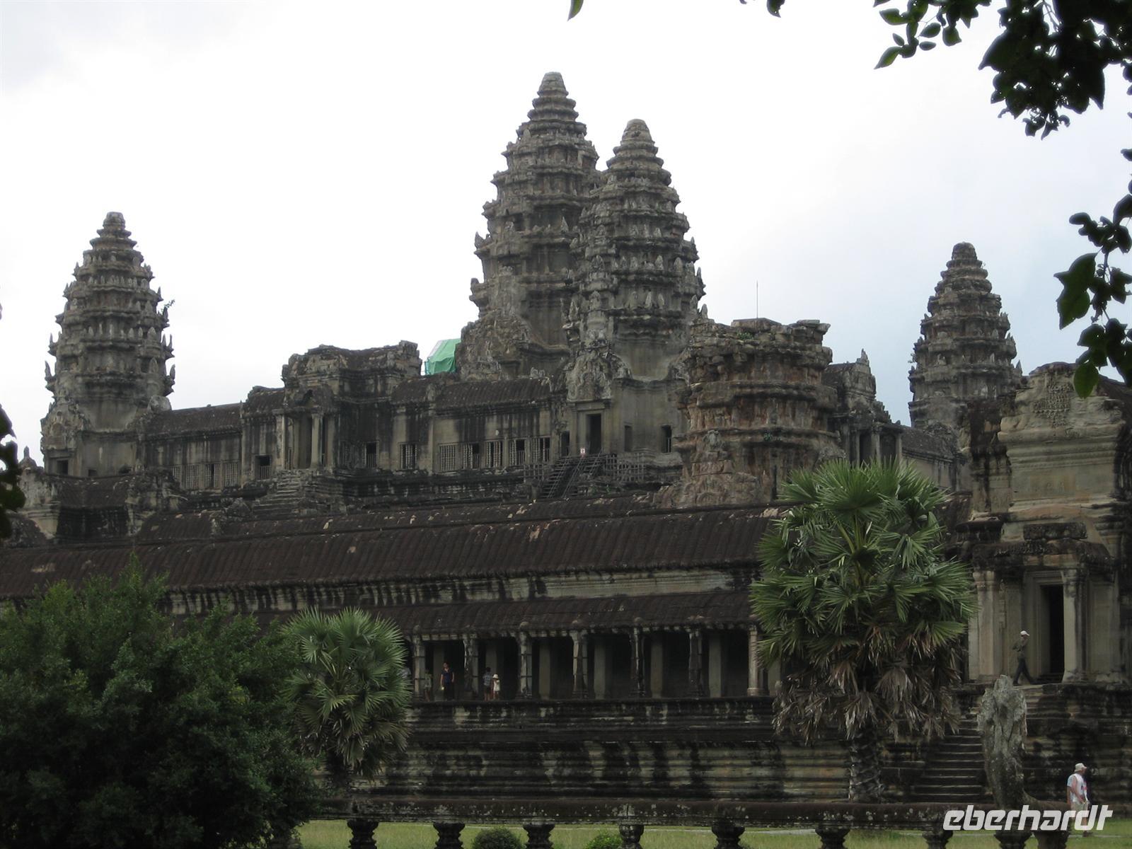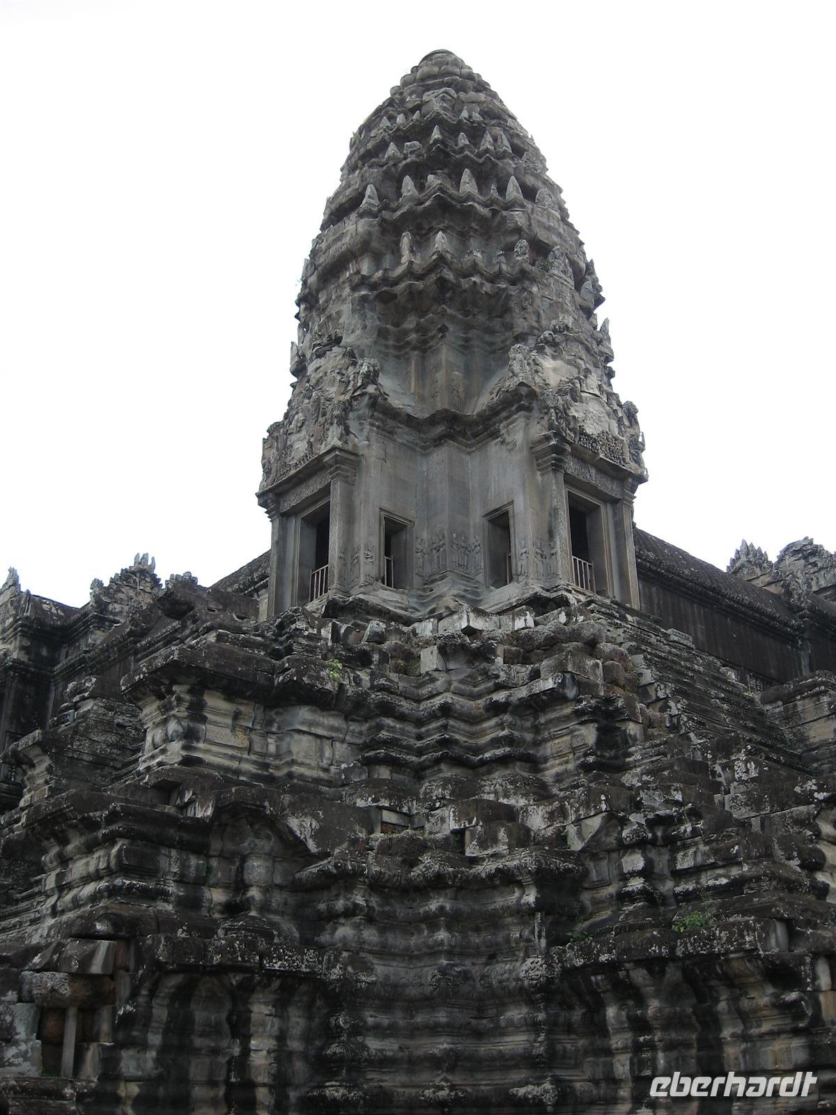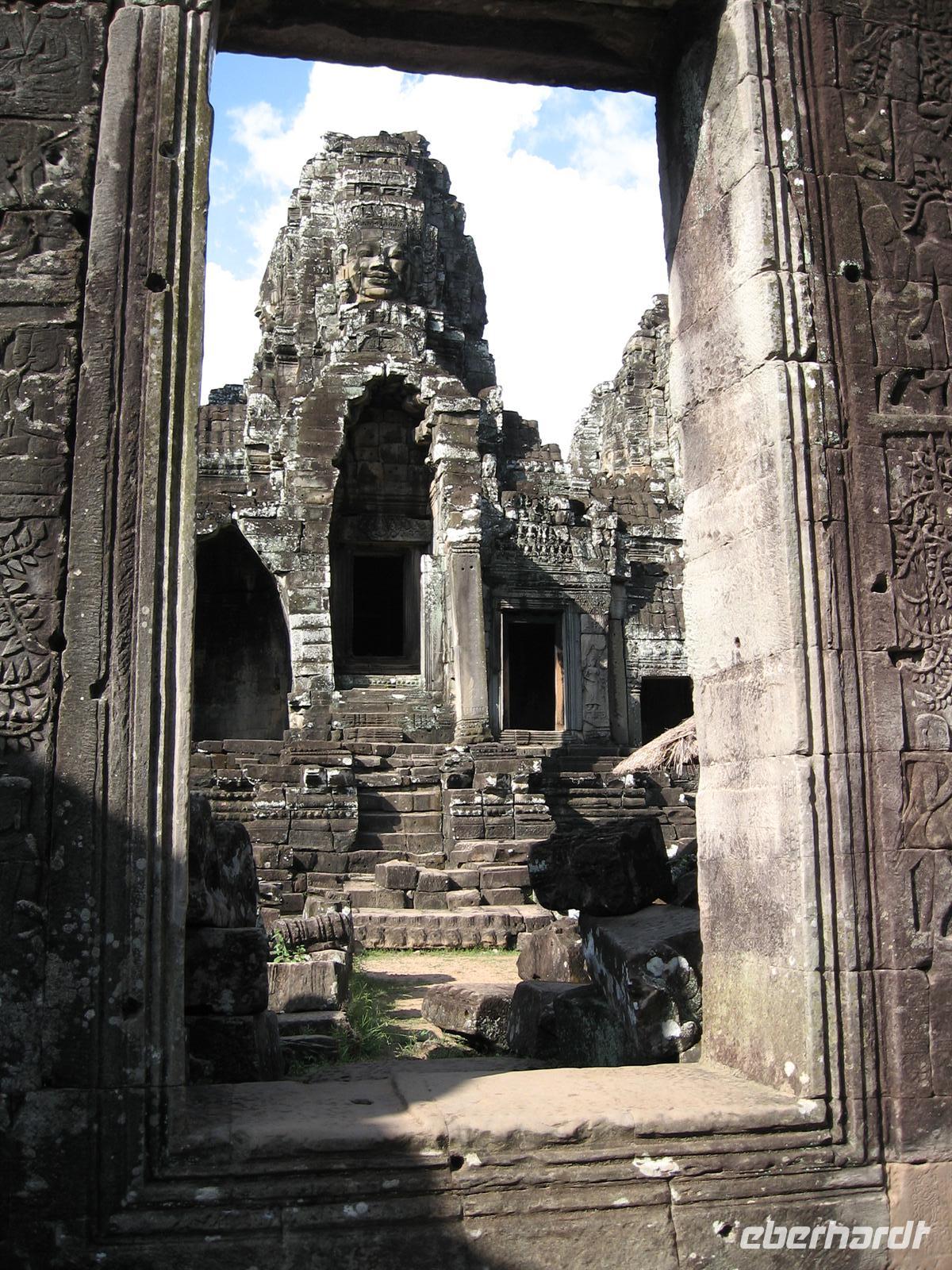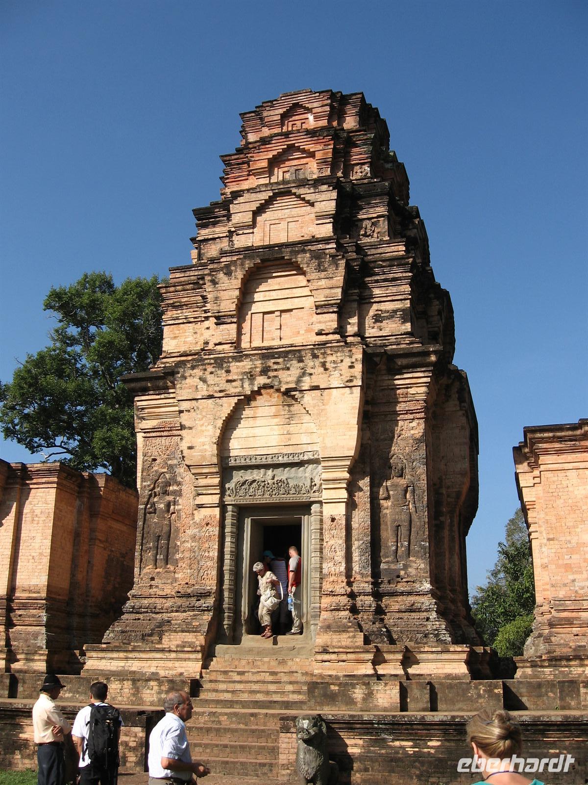 das sich eine Geschichte erzählen lässt. Diese für uns fremde Götterwelt lässt sich dadurch etwas besser erfassen. Anschließend gehen wir auf die nächste Galerie und stehen in einem Hofraum. Vor uns ist jetzt das Zentralheiligtum mit seinen markanten Türmen. Hinaufgehen ist auf Grund von Instandsetzungsarbeiten zur Zeit nicht möglich. Langsam begeben wir uns wieder nach unten und gehen dann langsam wieder zurück zum Haupteingang. Immer mal wieder einen Blick zurück nehmend verlassen wir dieses gewaltige Zeugnis aus dem 12. Jh.