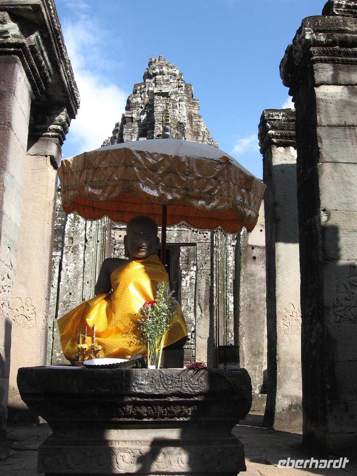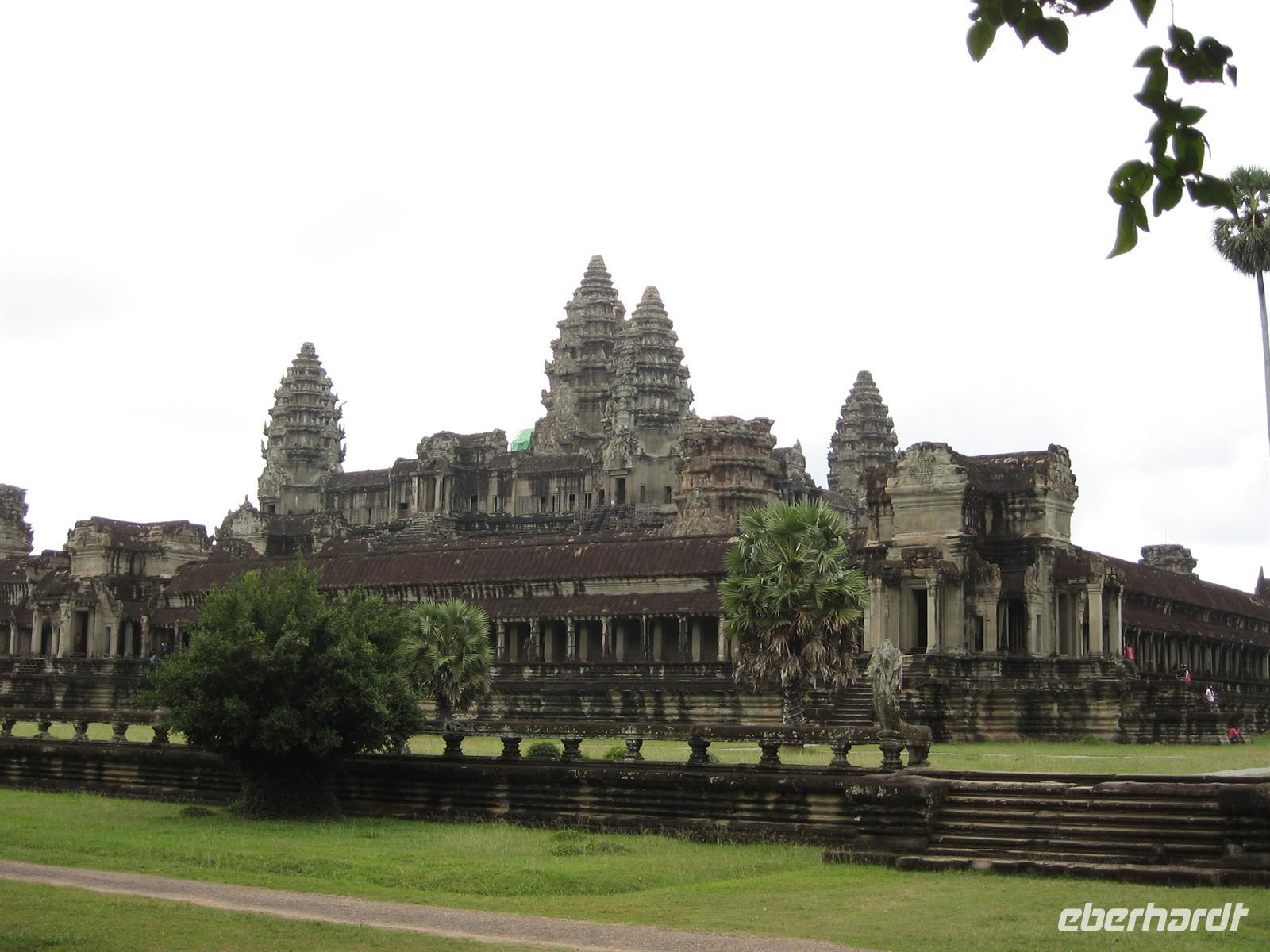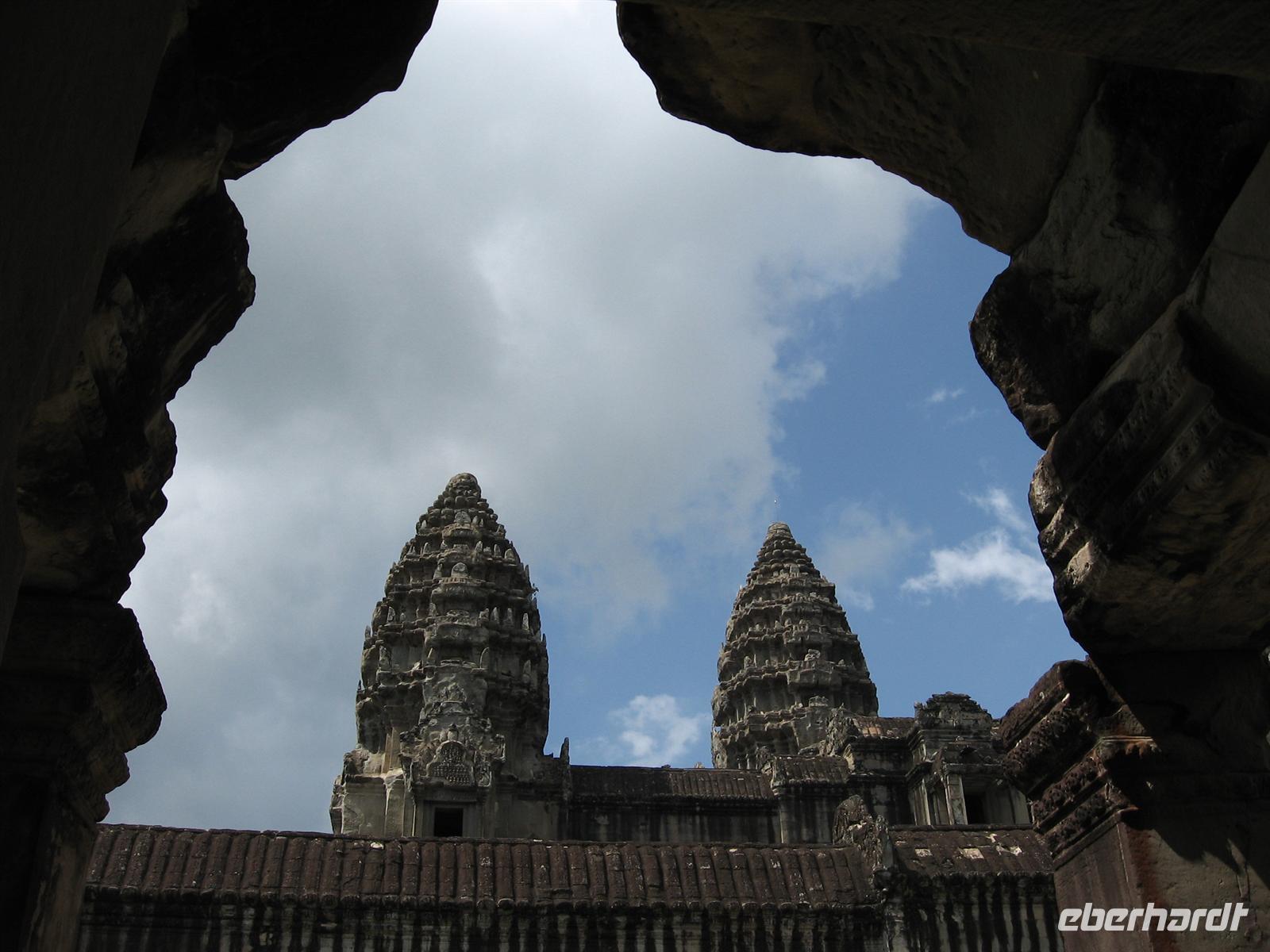das sich eine Geschichte erzählen lässt. Diese für uns fremde Götterwelt lässt sich dadurch etwas besser erfassen. Anschließend gehen wir auf die nächste Galerie und stehen in einem Hofraum. Vor uns ist jetzt das Zentralheiligtum mit seinen markanten Türmen. Hinaufgehen ist auf Grund von Instandsetzungsarbeiten zur Zeit nicht möglich. Langsam begeben wir uns wieder nach unten und gehen dann langsam wieder zurück zum Haupteingang. Immer mal wieder einen Blick zurück nehmend verlassen wir dieses gewaltige Zeugnis aus dem 12. Jh.