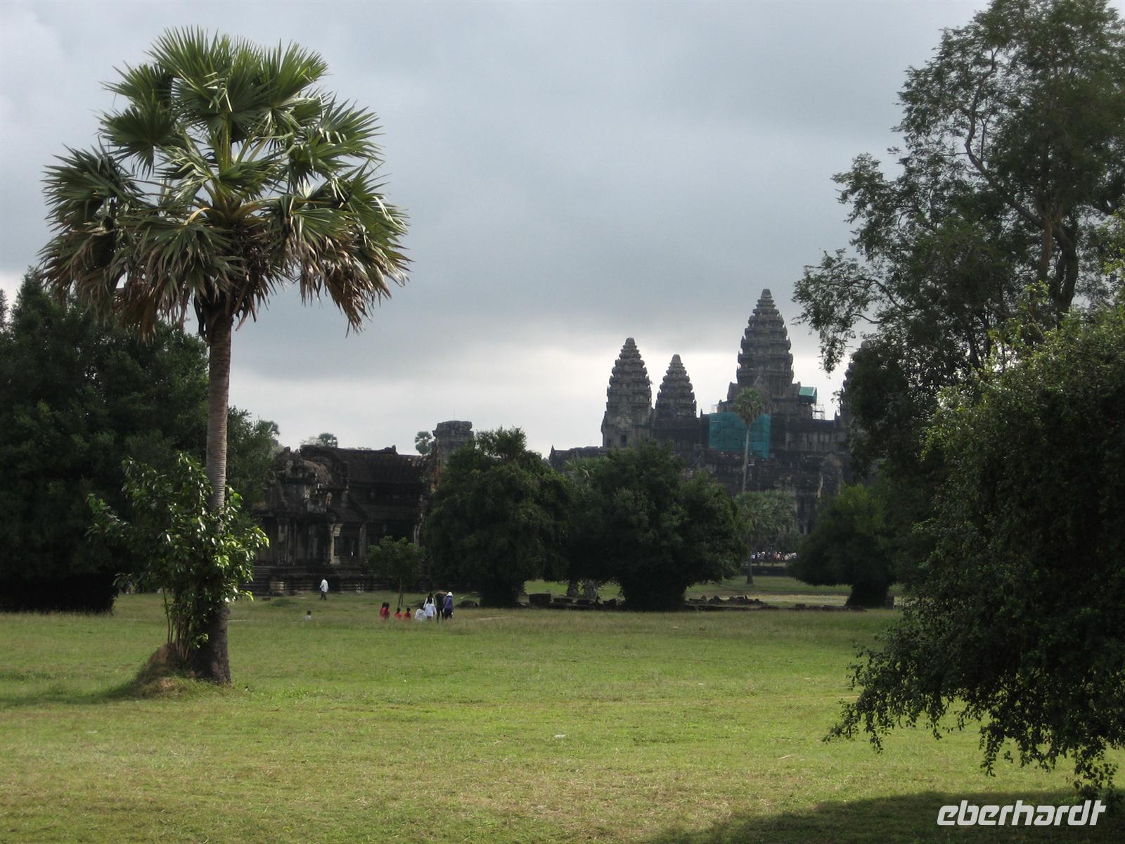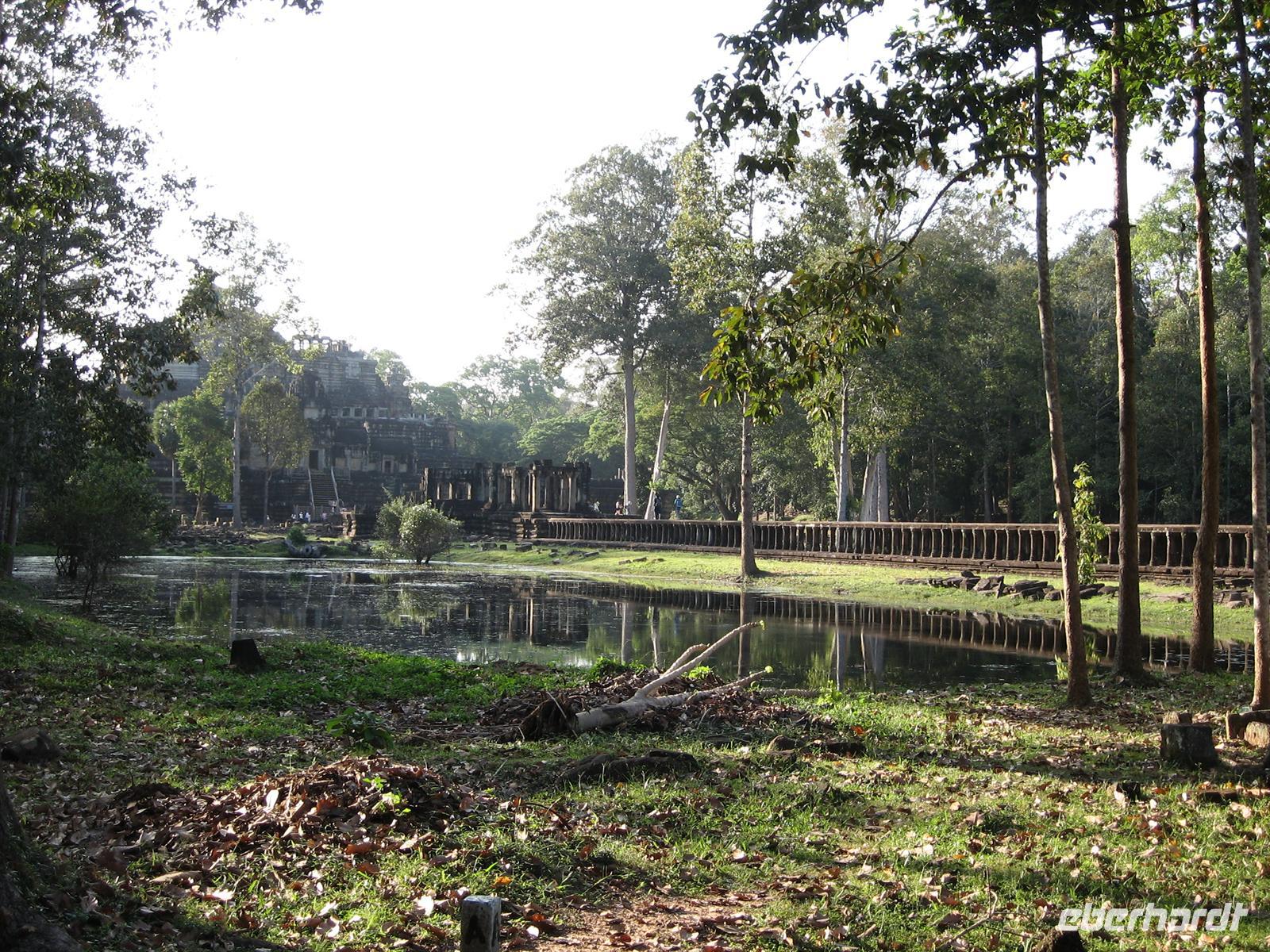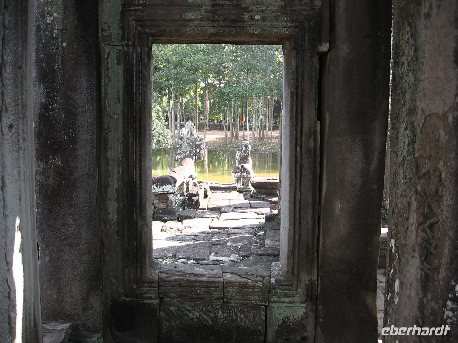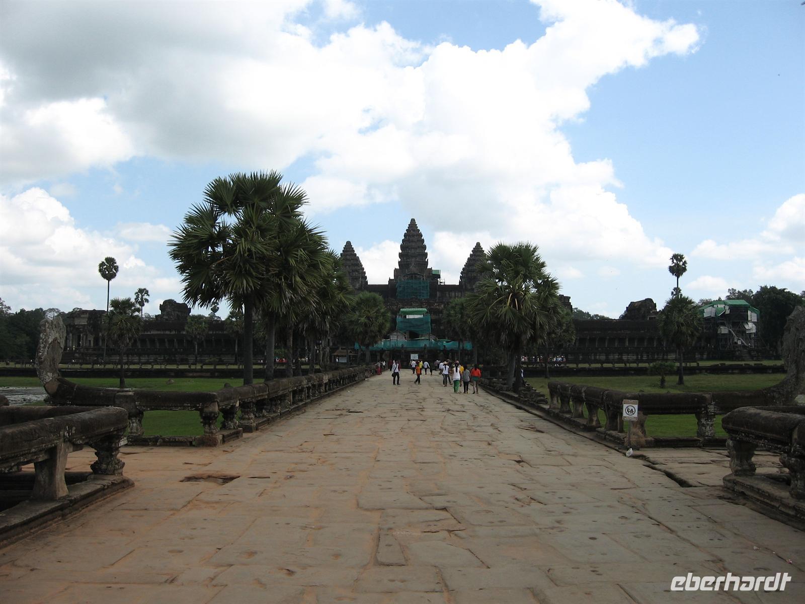 das sich eine Geschichte erzählen lässt. Diese für uns fremde Götterwelt lässt sich dadurch etwas besser erfassen. Anschließend gehen wir auf die nächste Galerie und stehen in einem Hofraum. Vor uns ist jetzt das Zentralheiligtum mit seinen markanten Türmen. Hinaufgehen ist auf Grund von Instandsetzungsarbeiten zur Zeit nicht möglich. Langsam begeben wir uns wieder nach unten und gehen dann langsam wieder zurück zum Haupteingang. Immer mal wieder einen Blick zurück nehmend verlassen wir dieses gewaltige Zeugnis aus dem 12. Jh.