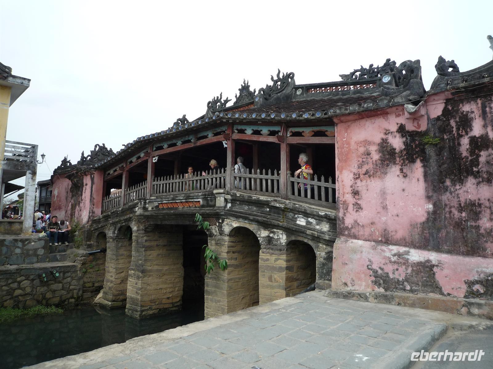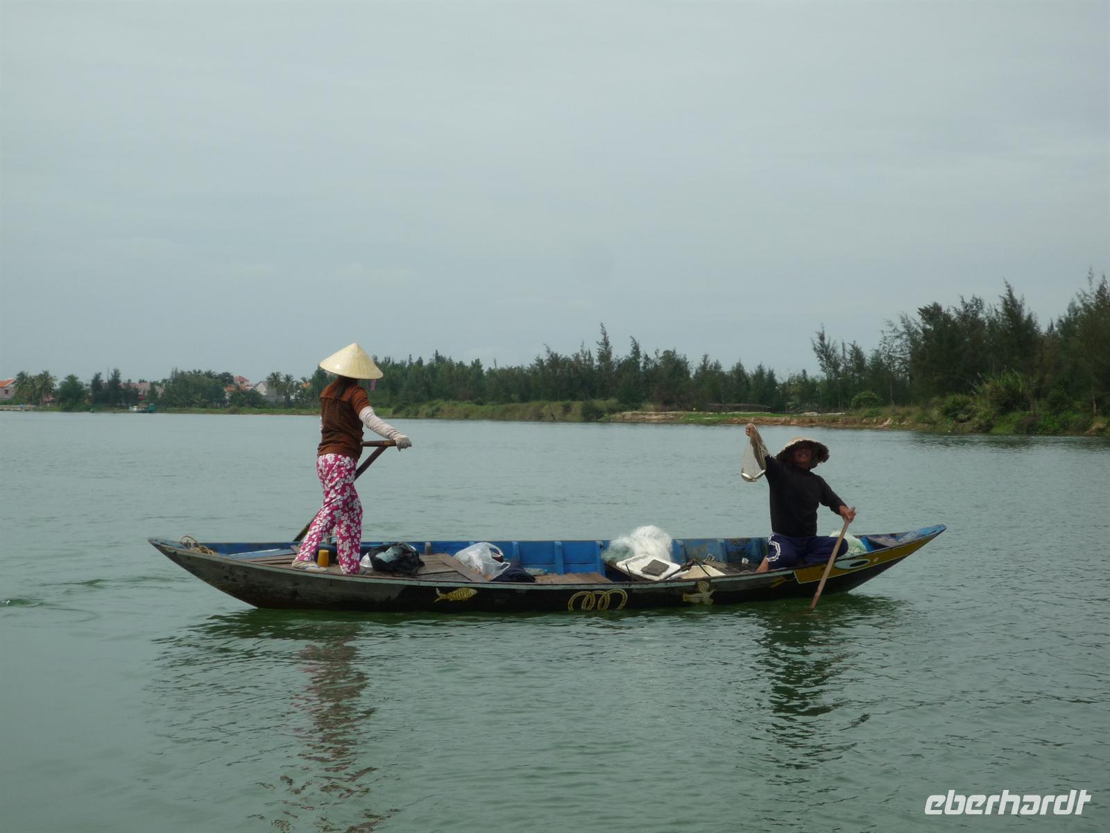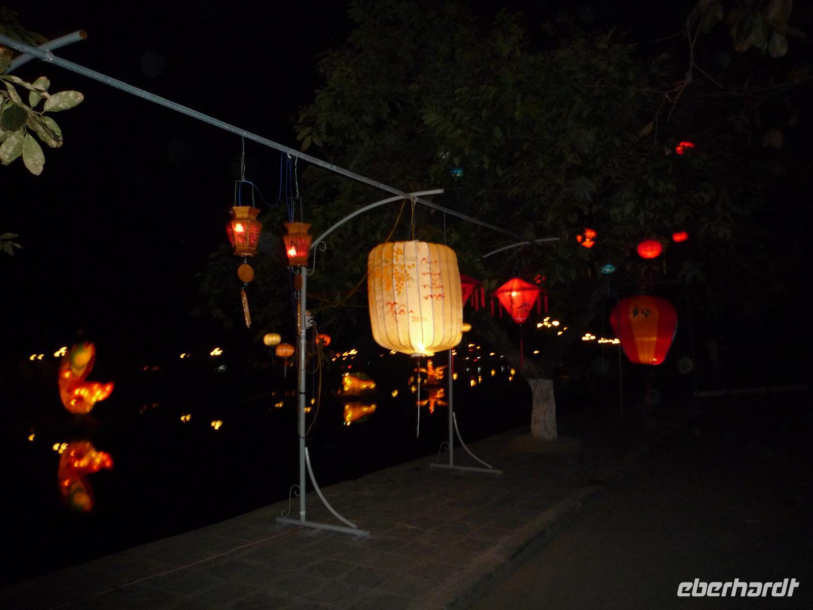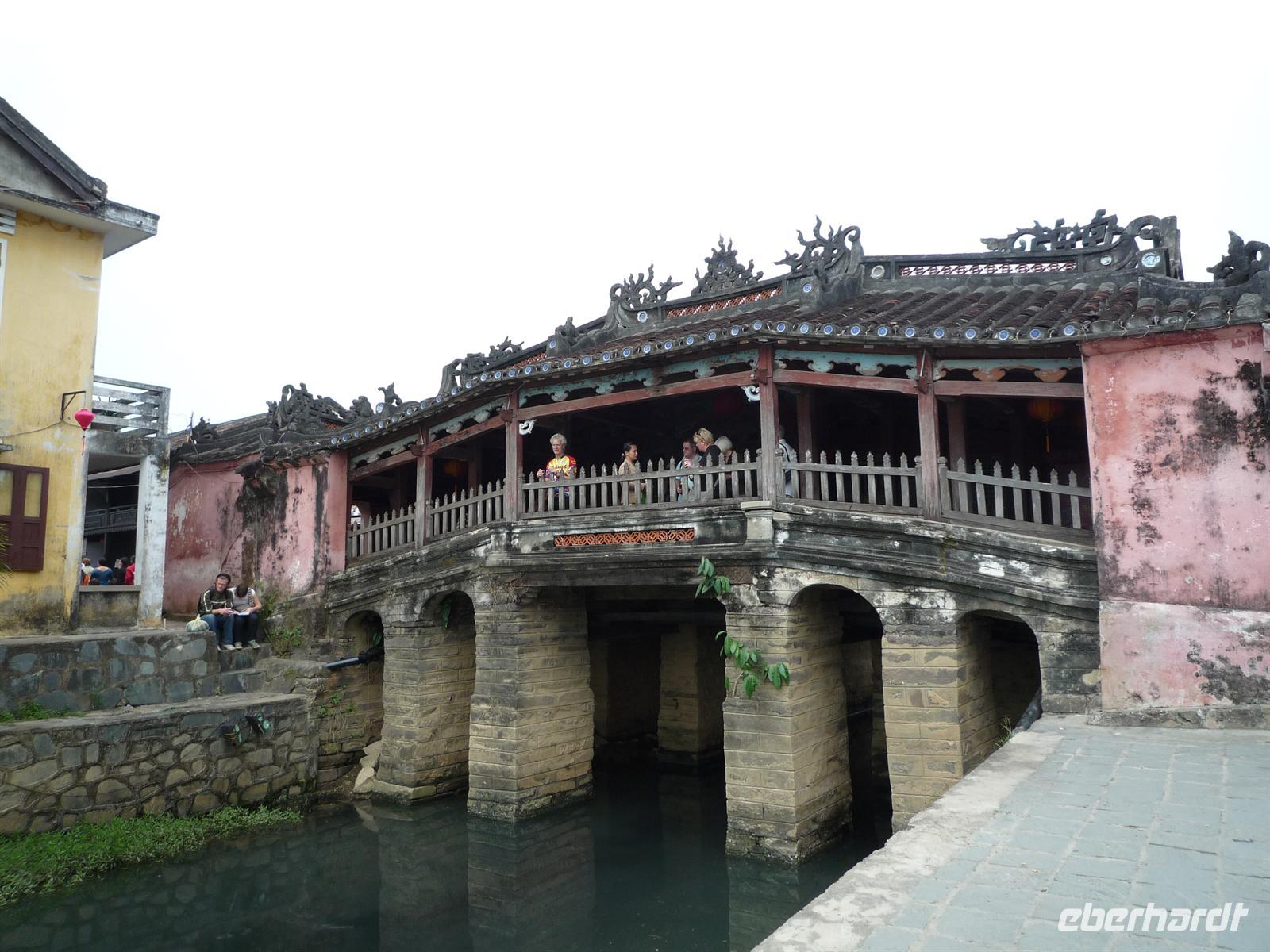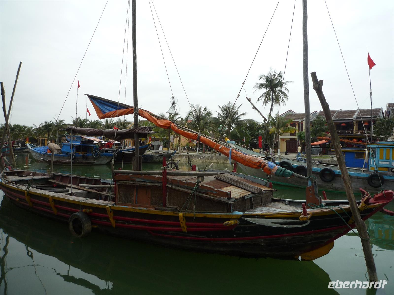 Am alten Hafen entlang, wo es heute hauptsächlich Ausflugsboote für Touristen liegen, laufen wir zur japanischen Brücke. Die schlichte, überdachte, Holzbrücke beherbergt auch noch eine Brückenpagode, die dem Herrscher des Nordens geweiht ist. Diesem werden die Macht über Wind, Regen und andere schlechte Einflüsse zugeschrieben. Gleich nebenan können wir einen Blick in eines der traditionellen Häuser nehmen. Das Phung-Hung-Haus ist seit acht Generationen im Besitz derselben Familie. Hoi An ist auch berühmt für seine zahlreichen Schneidereien. Hier kann man sich günstig etwas nähen lassen. Die Stadt hat sich ihr charmantes Flair erhalten und lädt immer wieder zu einem Bummel ein. Nach einer Mittagspause machen wir noch eine Bootsfahrt auf den Thu Bon River, wo wir die Mangroven-Landschaft beobachten. Nach dem Mittagessen genießen alle ihre Freizeit. Einige schauen sich die Stadt bei einem Spaziergang an und einen großen Teil der Gruppe zieht es zum Meer, um zu baden. Besonders am Abend lädt Hoi An zu einem Spaziergang ein, denn alles ist herrlich beleuchtet, überall sind Lampions aufgehängt.