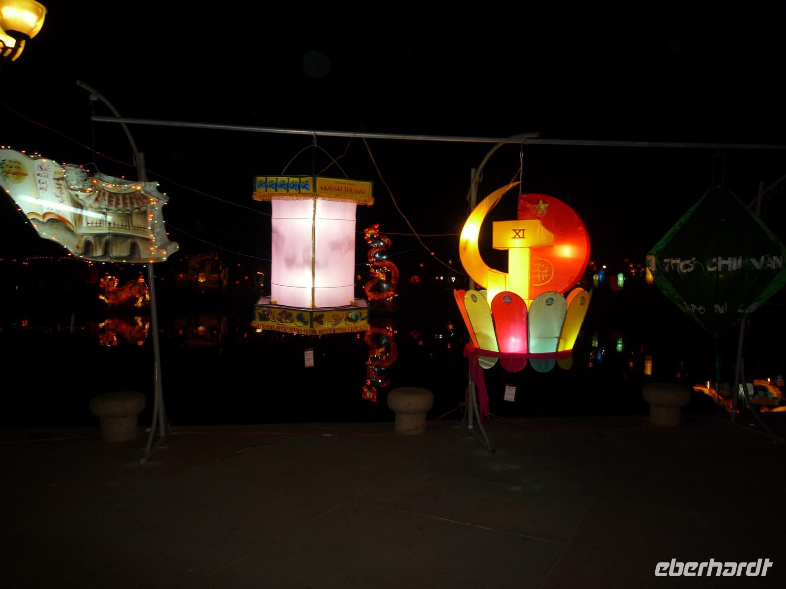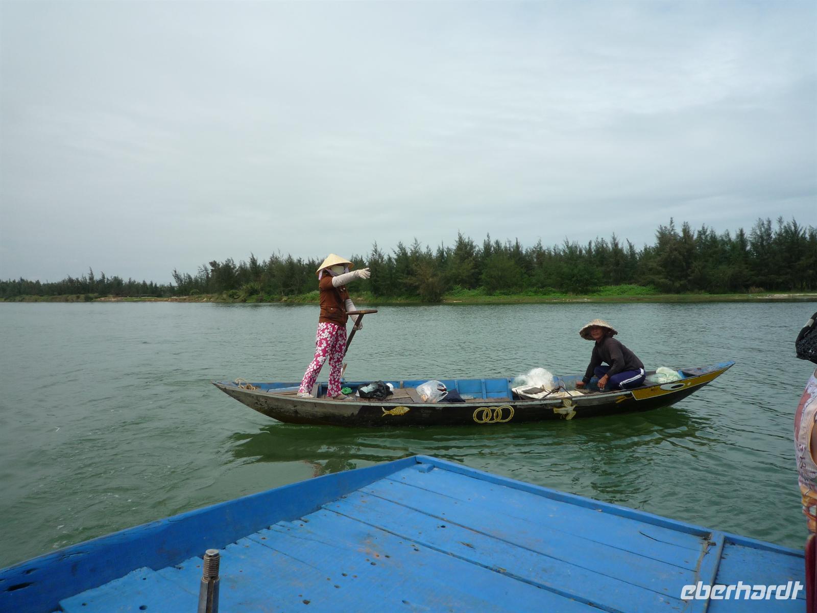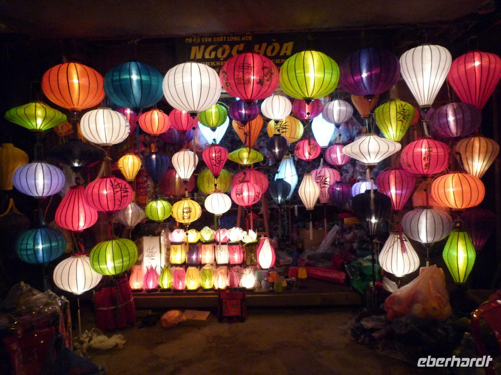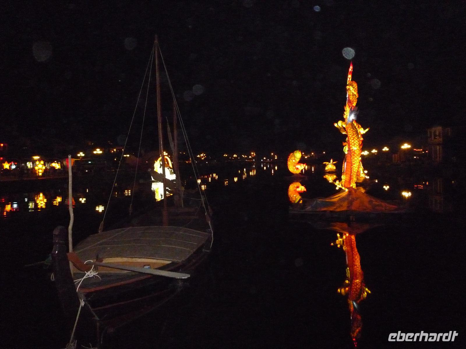 Am alten Hafen entlang, wo es heute hauptsächlich Ausflugsboote für Touristen liegen, laufen wir zur japanischen Brücke. Die schlichte, überdachte, Holzbrücke beherbergt auch noch eine Brückenpagode, die dem Herrscher des Nordens geweiht ist. Diesem werden die Macht über Wind, Regen und andere schlechte Einflüsse zugeschrieben. Gleich nebenan können wir einen Blick in eines der traditionellen Häuser nehmen. Das Phung-Hung-Haus ist seit acht Generationen im Besitz derselben Familie. Hoi An ist auch berühmt für seine zahlreichen Schneidereien. Hier kann man sich günstig etwas nähen lassen. Die Stadt hat sich ihr charmantes Flair erhalten und lädt immer wieder zu einem Bummel ein. Nach einer Mittagspause machen wir noch eine Bootsfahrt auf den Thu Bon River, wo wir die Mangroven-Landschaft beobachten. Nach dem Mittagessen genießen alle ihre Freizeit. Einige schauen sich die Stadt bei einem Spaziergang an und einen großen Teil der Gruppe zieht es zum Meer, um zu baden. Besonders am Abend lädt Hoi An zu einem Spaziergang ein, denn alles ist herrlich beleuchtet, überall sind Lampions aufgehängt.
