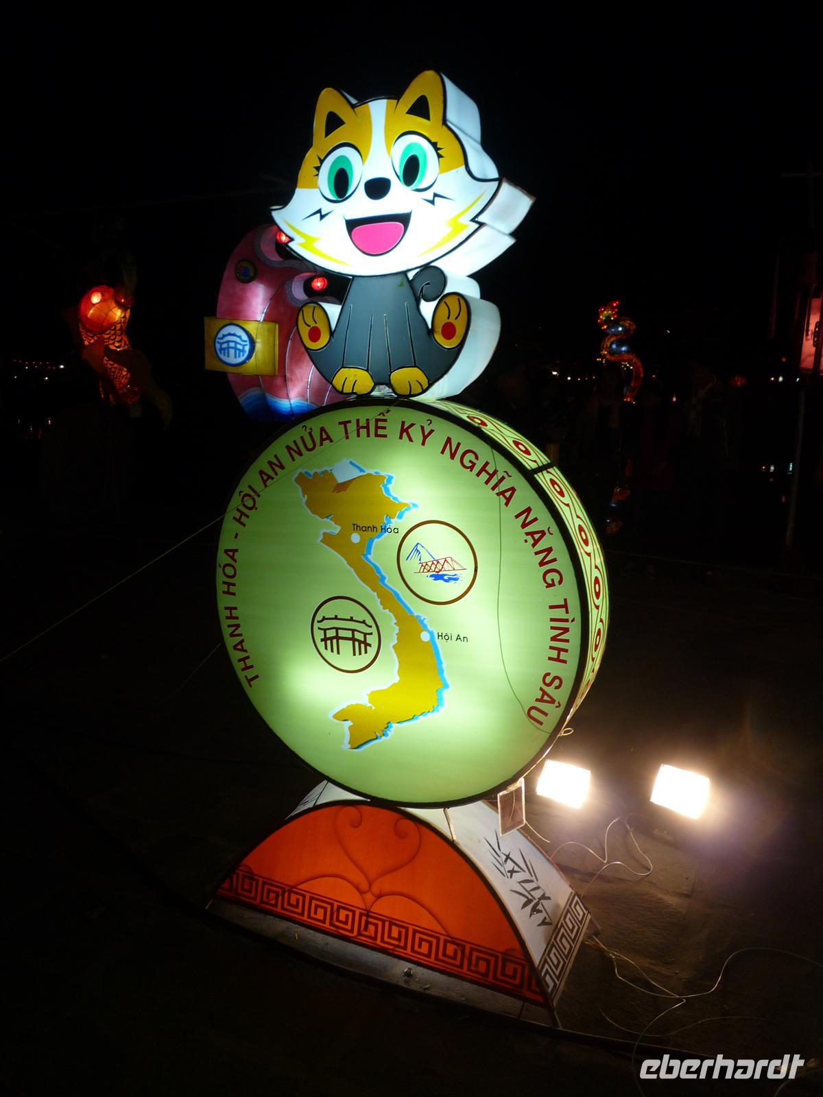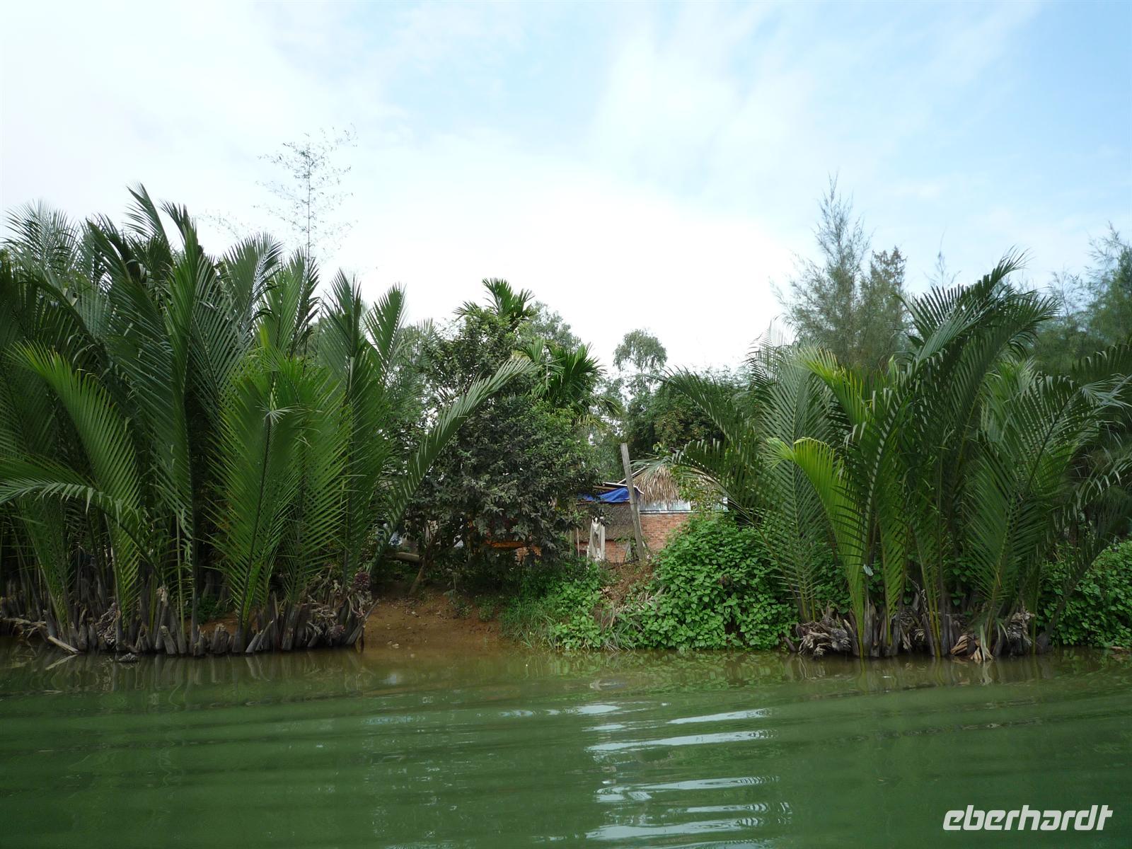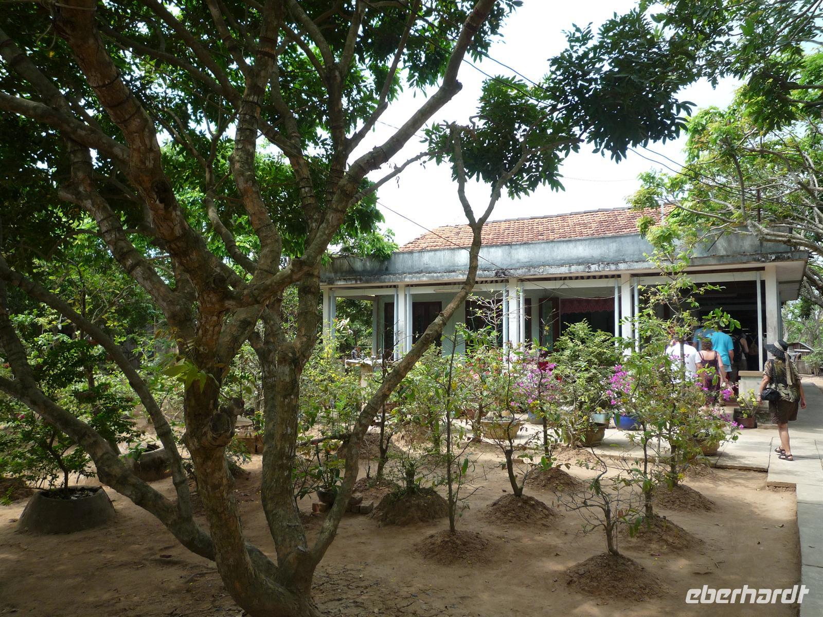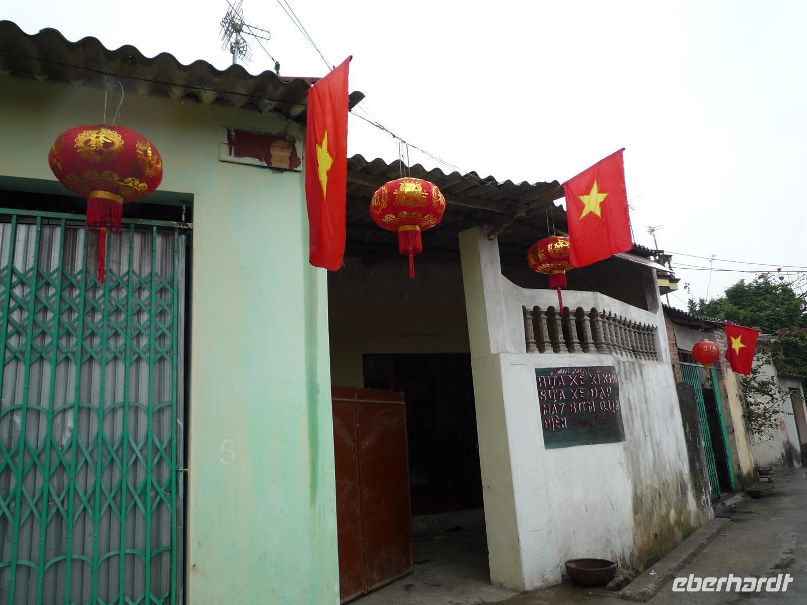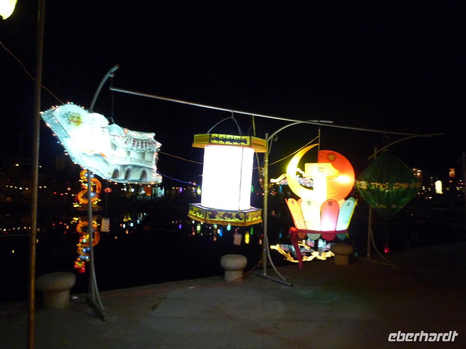 Am alten Hafen entlang, wo es heute hauptsächlich Ausflugsboote für Touristen liegen, laufen wir zur japanischen Brücke. Die schlichte, überdachte, Holzbrücke beherbergt auch noch eine Brückenpagode, die dem Herrscher des Nordens geweiht ist. Diesem werden die Macht über Wind, Regen und andere schlechte Einflüsse zugeschrieben. Gleich nebenan können wir einen Blick in eines der traditionellen Häuser nehmen. Das Phung-Hung-Haus ist seit acht Generationen im Besitz derselben Familie. Hoi An ist auch berühmt für seine zahlreichen Schneidereien. Hier kann man sich günstig etwas nähen lassen. Die Stadt hat sich ihr charmantes Flair erhalten und lädt immer wieder zu einem Bummel ein. Nach einer Mittagspause machen wir noch eine Bootsfahrt auf den Thu Bon River, wo wir die Mangroven-Landschaft beobachten. Nach dem Mittagessen genießen alle ihre Freizeit. Einige schauen sich die Stadt bei einem Spaziergang an und einen großen Teil der Gruppe zieht es zum Meer, um zu baden. Besonders am Abend lädt Hoi An zu einem Spaziergang ein, denn alles ist herrlich beleuchtet, überall sind Lampions aufgehängt.