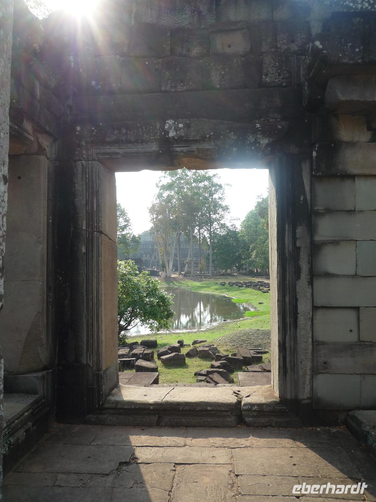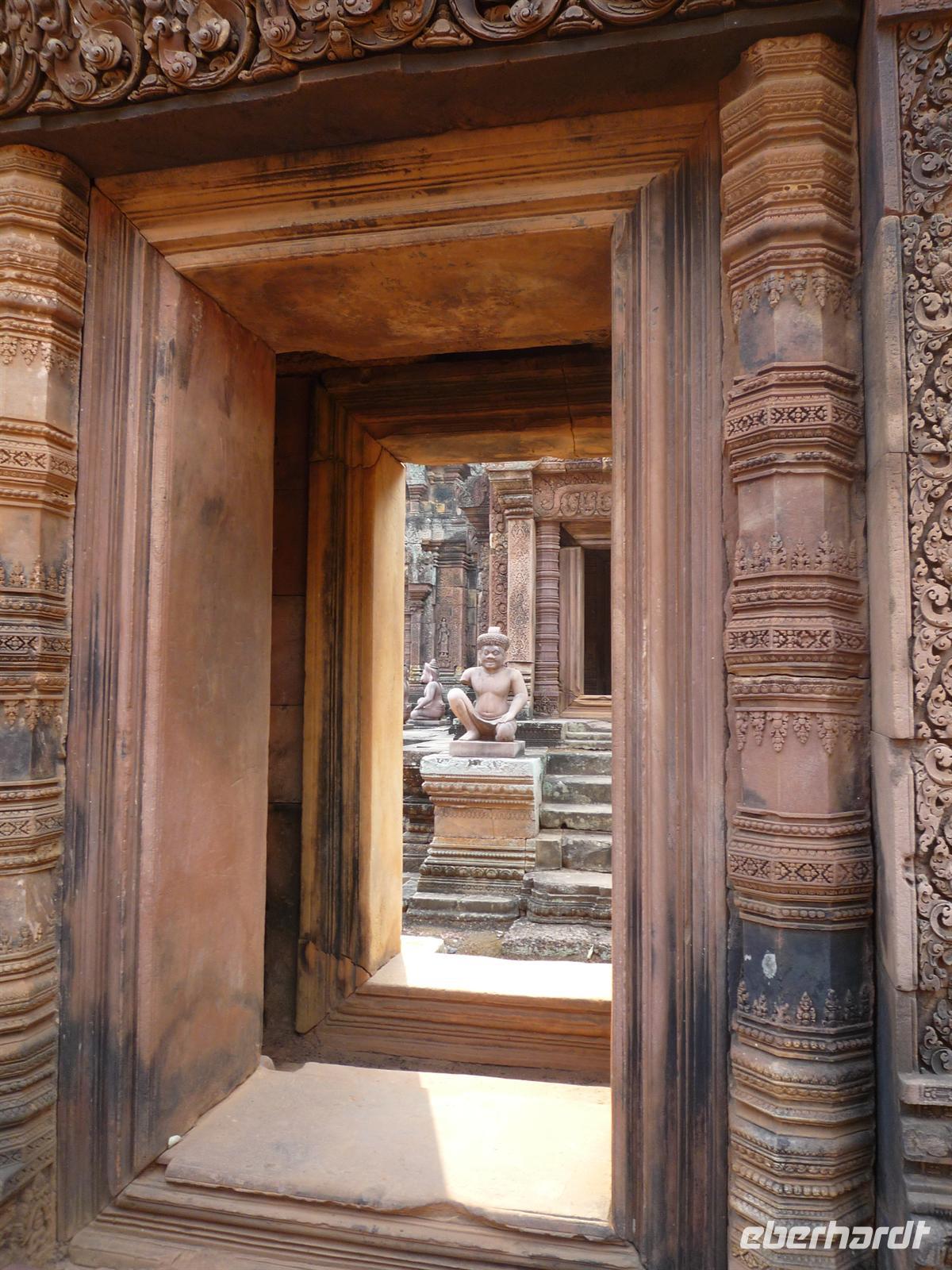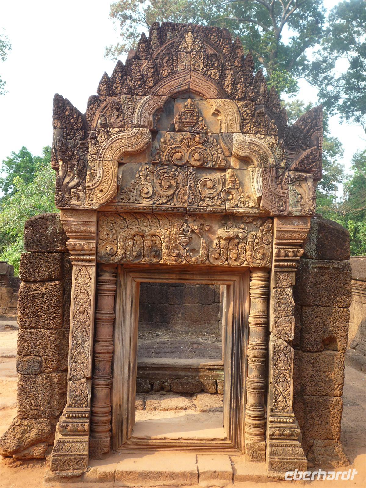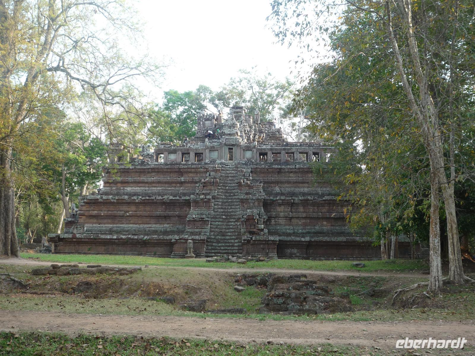 Vier weitere, in ihrer Art unterschiedliche, Tempelanlagen besuchen wir heute. Zuerst besuchen wir heute den meistbesuchten Tempel, Ta Prohm, uns ist er besser bekannt als Dschungeltempel. Wie auch bei allen anderen Besichtigungen nutzt unser Reiseleiter Thol nicht die Wege und Besichtigungszeiten wie alle anderen Gruppen. So betreten wir Ta Prohm durch einen Nebeneingang und können eine ganze Weile die Anlage fast allein genießen. Majestätisch stehen die Bäume über den Ruinen, haben sie sich einverleibt. Mächtige Wurzeln haben sich wie Schlangen entlang der Mauern geschoben und man hat den Eindruck, sie halten die Mauern zusammen. Dabei ist es eher umgekehrt. Gewaltig und Beeindruckend.