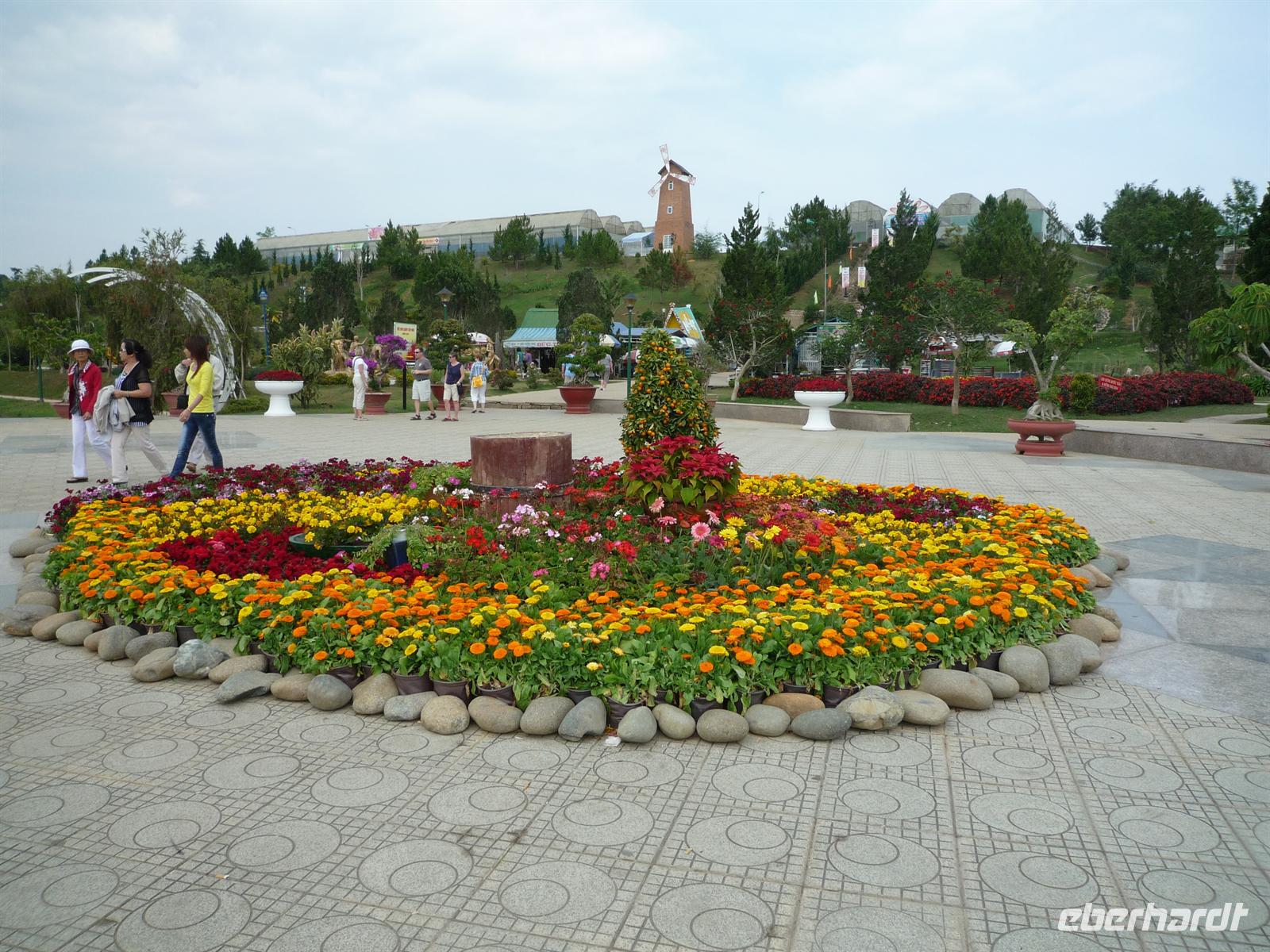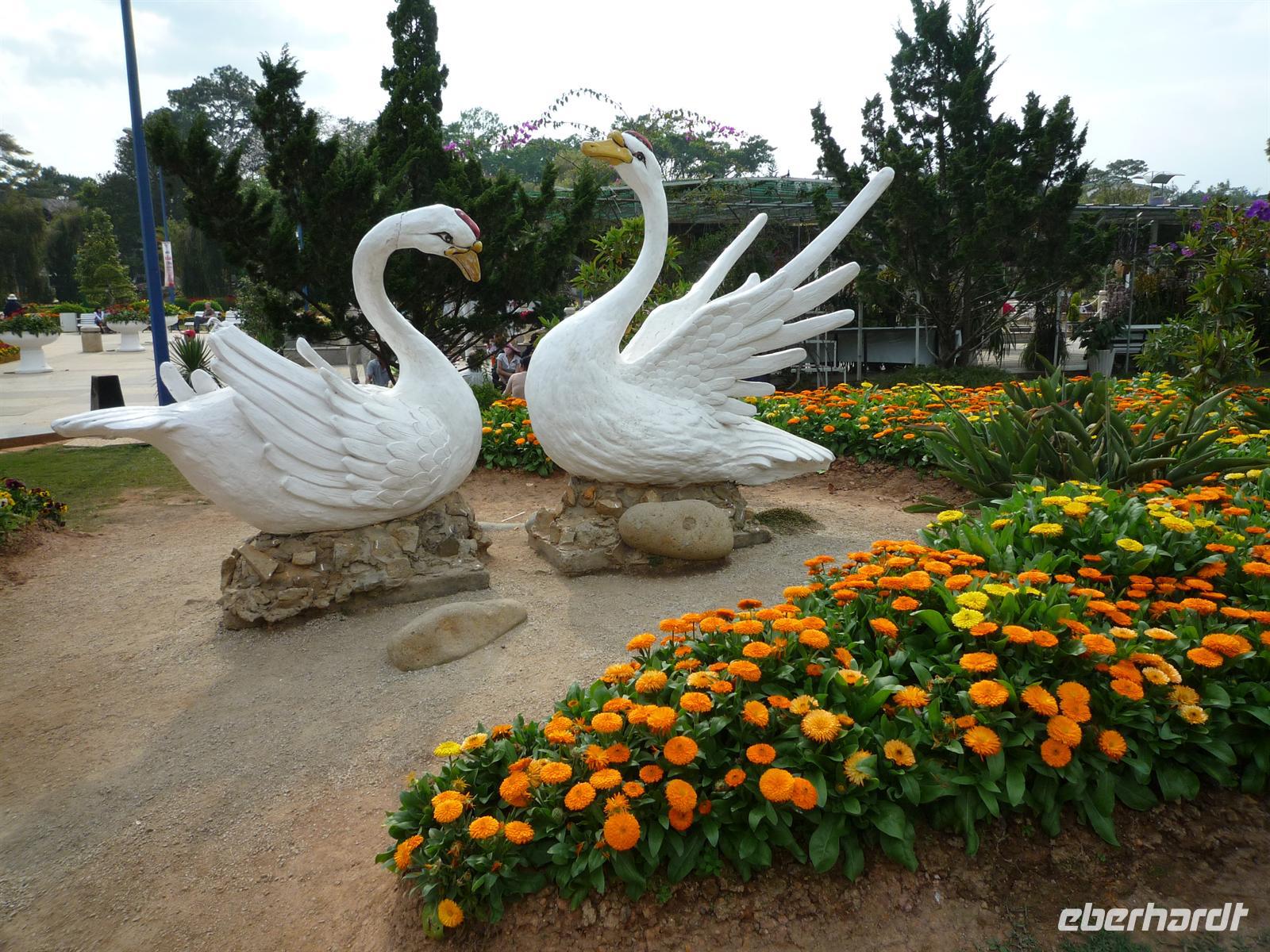 Nach dem Mittagessen besuchen wir den Blumen-Park der Stadt, eine herrliche Anlage mit vielen farbenprächtigen Orchideen und anderen Pflanzen. Wir genießen einen