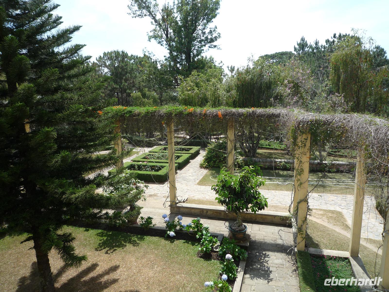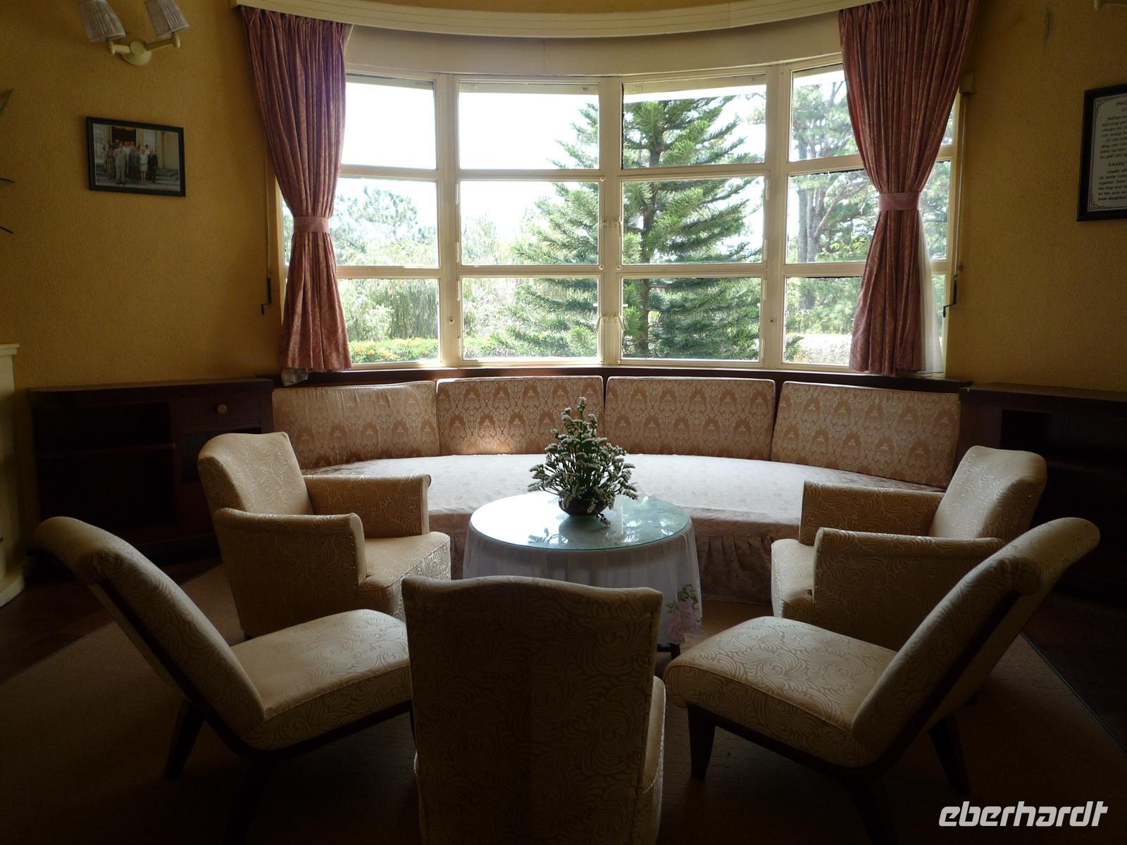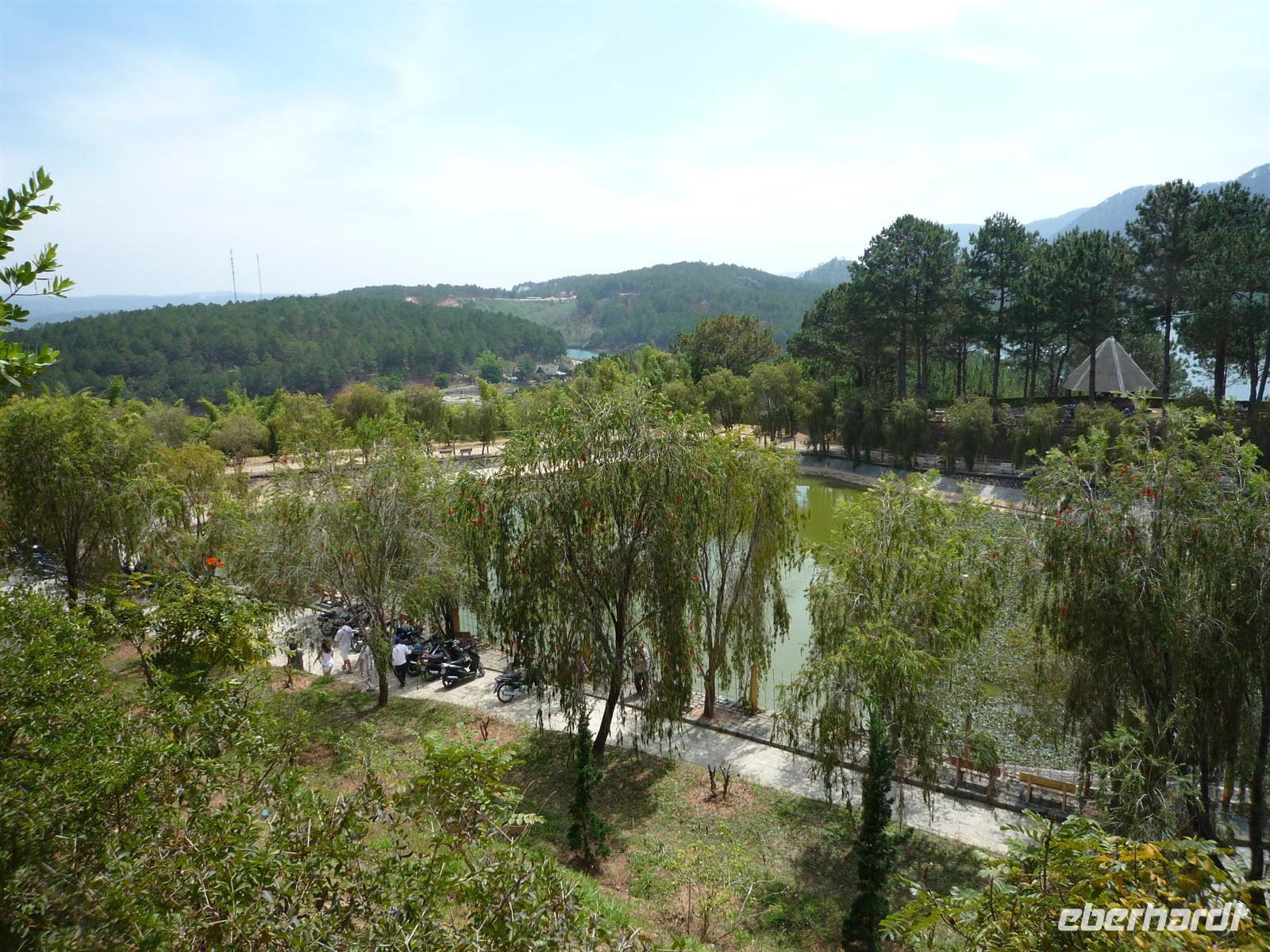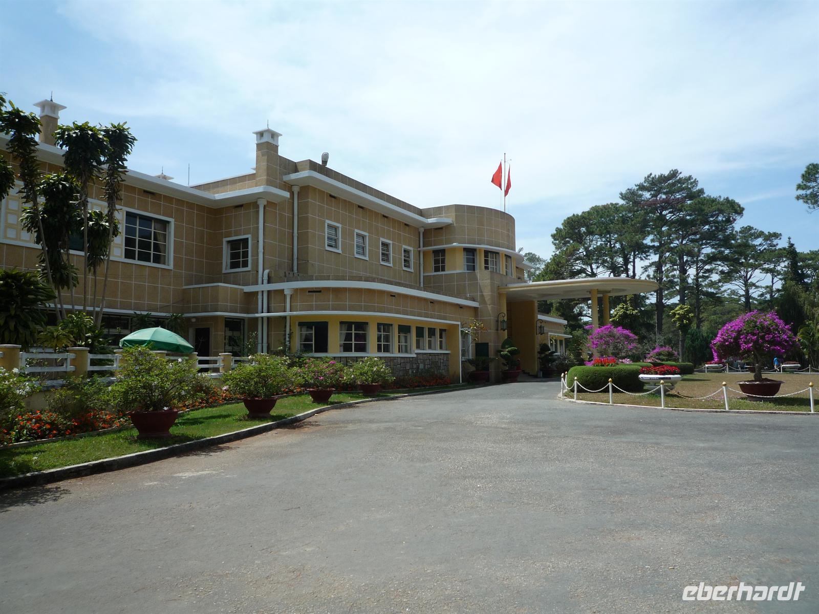 Mit dem Bus fahren wir dann zum Sommerpalast des letzten Kaisers von Vietnam, Bao Dai. Das schlichte, stark vom Art-Déco-Stil beeinflusste, Bauwerk wurde zwischen 1933 und 1938 erbaut. Die Einrichtung des Palastes ist fast unverändert, bemerkenswert war für uns, dass die Zimmer mit frischen Blumen dekoriert waren. 1957 ging Dao Bai endgültig ins Exil nach Frankreich und der Plast wurde anschließend vom südvietnamesischen Präsidenten Diem genutzt. Spaziergang durch die tolle Anlage. Anschließend stoppen wir noch am Kloster, von dem wir ebenfalls eine tolle Aussicht haben.
