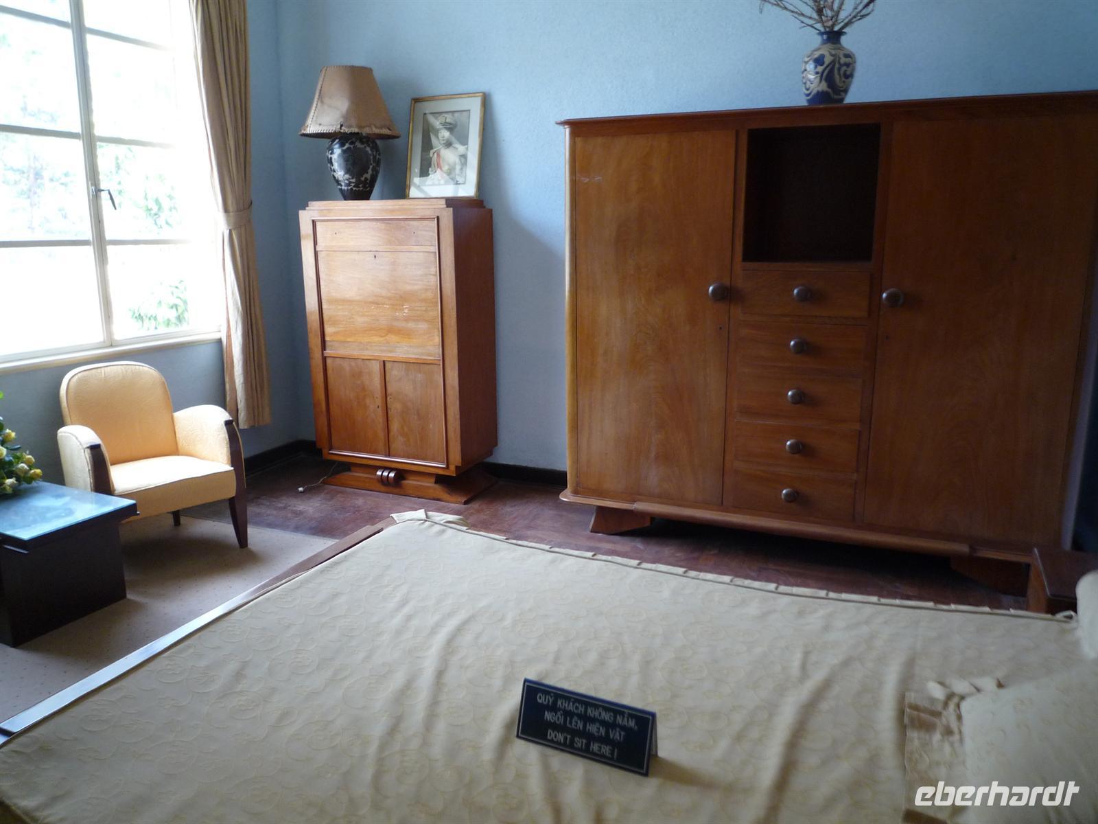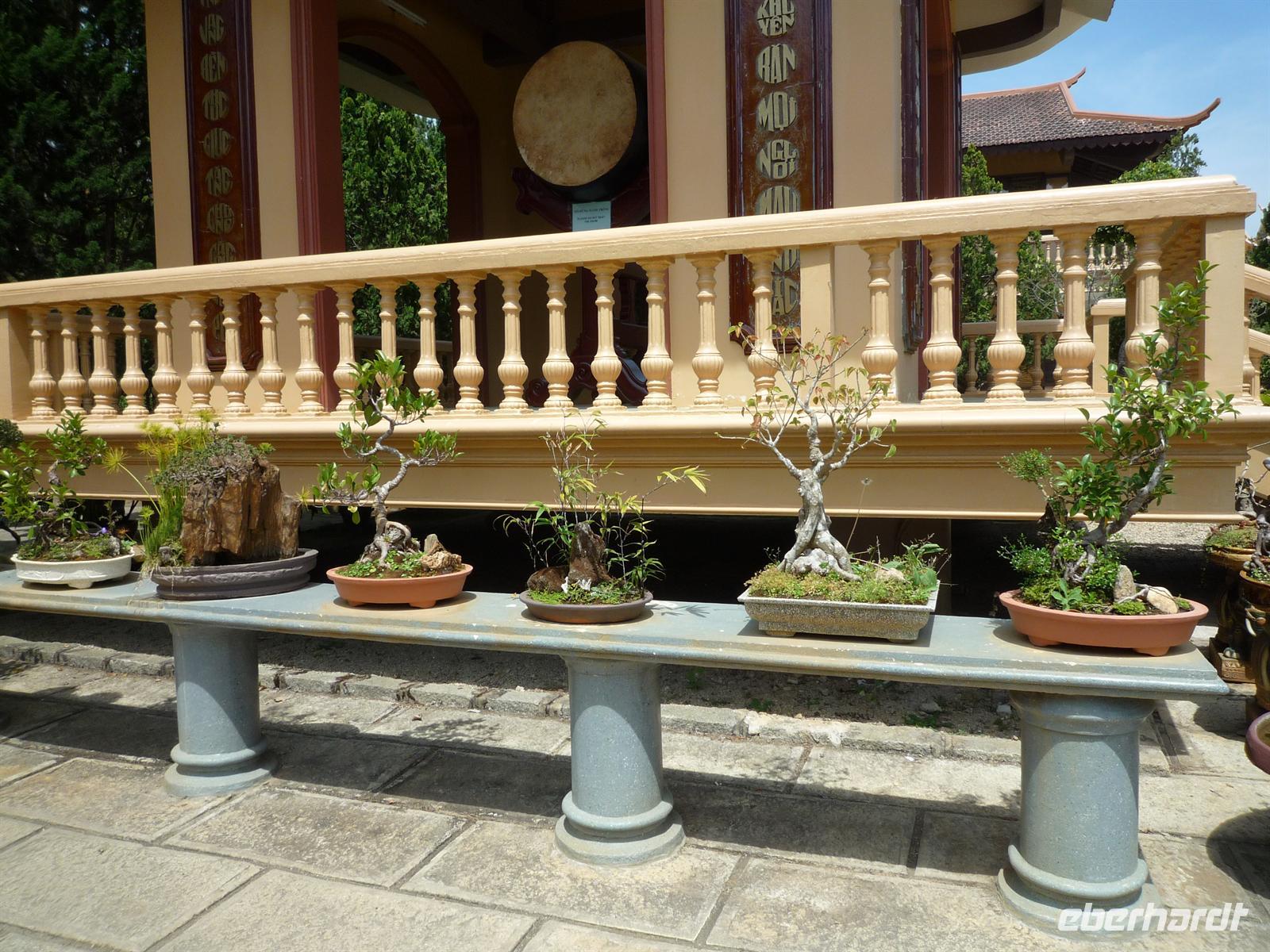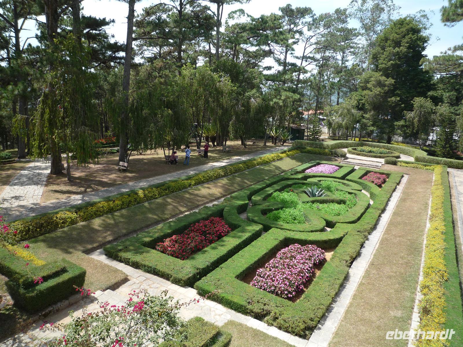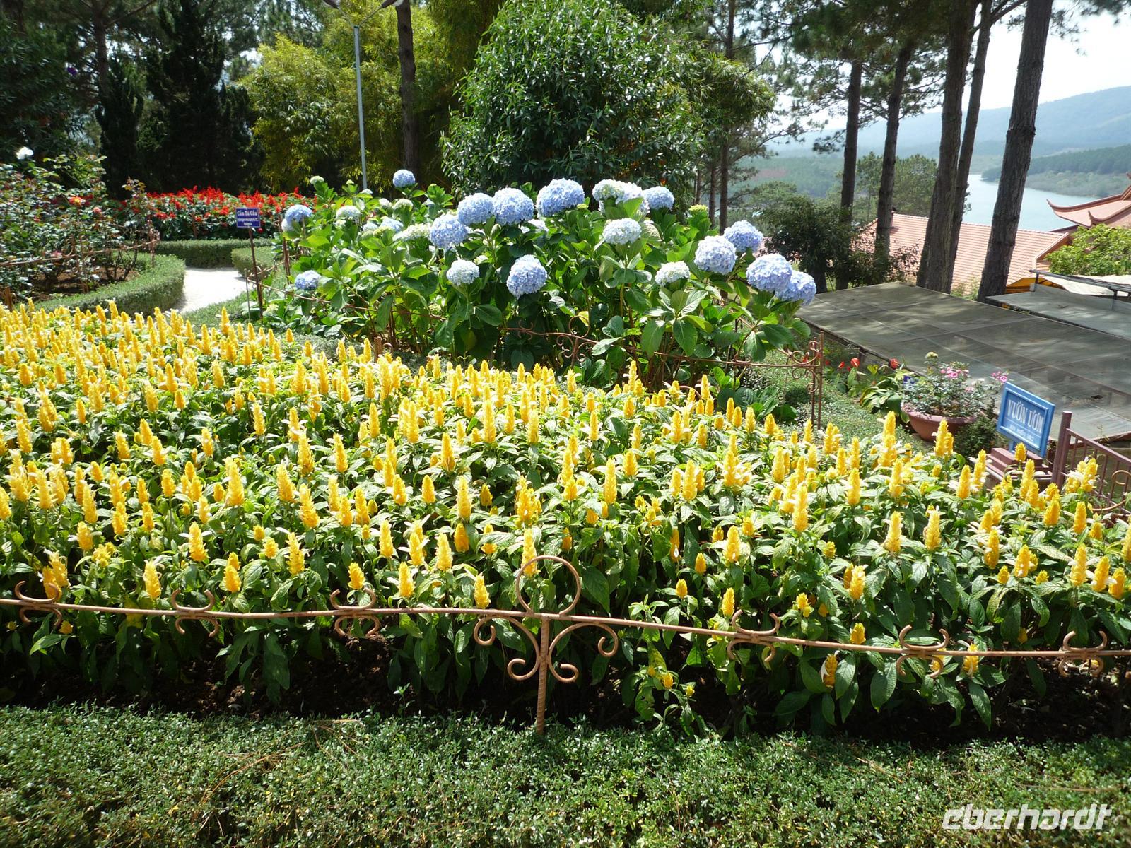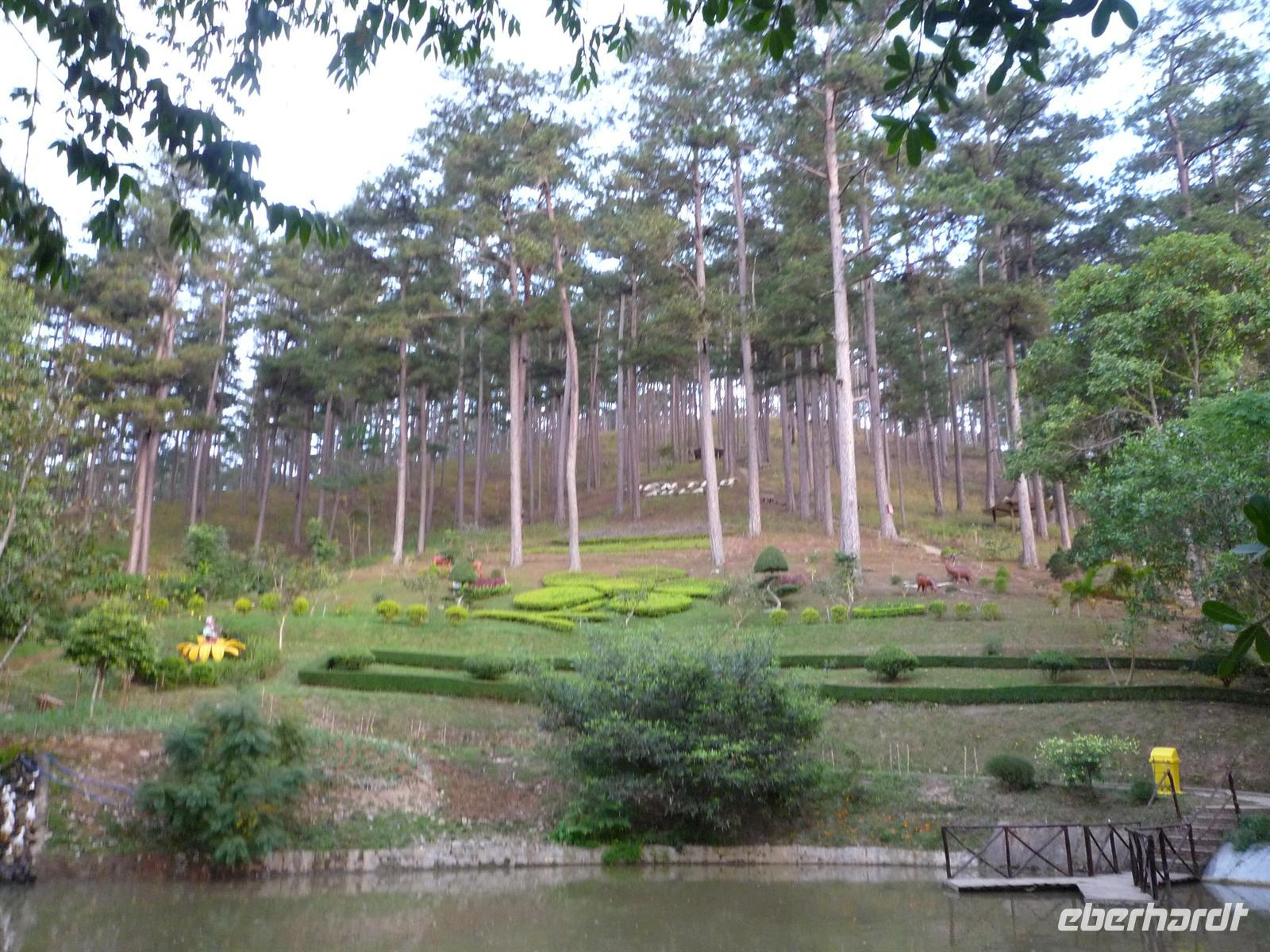 Mit dem Bus fahren wir dann zum Sommerpalast des letzten Kaisers von Vietnam, Bao Dai. Das schlichte, stark vom Art-Déco-Stil beeinflusste, Bauwerk wurde zwischen 1933 und 1938 erbaut. Die Einrichtung des Palastes ist fast unverändert, bemerkenswert war für uns, dass die Zimmer mit frischen Blumen dekoriert waren. 1957 ging Dao Bai endgültig ins Exil nach Frankreich und der Plast wurde anschließend vom südvietnamesischen Präsidenten Diem genutzt. Spaziergang durch die tolle Anlage. Anschließend stoppen wir noch am Kloster, von dem wir ebenfalls eine tolle Aussicht haben.