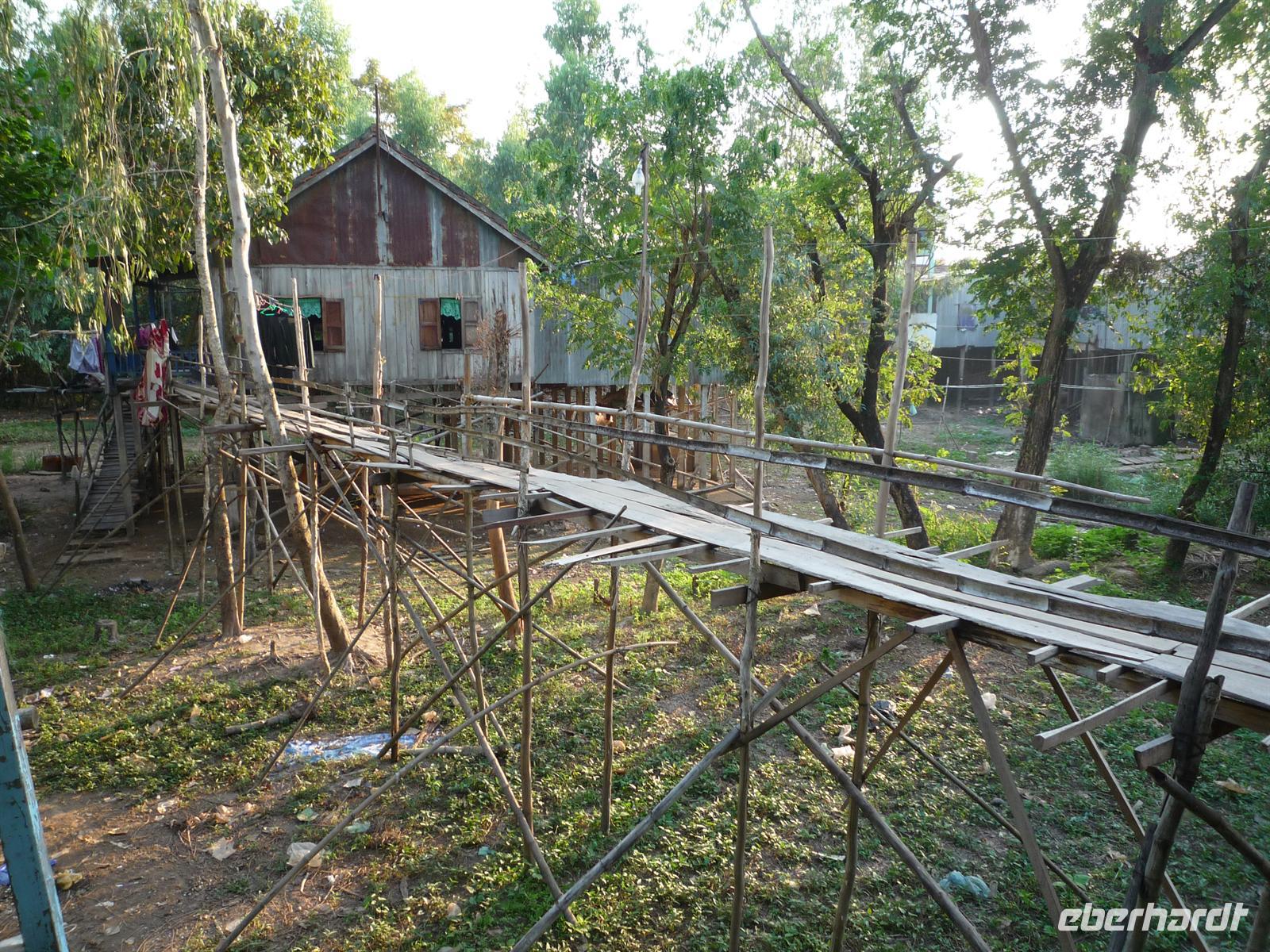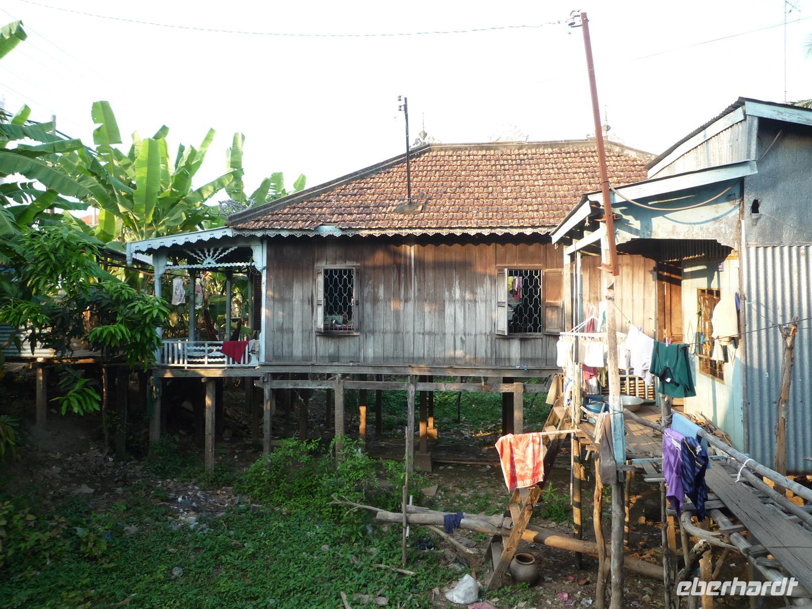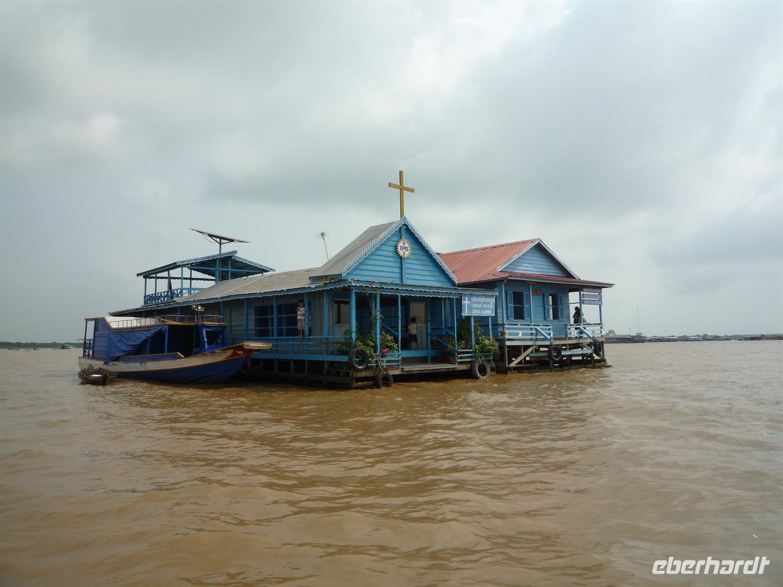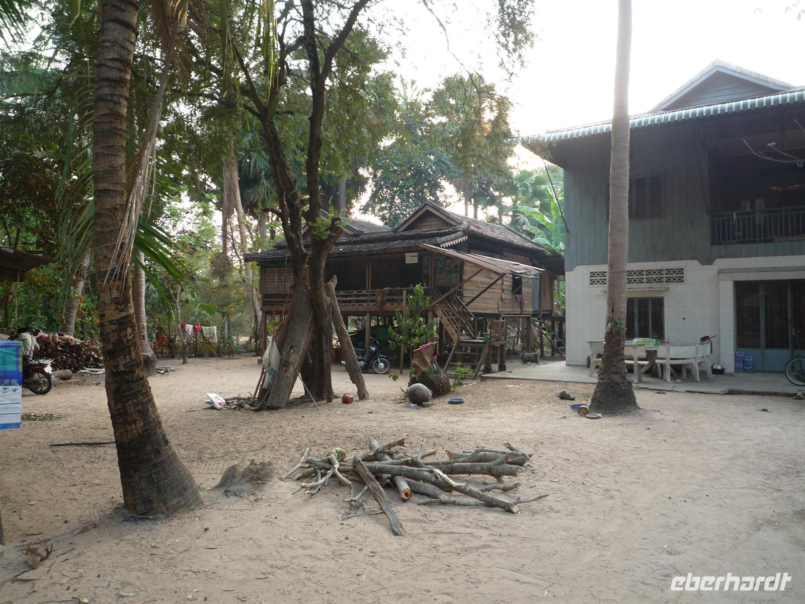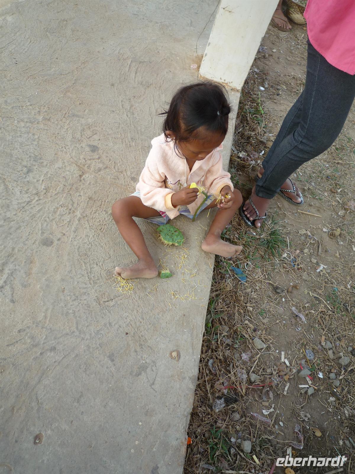Am zeitigen Morgen fahren zwei unserer Gäste zum Eleantenreiten. Mit einem Tuk Tuk werden Sie zum Südtor von Angkor Thom gebracht und auf dem Elefanten geht es dann weiter bis zum Bayon Tempel. Um 9 Uhr treffen wir uns dann alle wieder am Hotel und machen noch einen Ausflug zum Tonle Sap-See. Auf dem Weg dahin laufen wir noch durch ein Dorf und haben die Gelegenheit durch ein buddhistisches Kloster zu gehen. Wir können auch für einige Minuten den Vorbereitungen für eine Einäscherung beiwohnen. Im Kloster werden alle Konfessionen eingeäschert, egal ob Christ, Buddhist oder Hindi. Mit einem Boot fahren wir dann auf dem Tonle Sap bis zum schwimmenden Dorf. Auch hier spielt sich das gesamte Leben auf dem Wasser ab. Der Tonle Sap See fungiert als Wassersammelbecken für den Mekong, in der Regenzeit fließt das Wasser aus dem Mekong in den Tonle Sap und seine Fläche dehnt sich auf 10000 km² aus. In der Trockenzeit lehrt sich der See wieder und verkleinert seine Oberfläche auf 2500 km². Entsprechend verändert sich auch die Wasserhöhe und schwankt von einem bis 10 Meter. Ohne den See wäre das Leben in Kambodscha so nicht möglich. Auch der Fischreichtum ist beeindruckend, 500 Arten leben im See, davon sind 100 kommerziell verwertbar. Fisch ist eines der wichtigsten Nahrungsmittel in Kambodscha. Ein Stopp an einem schwimmenden Souvenirgeschäft ist nicht sehr beeindruckend. Immer gibt es hier auch kleine Kinder, welche betteln oder sich für einen Dollar mit einer Schlange fotografieren lassen wollen. Ob sie wirklich sehr arm sind oder nur vor geschickt werden ist nicht nachzuvollziehen. Auf der Rückfahrt zum Hotel gehen wir noch zum Mittagessen.
