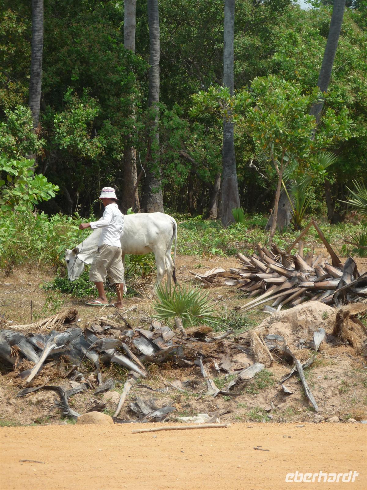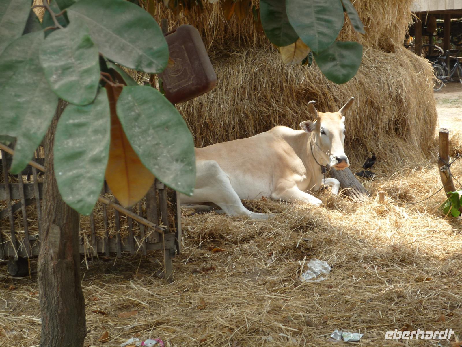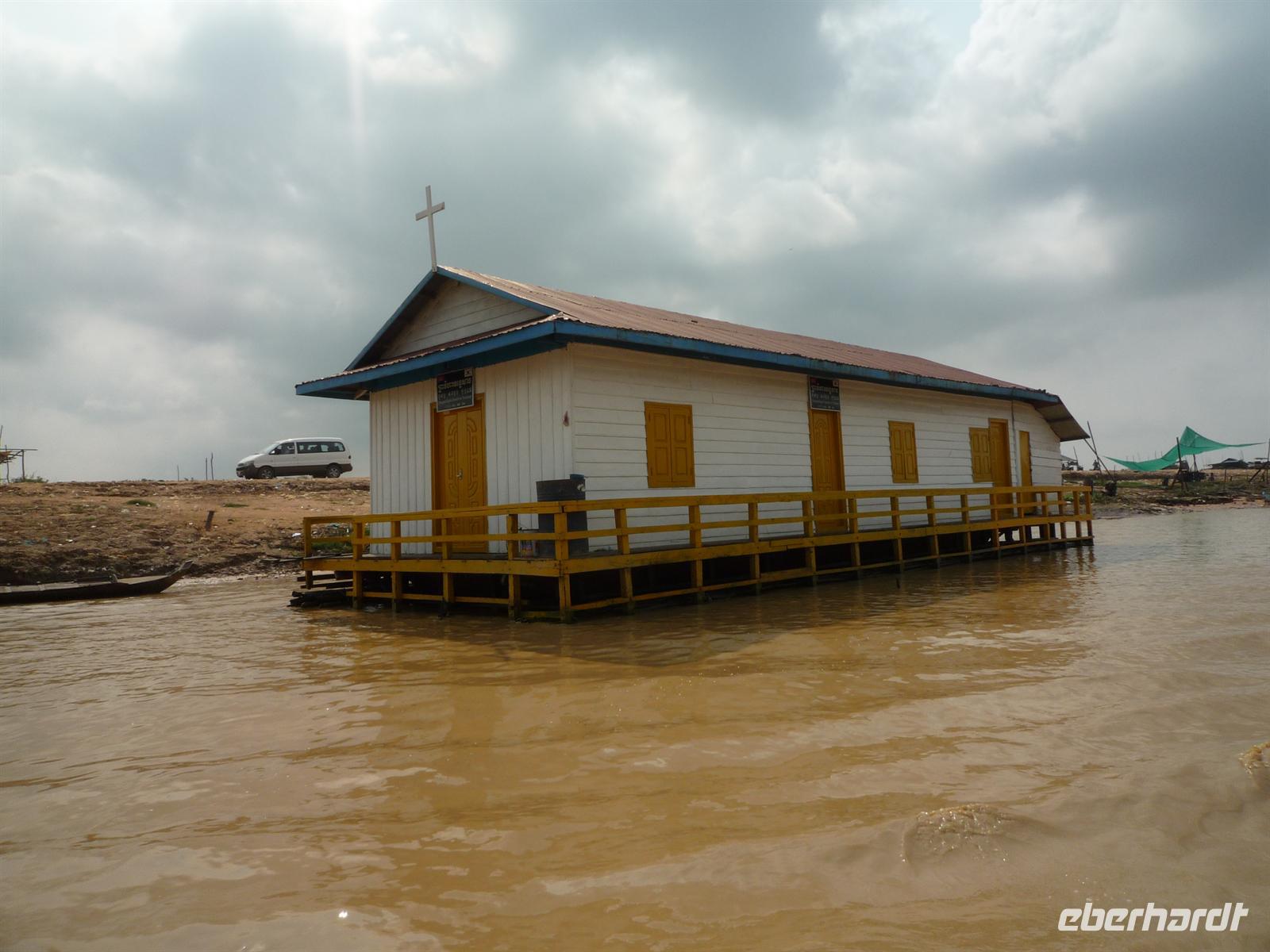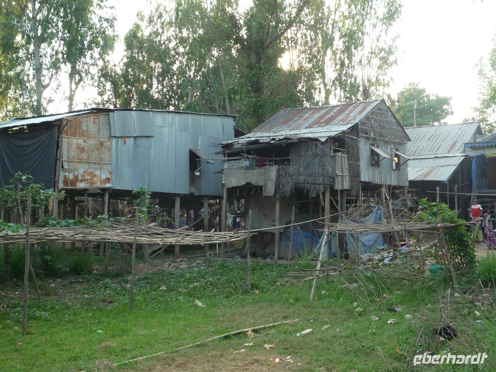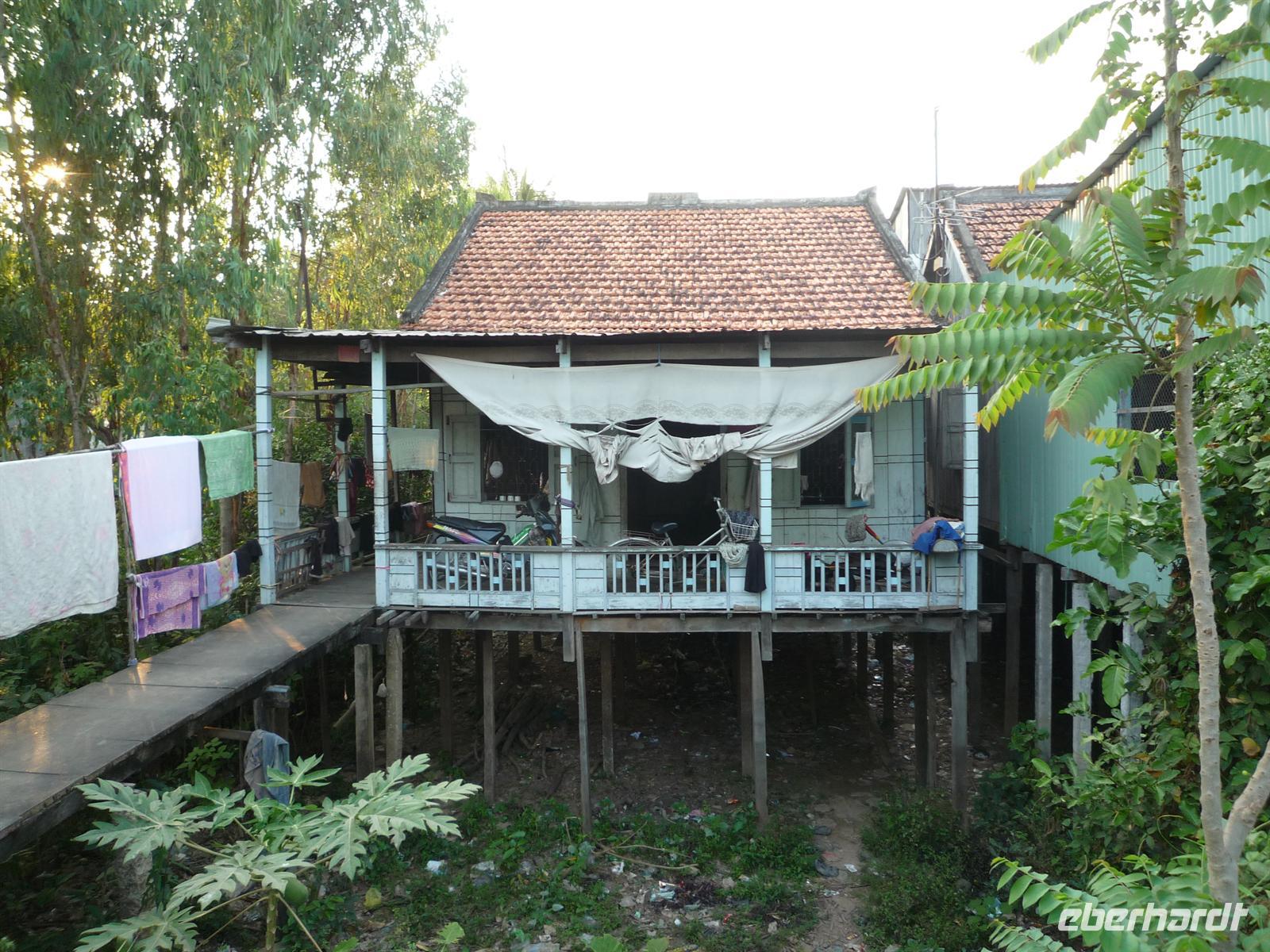 Am zeitigen Morgen fahren zwei unserer Gäste zum Eleantenreiten. Mit einem Tuk Tuk werden Sie zum Südtor von Angkor Thom gebracht und auf dem Elefanten geht es dann weiter bis zum Bayon Tempel. Um 9 Uhr treffen wir uns dann alle wieder am Hotel und machen noch einen Ausflug zum Tonle Sap-See. Auf dem Weg dahin laufen wir noch durch ein Dorf und haben die Gelegenheit durch ein buddhistisches Kloster zu gehen. Wir können auch für einige Minuten den Vorbereitungen für eine Einäscherung beiwohnen. Im Kloster werden alle Konfessionen eingeäschert, egal ob Christ, Buddhist oder Hindi. Mit einem Boot fahren wir dann auf dem Tonle Sap bis zum schwimmenden Dorf. Auch hier spielt sich das gesamte Leben auf dem Wasser ab. Der Tonle Sap See fungiert als Wassersammelbecken für den Mekong, in der Regenzeit fließt das Wasser aus dem Mekong in den Tonle Sap und seine Fläche dehnt sich auf 10000 km² aus. In der Trockenzeit lehrt sich der See wieder und verkleinert seine Oberfläche auf 2500 km². Entsprechend verändert sich auch die Wasserhöhe und schwankt von einem bis 10 Meter. Ohne den See wäre das Leben in Kambodscha so nicht möglich. Auch der Fischreichtum ist beeindruckend, 500 Arten leben im See, davon sind 100 kommerziell verwertbar. Fisch ist eines der wichtigsten Nahrungsmittel in Kambodscha. Ein Stopp an einem schwimmenden Souvenirgeschäft ist nicht sehr beeindruckend. Immer gibt es hier auch kleine Kinder, welche betteln oder sich für einen Dollar mit einer Schlange fotografieren lassen wollen. Ob sie wirklich sehr arm sind oder nur vor geschickt werden ist nicht nachzuvollziehen. Auf der Rückfahrt zum Hotel gehen wir noch zum Mittagessen.