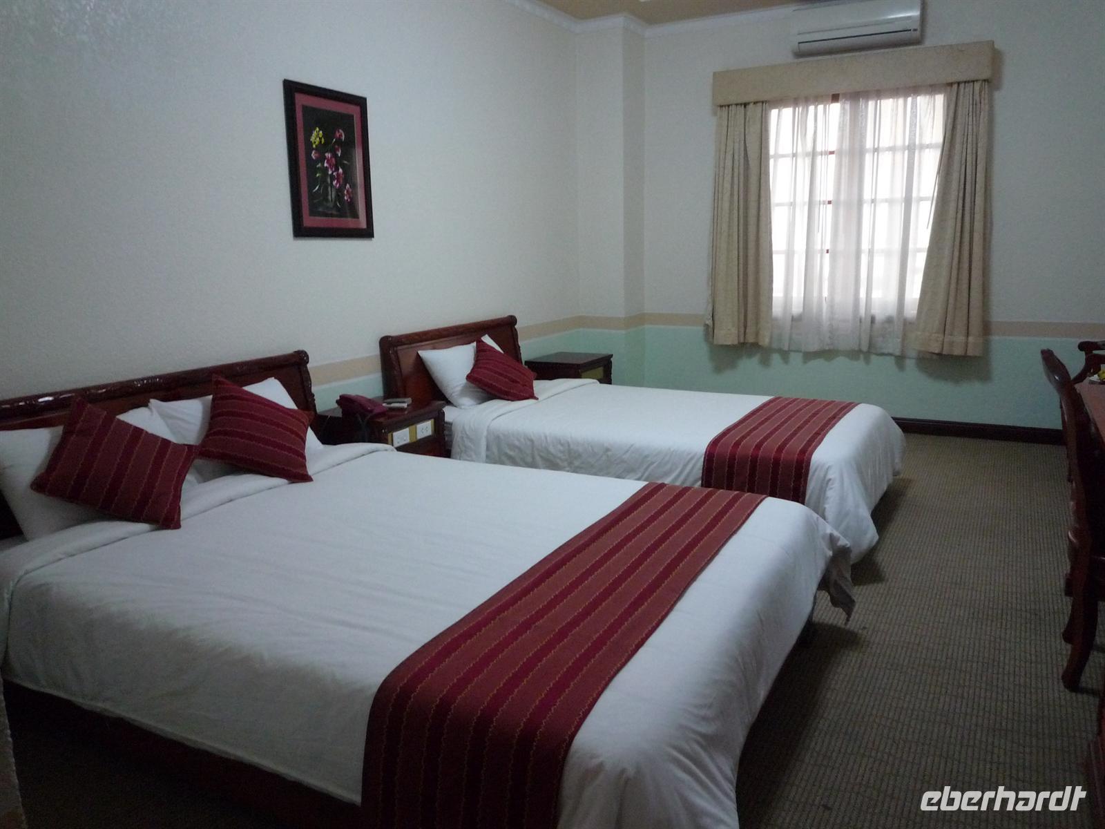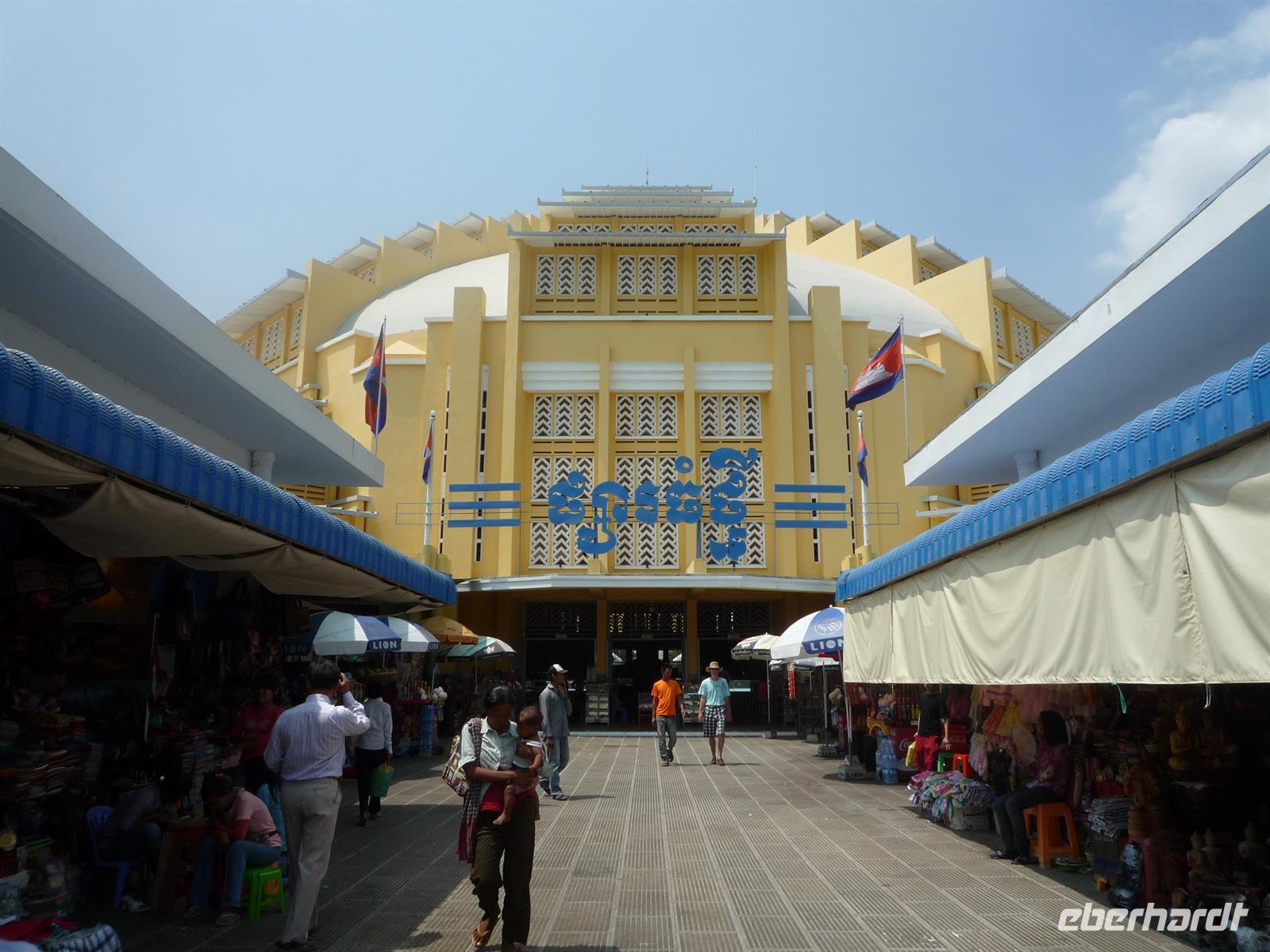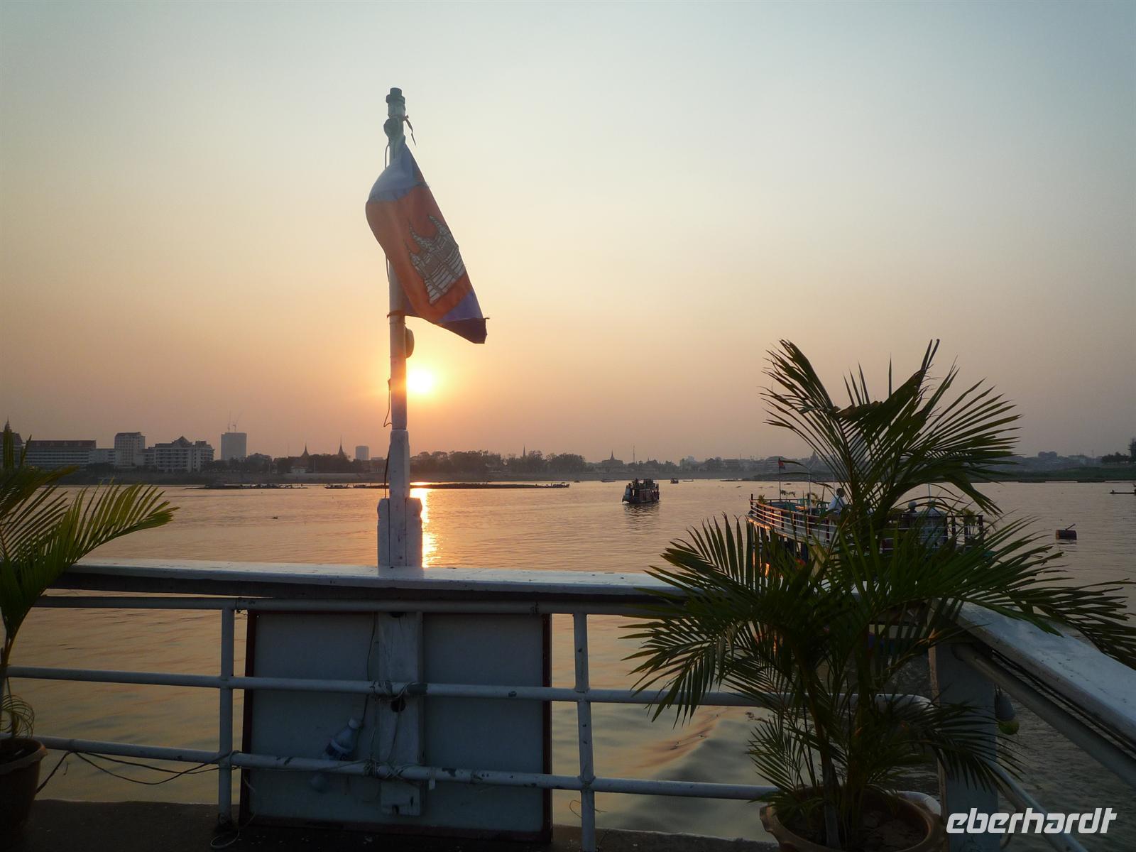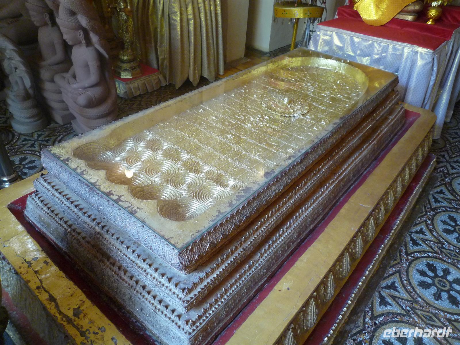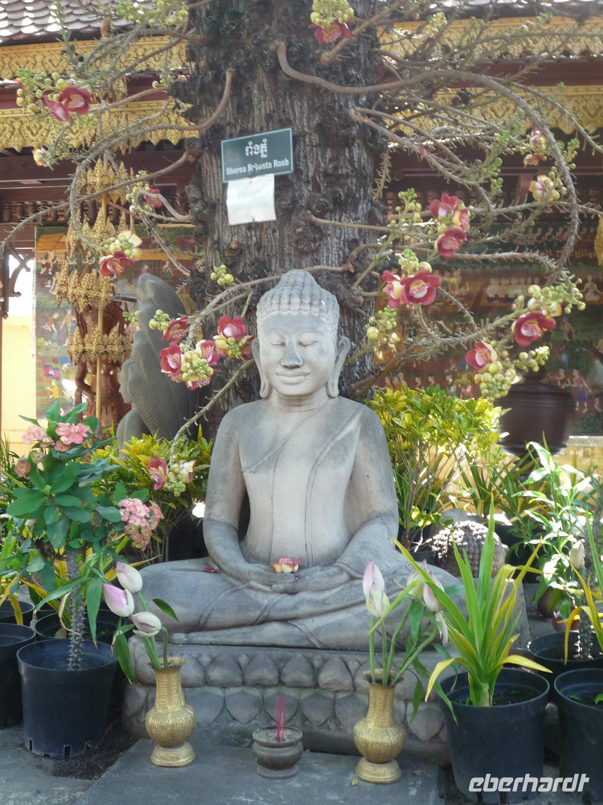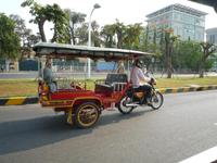 In Phnom Penh haben wir drei Besichtigungspunkte auf dem Programm. Zuerst fahren wir zum Königspalast. Die Palastanlage existiert seit 1886 an dieser Stelle, wurde zuerst aus Holz und später aus Stein gebaut. Das der königliche Palast an dieser Stelle gebaut wurde kommt nicht von ungefähr, er liegt genau an der Stelle wo der Tonle Sap-Fluss in den Mekong mündet. Der Palast ist glanzvoll mit viel Prunk ausgestattet, was im Gegensatz zur Armut im Land steht. Ein Gruppenfoto vor dem Palast darf natürlich nicht fehlen. Unser Rundgang führt uns auch zur Silberpagode. Auf dem Fußboden liegen 5329 in Frankreich gefertigte Bodenfließen aus Silber, zu einem Gewicht von je 1,125 kg, also insgesamt knapp 6000 kg Silber. Einen Teil davon kann man sehen, aber der größte Teil ist, zum Schutz, mit Teppichen ausgelegt. Im Inneren ist auf einem Altar eine grüne Buddhafigur zu sehen und davor steht in einer Glasvitrine eine Buddhafigur aus Purem Gold mit zahlreichen Edelsteinen verziert. Nicht weit entfernt vom Palast befindet sich das Nationalmuseum, ein markantes braunrotes Gebäude im traditionellen Khmerstil. Ausgestellt werden hier ca. 5000 Exponate, das Museum ist weltweit führend in der Sammlung von Khmerkunst. Die Khmer sind der Volksstamm der mit 90% in diesem Land die Stammbevölkerung stellt. Wir bestaunen die Ausstellungstücke aus den verschiedenen Epochen, vor allem sind es hinduistische Götter und Buddhafiguren. Abschließend besuchen wir noch das Hauptheiligtum der Stadt, das Wat Phnom. Ein kleiner Schrein erinnert an die Gründerin der Pagode, Frau Penh. Der Nachmittag steht wieder zur freien Verfügung. Einige Gäste und ich besuchen das Tuol-Sleng-Genozied-Museums an. Hier bekommen wir einen kleinen Eindruck vom schrecklichsten Kapitel kambodschanischer Geschichte. In diesem ehemaligen Gefängnis wurde zwischen 1976 und 1979 über 17000 Gefangene gefoltert und gedemütigt und anschließend zur Hinrichtung auf die Killing Fields gebracht. Schweigend verlassen wir das ehemalige Gefängnis, immer noch nicht begreifend, was in den Menschen vorgegangen sein muss, die diesen Völkermord zu verantworten haben. Wir fahren natürlich mit dem typischen Fortbewegungsmittel in Kambodscha, dem TukTuk, einer Rikscha mit Moped. Das sollte man in Kambodscha genutzt haben, denn es ist eine bequeme und doch spannende Art die Stadt zu erkunden. Anschließend treffen wir uns wieder und unternehmen eine schöne Bootsfahrt auf dem Mekong. Wir sehen das Leben am und vom Mekong, denn auch hier gibt es schwimmende Dörfer. Zum Abschluss sehen wir den roten Sonnenball hinter dem Königspalast untergehen - der schönste Sonnenuntergang der Reise!