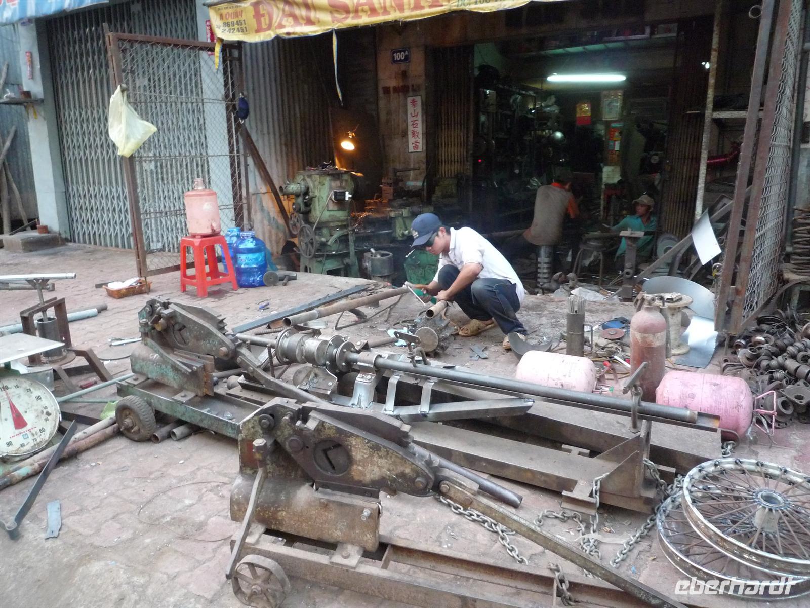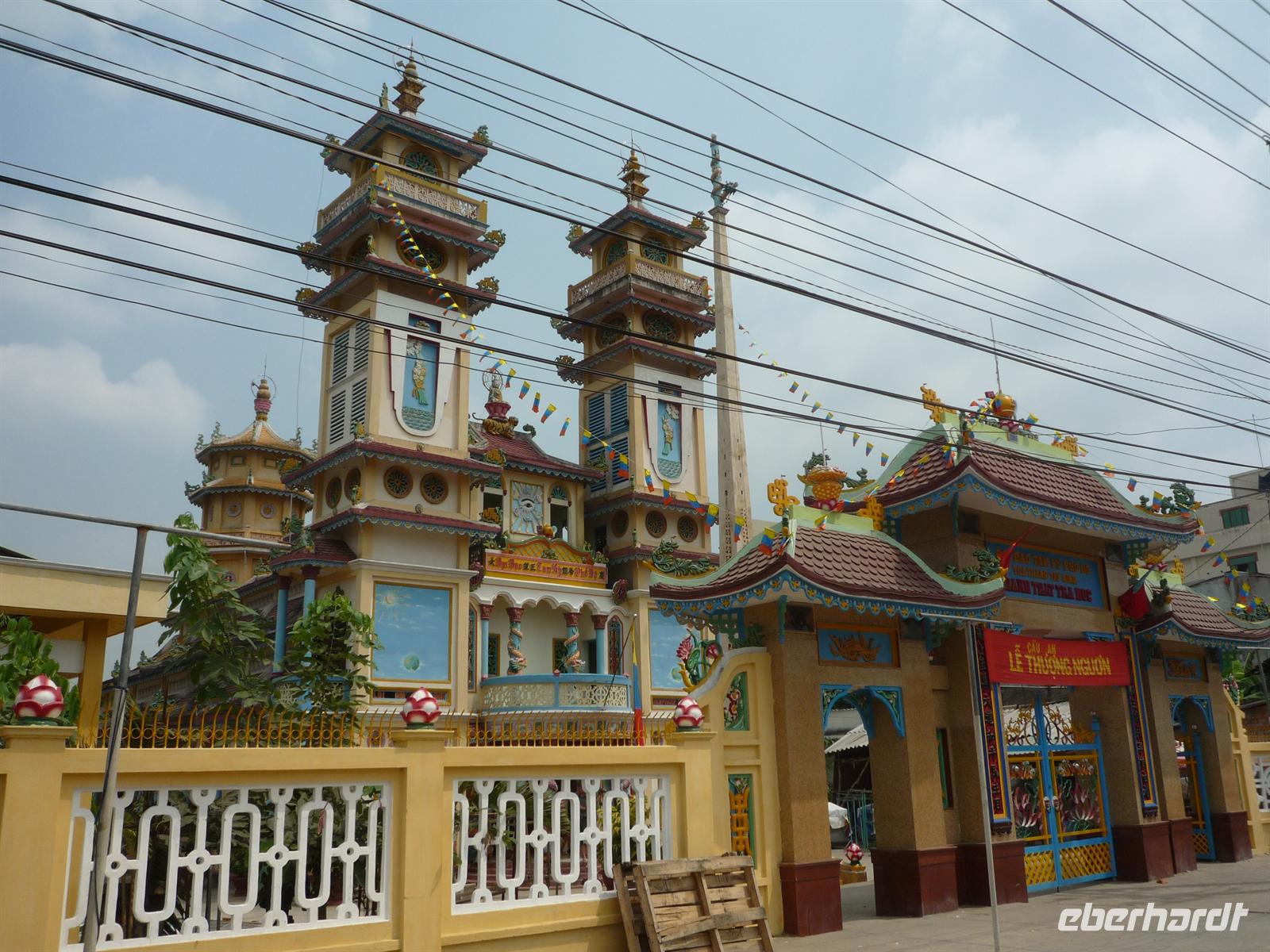 Heute fahren wir in das ca. 60 Kilometer entfernte Cu Chi. Die Fahrt dahin ist vor allem im Stadtgebiet von Saigon durch den Verkehr interessant. Tausende Mopeds sind auf dem Weg in die Stadt. In Cu Chi befindet sich das berühmte Cu Chi Tunnelsystem, welches die Partisanen im Vietnamkrieg zum Kampf gegen die USA-Kämpfer gebaut haben. Die Ausmaße sind gewaltig, es existierten 200 km Tunnel in bis zu drei Ebenen unter der Erde, eine Tiefe von bis zu 10 Metern wurde dabei erreicht. Die Ein- und Ausgänge befanden sich im nahen Saigon River. Unter der Erde hatte gab es Kommandozentralen, Schlafräume, Krankenstation, Küchen, Nähstuben, Werkstätten und vieles mehr. Die Amerikaner haben das Gebiet auch großflächig bombardiert, noch heute sind Bombenkrater zu sehen. Allerdings konnten sie die Tunnelanlage und damit die Aktivitäten der Vietcong, so wurden die Partisanen von den Amerikanern genannt, nicht zerstören. Einige von uns versuchen sich auch in die Lage der vietnamesischen Kämpfer zu versetzen und wagen sich in einen Tunnel, wo man annähernd das Gefühl bekommt, wie eng die Tunnel waren.