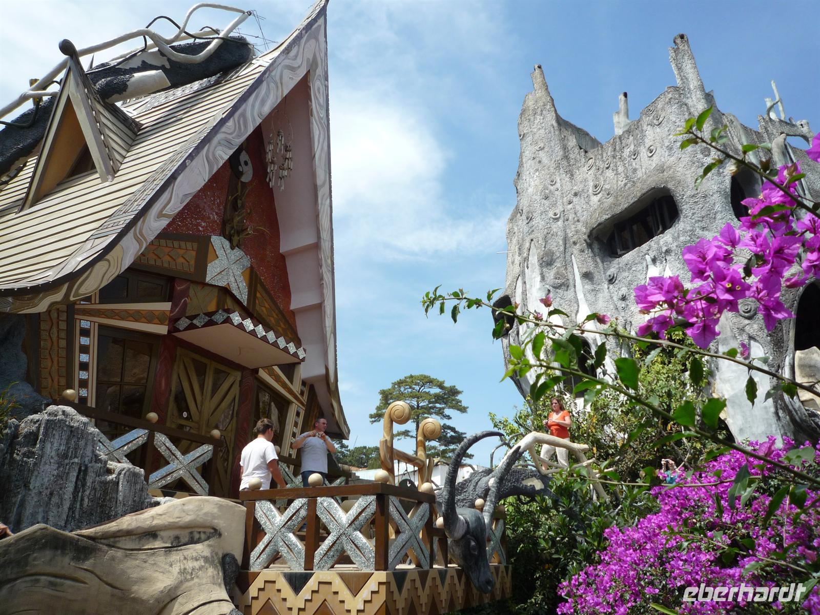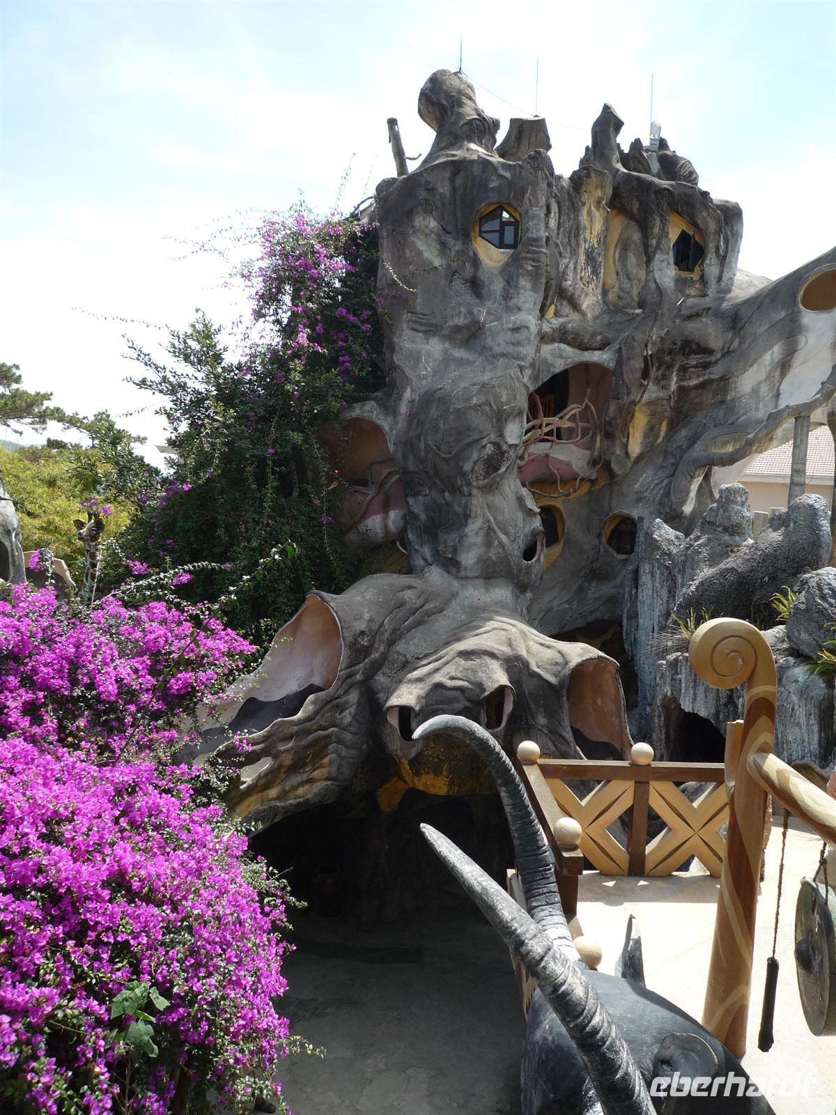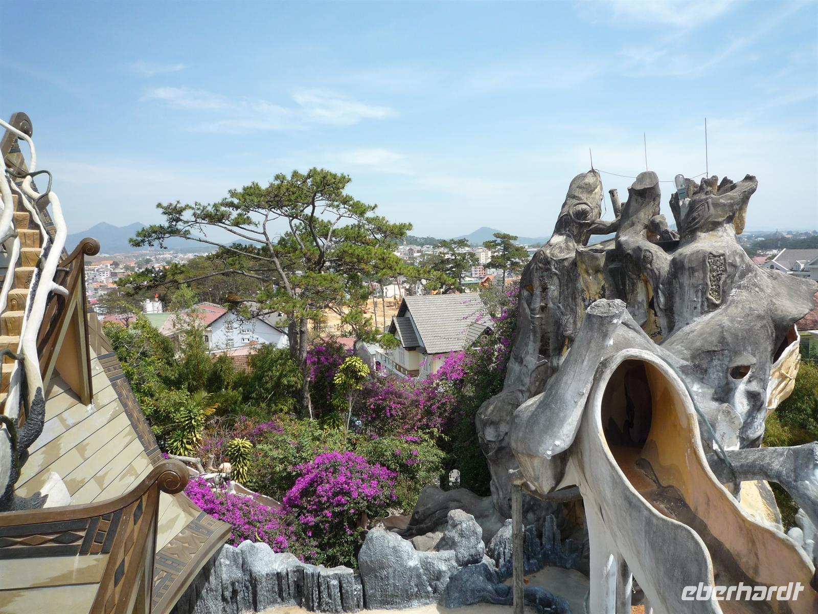 Unterwegs stoppen wir am Crazy House, einem ungewöhnlichem Hotel, dass von der Tochter eines reichen Vietnamesen gebaut wurde und was wir erkunden dürfen. Das Haus ist in Form eines Baumes gebaut und jedes Zimmer anders „verrückt“ gestaltet. Wir klettern entlang der vielen Wege und genießen auch die Aussicht vom oberen Punkt - ein interessanter Stopp.