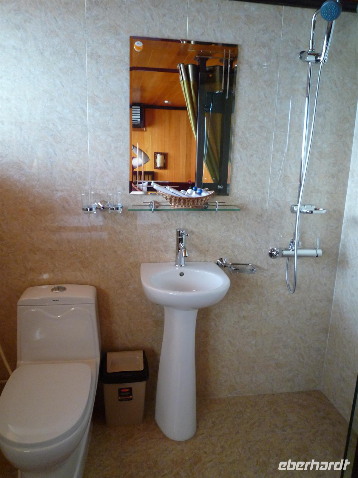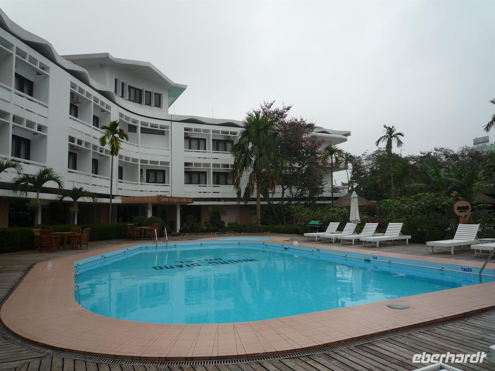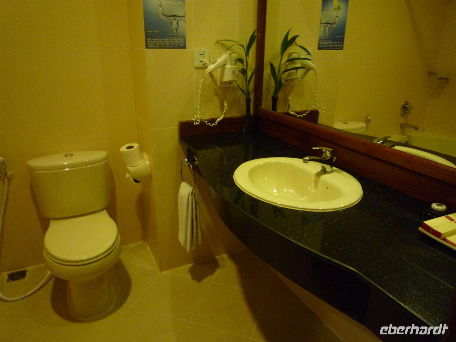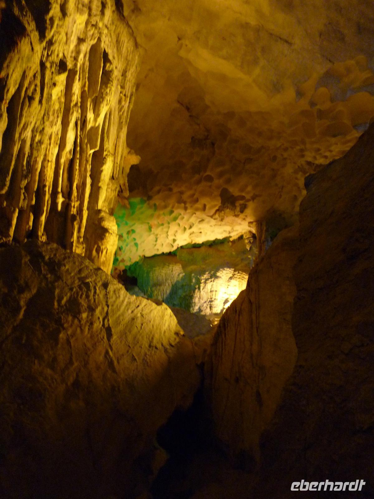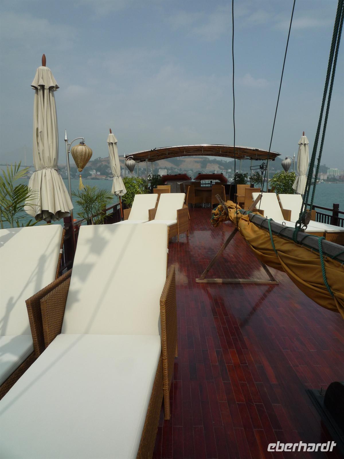 Die Bucht gehört zum UNESCO-Weltnaturerbe. Wir betreten unserer komfortablen Dschunke, die mit allem denkbaren Komfort ausgestattet ist und gleiten nun durch die anmutende Karstfelsen und kleinen schwimmenden Fischerdörfer. Nach jedem Berg eröffnete sich uns ein neuer, atemberaubender Blick. Nach einem stärkenden und sehr guten Mittagessen, natürlich gab es viel Fisch und Meeresfrüchte, legen wir auch schon das erste Mal an für eine Wanderung durch eine riesige Tropfsteinhöhle. Die Höhle ist riesengroß und wir staunen, denn das hätten wir hier nicht erwartet. Anschließend nutzen wir die freie Zeit am Nachmittag, um an einer Insel anzulegen und dort zu einem Aussichtspunkt zu wandern. Von hier aus genossen wir den wunderschönen Sonnenuntergang über der Ha-Long-Bucht. Anschließend nutzten einige Gäste noch die Möglichkeit, zu baden und zum Aufstieg auf einen Aussichtsberg, von dem man einen herrlichen Überblick hat. Am Abend dinieren wir auf unserer Dschunke und das Essen ist wieder vom Feinsten. Es gibt natürlich wieder viel Fisch und Meeresfrüchte, für viele etwas ganz besonderes. Heute feiern wir auch einen Geburtstag und da gibt es noch ein Stück Geburtstagstorte und einen Reisschnaps zum Anstoßen. Ein schöner Abend auf einem schönen Schiff geht zu Ende! Wir ankern in einer Bucht mit vielen weiteren Schiffen, leider ist es etwas bedeckt, so dass wir keine Sterne beobachten können. Unsere Kabinen sind komfortabel ausgestattet und verfügen über ein eigenes Badezimmer.