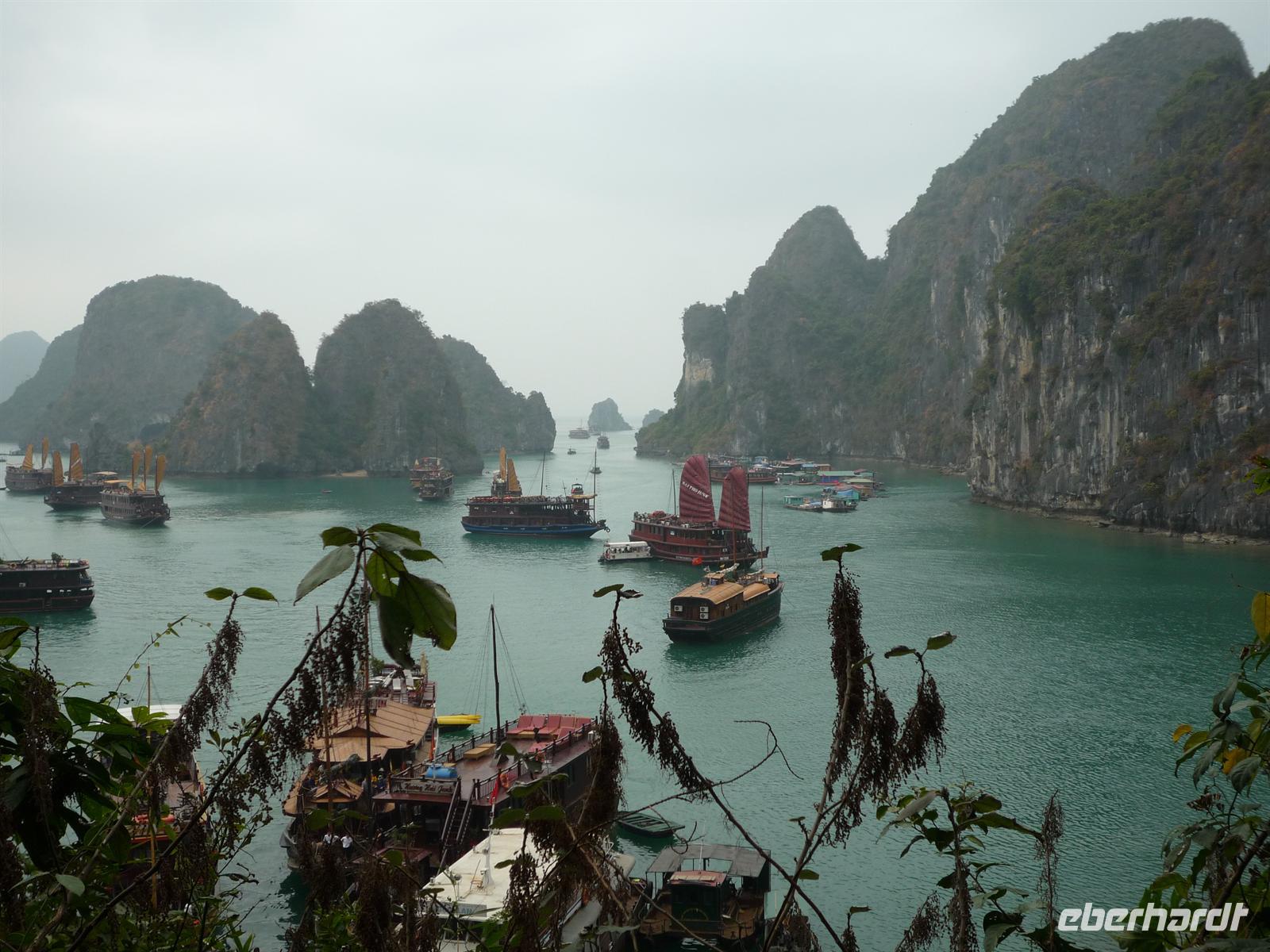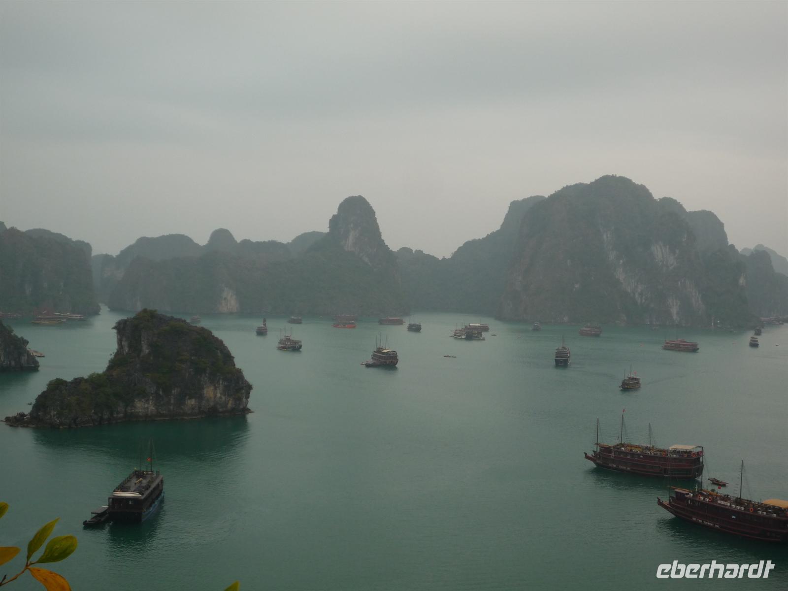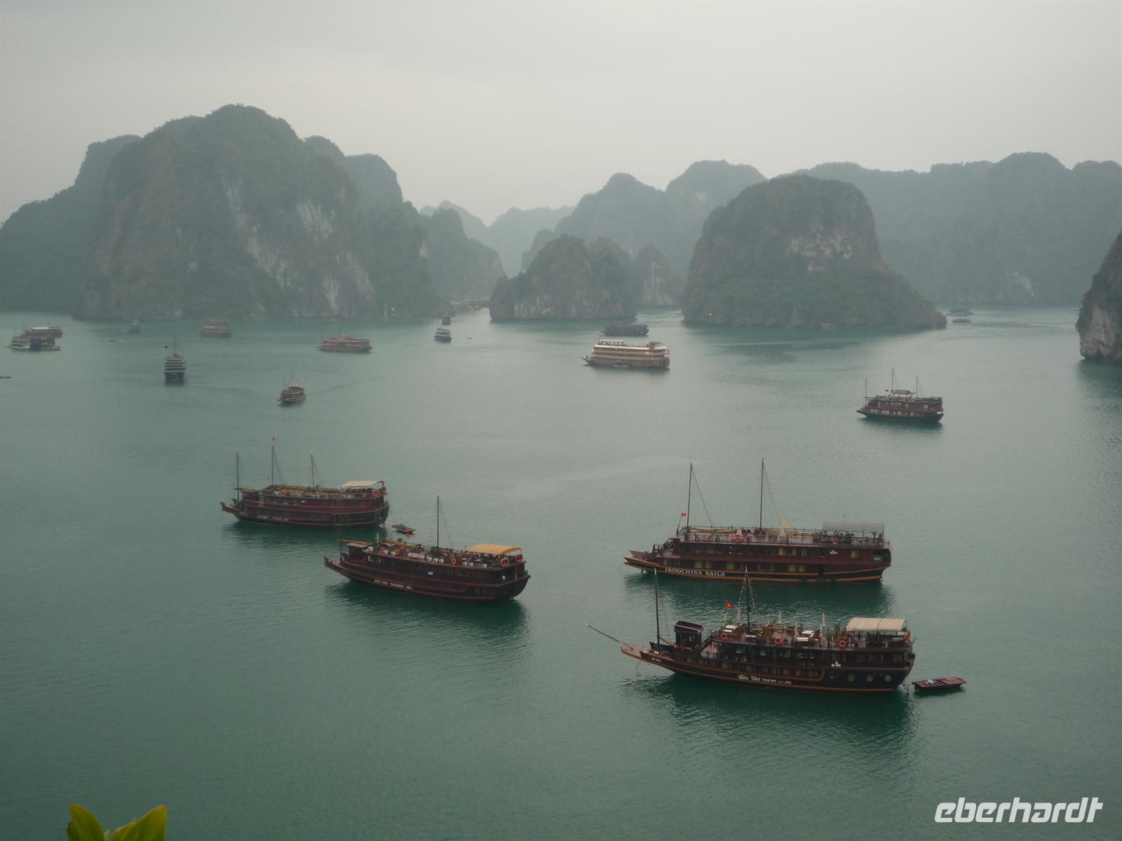 Heute fahren wir ca. vier Stunden in die Ha-Long-Bucht. Unterwegs beeindruckt uns immer wieder der Straßenverkehr, denn hier, so hat man das Gefühl, fährt jeder wie er möchte. Immer wieder ergeben sich tolle Fotomotive. Angekommen in Ha Long sehen wir die schönste und traumhafteste Bucht, die durch ihre fast 2000 Karstfelsen gekennzeichnet ist.