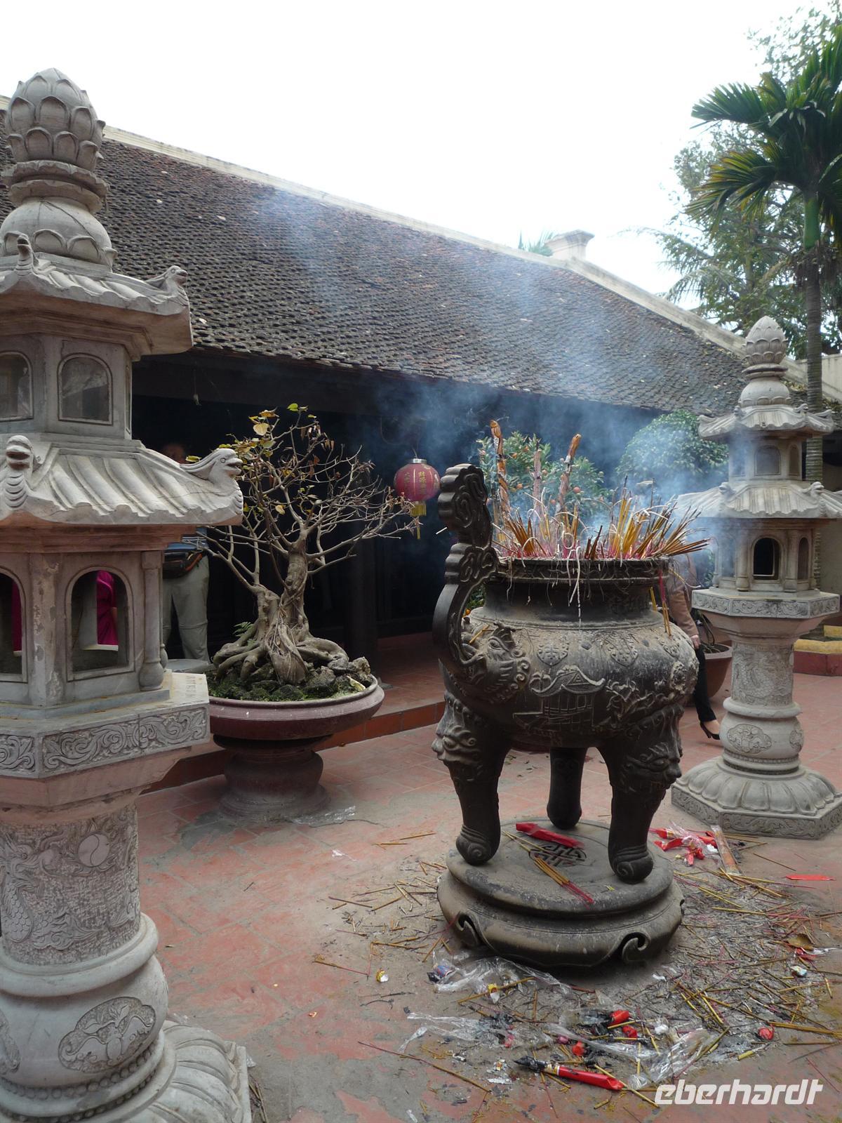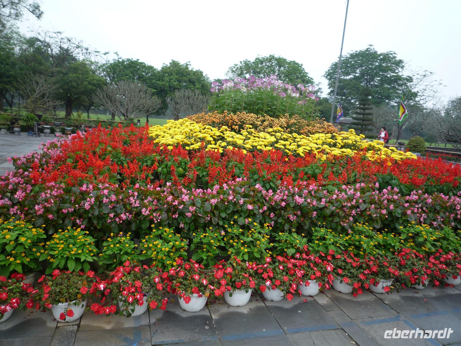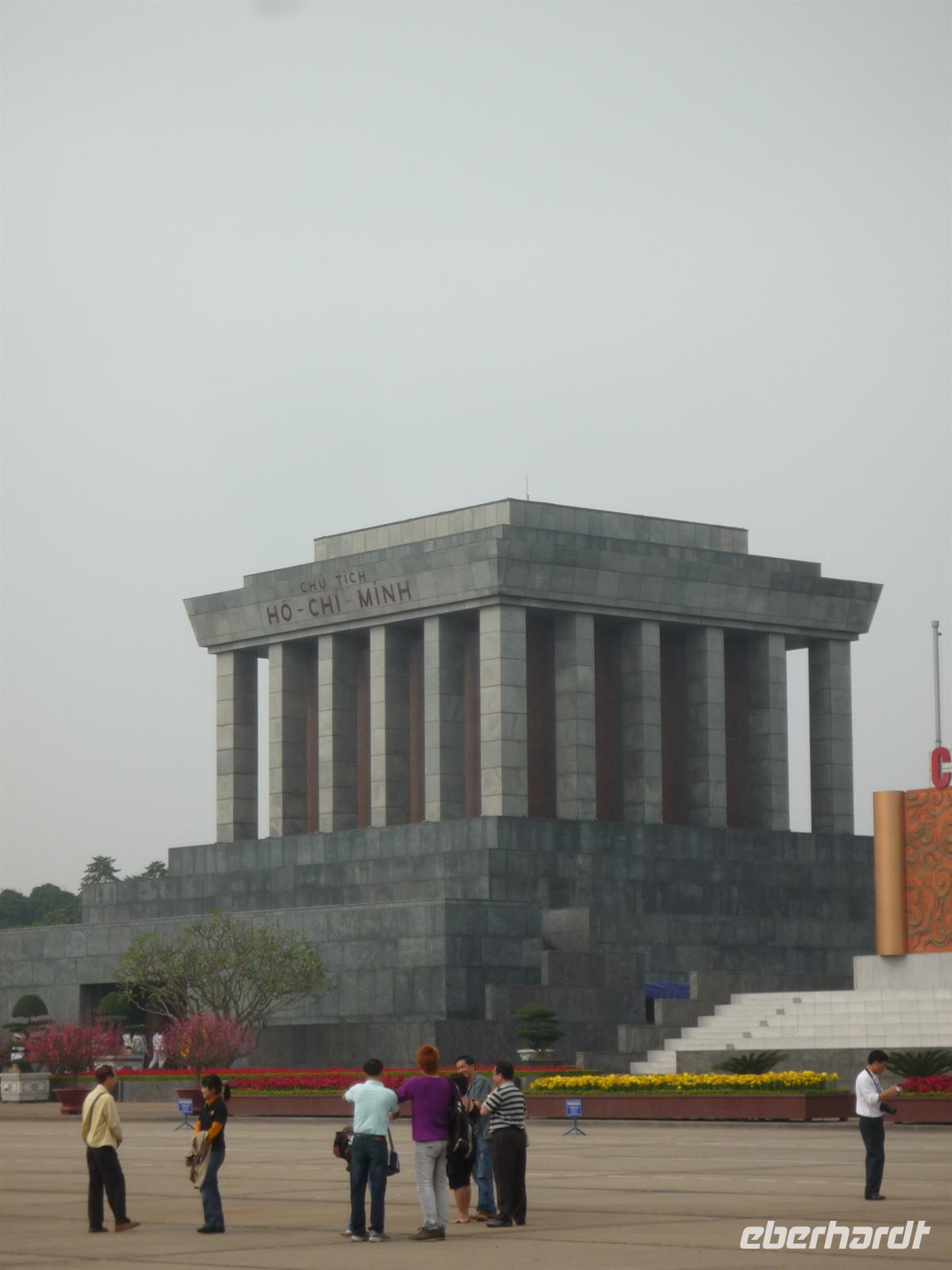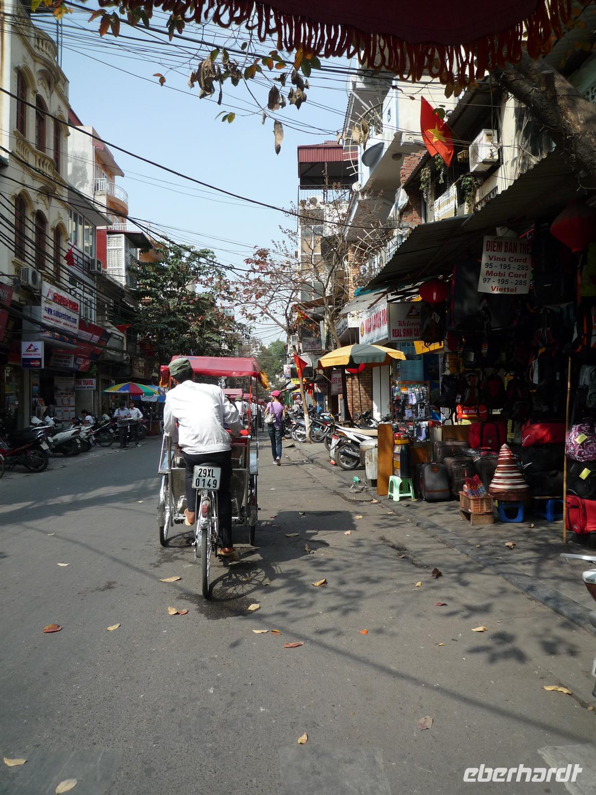 Heute stand die Erkundung der Stadt Hanoi auf dem Programm. Zuerst fuhren wir zum Mausoleum von Ho-Chi-Minh. Nach Gepäckkontrollen, durften wir im Gänsemarsch an ihm vorbei gehen und uns ihn anschauen, dabei war natürlich sprechen, fotografieren, essen und trinken verboten. Selbst die Arme mussten in strenger Weise nach unten hängen. Anschließend spazierten wir zum Präsidentenpalast und Ho Chi Minhs-Wohnhaus, was doch erstaunlich bescheiden ausfällt. Weiter ging es zur Einsäulen-Pagode, wo wir für ein langes Leben beten könnten, danach ging es zum Literaturtempel, der ältesten Universität Südostasiens. Nach dem Besuch der Tran Quoc Pagode, erwartete uns nun ein besonderes Erlebnis. Jeder bestieg eine Rikscha und dann ging es durch die Gassen der Altstadt, die auch die „Stadt der 36 Gassen“ genannt wird. Die Rikscha stammt aus Japan, wenn auch ihr Erfinder ein Europäer war. Der Name kommt aus dem japanischen und setzt sich wie folgt zusammen: Jinrikisha, jin = Mensch, riki = Kraft, sha = Wagen. Die Fahrt durch die belebten Straßen ist ein Abenteuer und manchmal möchte man die Luft anhalten, wenn von links und rechts die Mopeds heran sausen. Wir staunten wir nicht schlecht, wie viele Mofas und Mopeds auf Hanois Straßen verkehren. Eine nicht enden wollende Masse dieses Fortbewegungsmittels rollte an uns vorbei- Mitten durch den Verkehr fahren die Rikschas und man bekommt einen herrlichen Einblick. Besonders für die Fotografen unter uns, ist es natürlich ideal so, denn man kann Aufnahmen vom Leben in den Straßen machen. Für alle war das ein besonderes Erlebnis. Anschließend essen wir die typische Hanoi-Nudelsuppe „Pho“, die allen gut schmeckt.